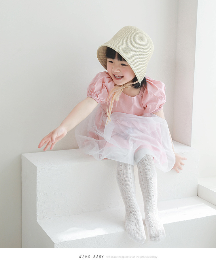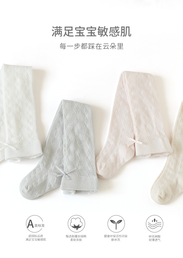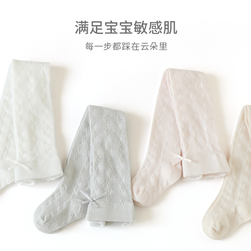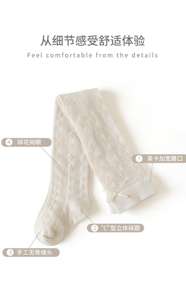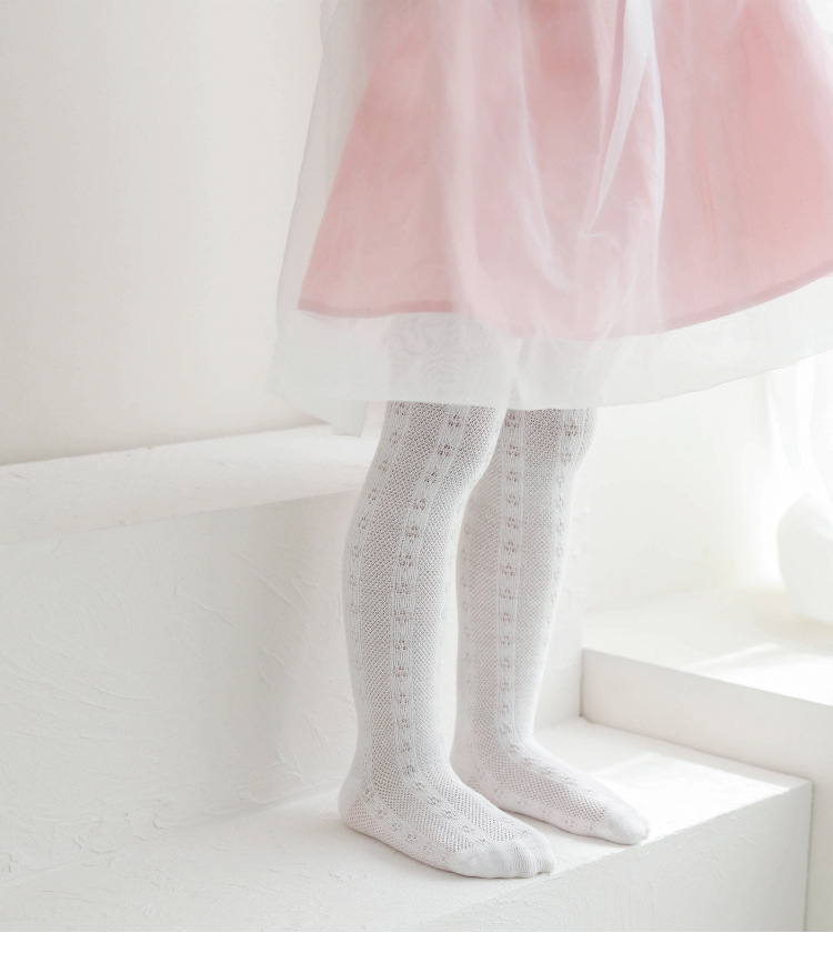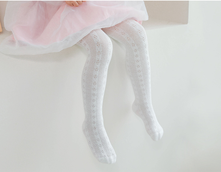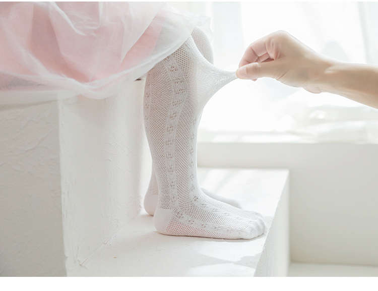 儿童连裤袜夏季薄款网眼女宝宝打底裤公主蝴蝶结女童白色舞蹈裤袜