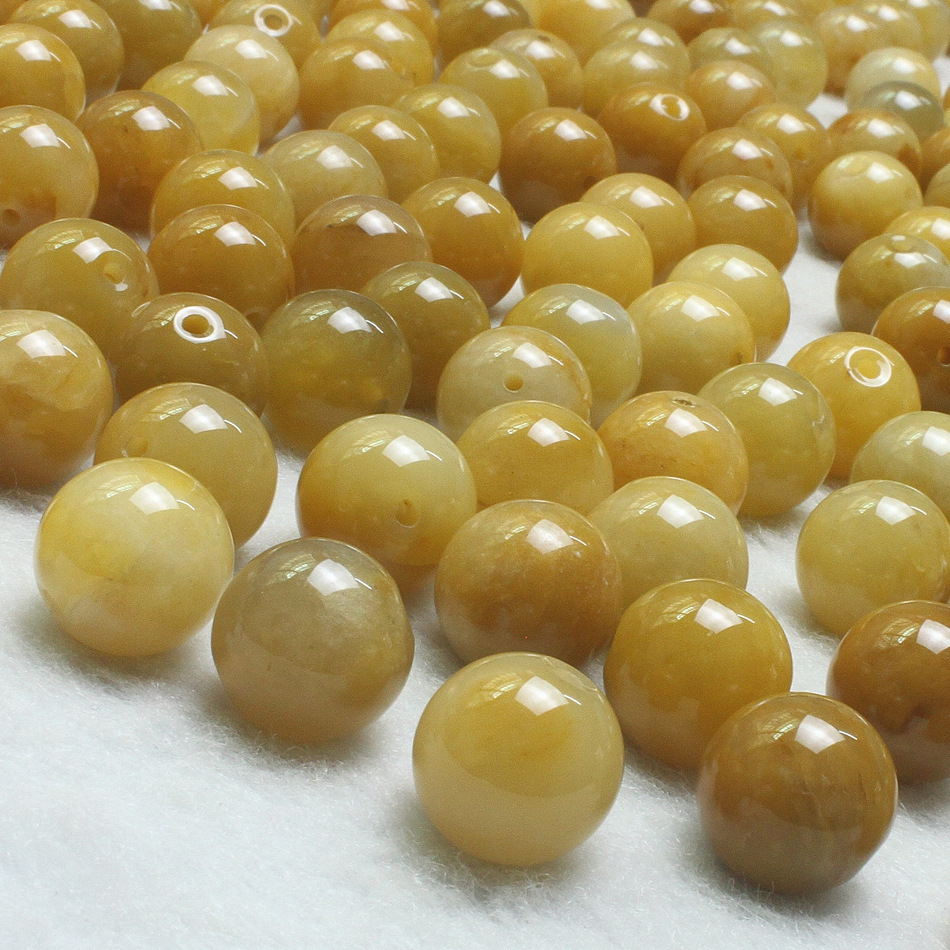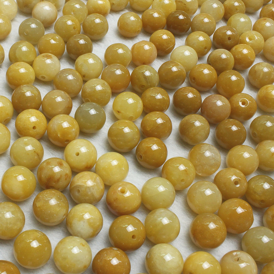 产地直销8mm天然老黄龙玉散珠 玉石DIY饰品配件 黄玉圆珠批发 0.23