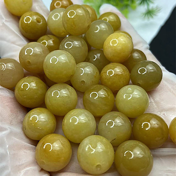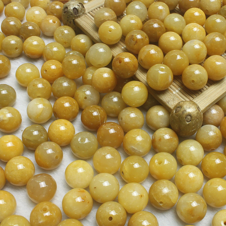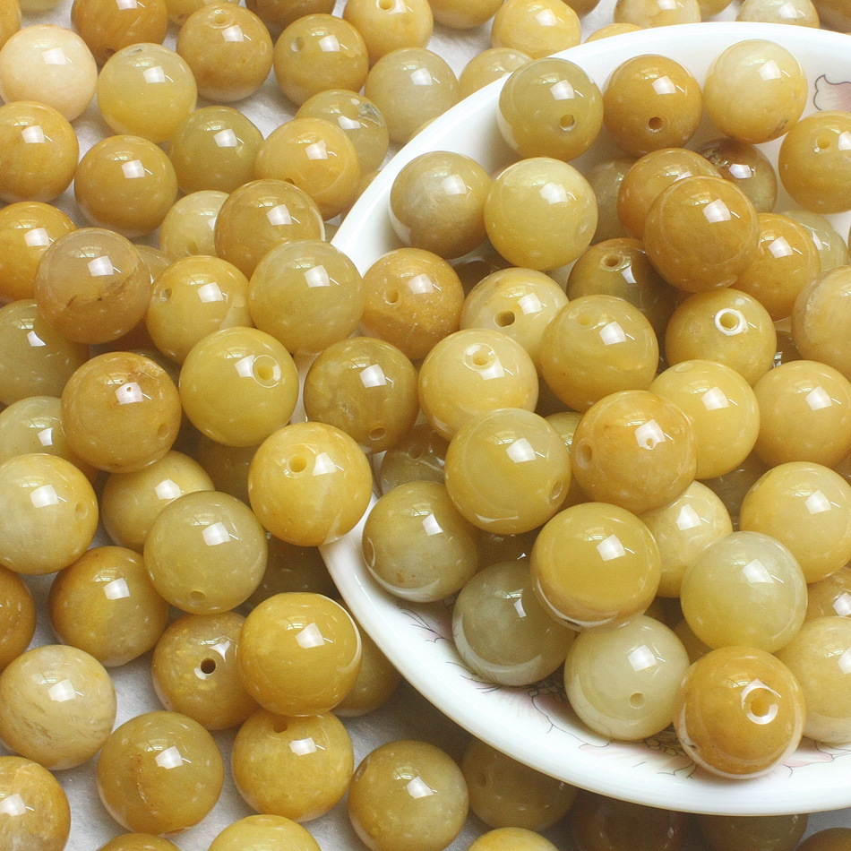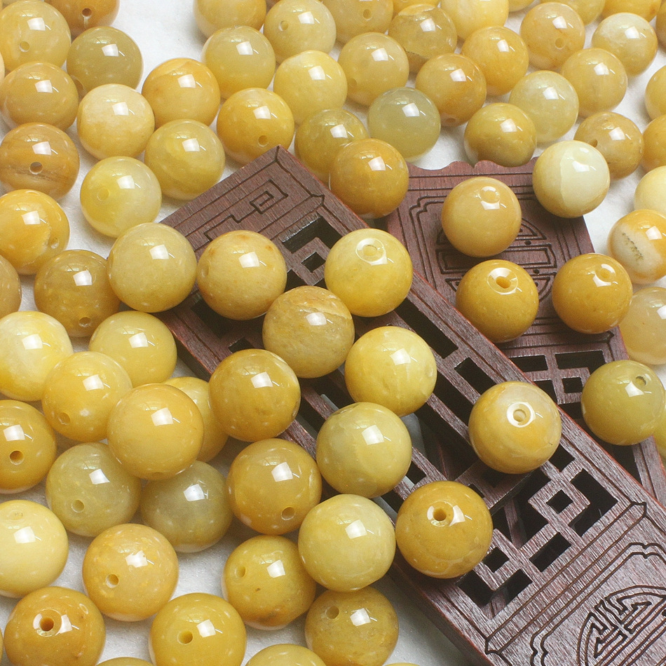 产地直销10mm天然老黄龙玉散珠 玉石DIY饰品配件 黄玉圆珠批发 0.45