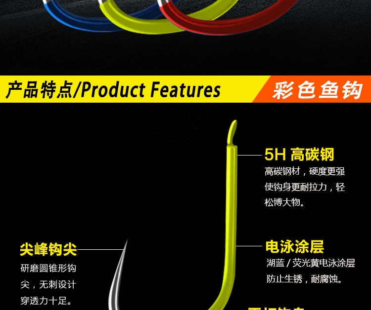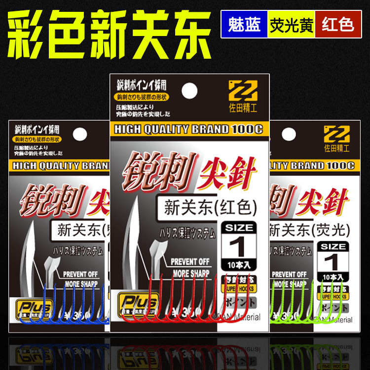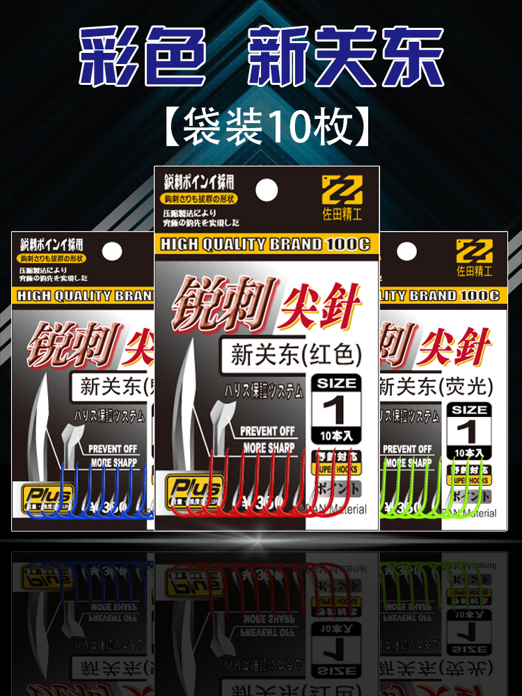 袋装彩色新关东 荧光黄魅蓝红色日本无倒刺垂钓鱼钩渔具批发
