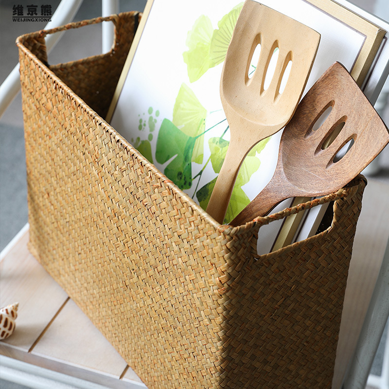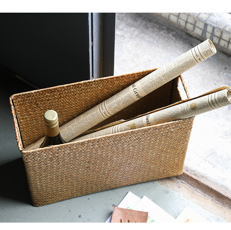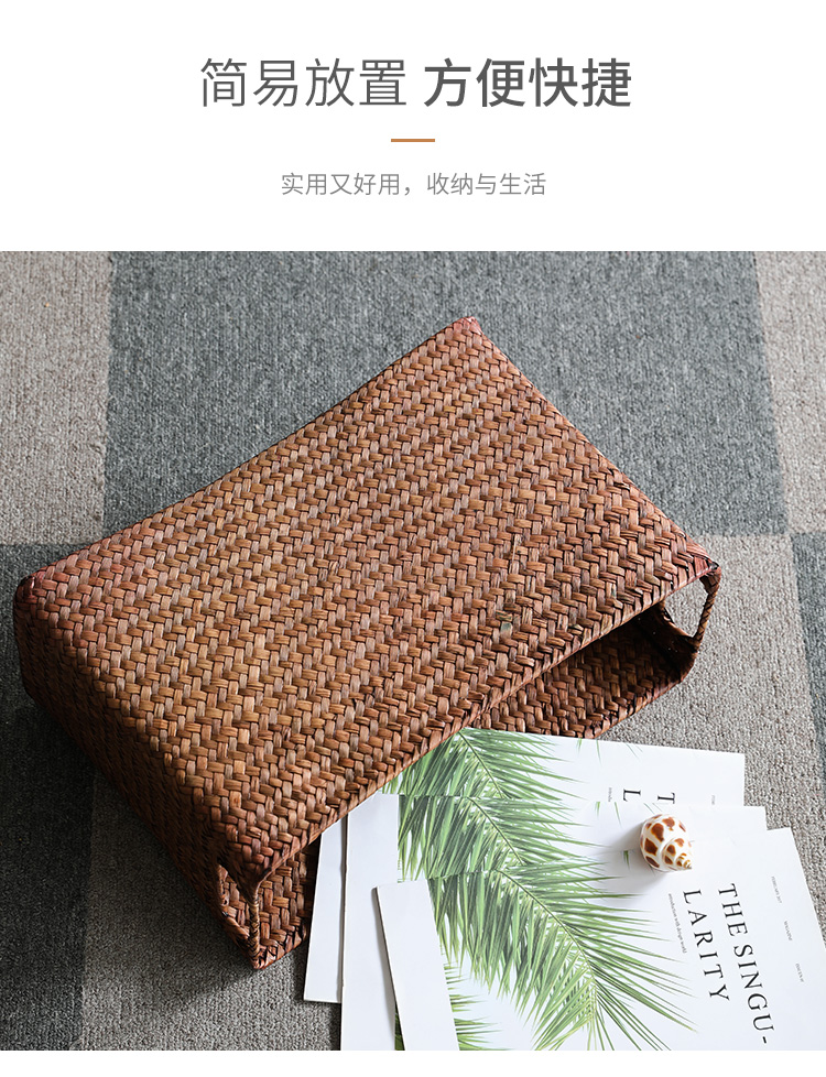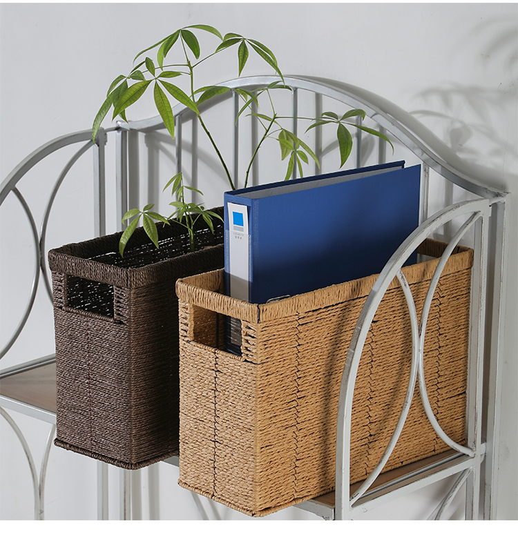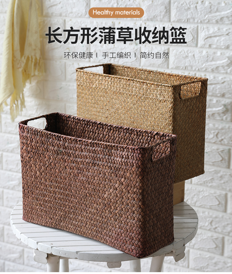 日式草编杂志筐 收纳篮 编织筐 长方形收纳筐 整理篮