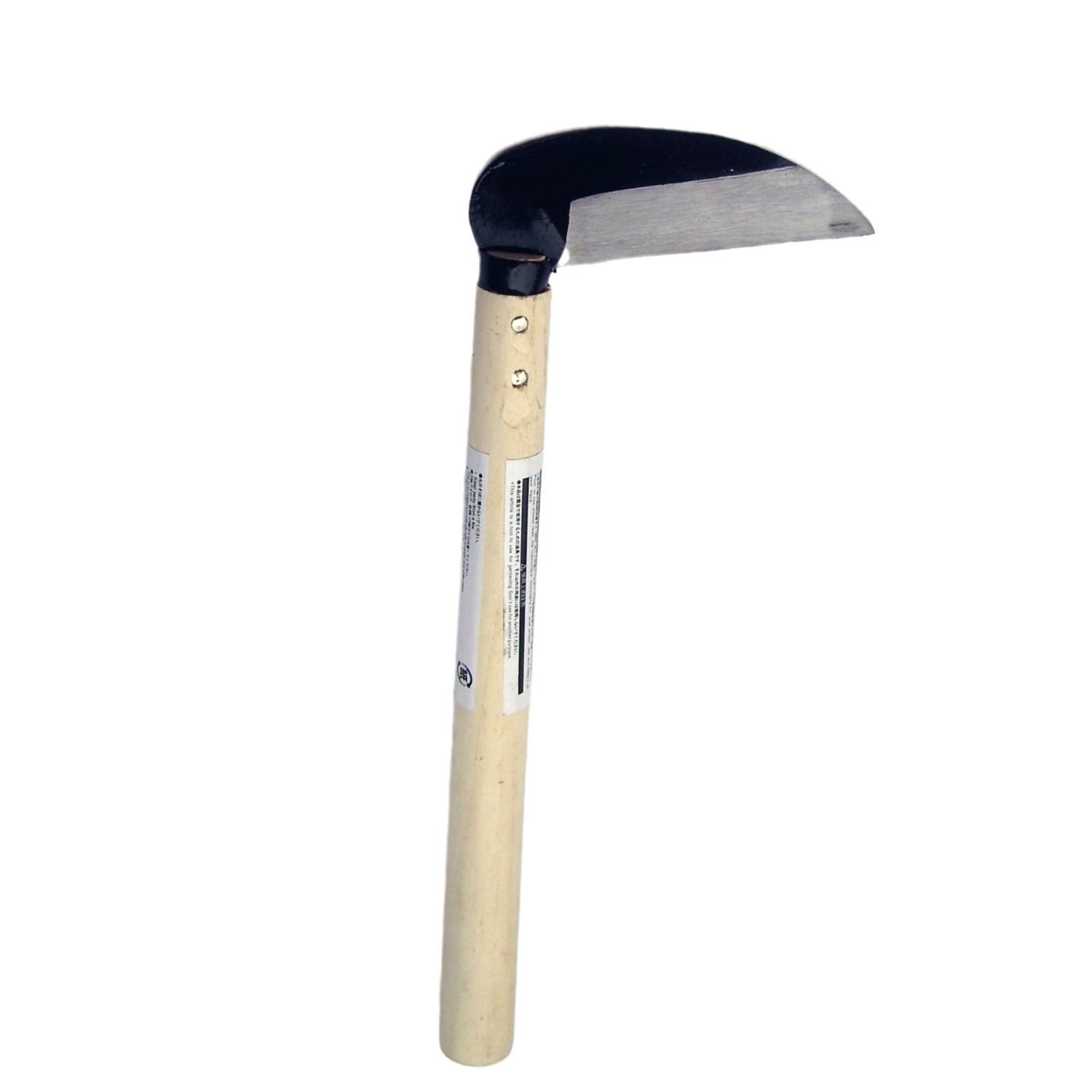 本厂生产的木直柄小镰刀系列镰刀,刀头采用优良65号锰钢经冲压,高频淬火,热油回火,精磨等几道工序精制而成,刀口硬度可达HRC56-58度,刀口锋利无比,能刮掉汗毛,刀柄采用优良硬木经选材、车削、打磨、刷漆等几道工序制作,舒适耐用、美观大方!