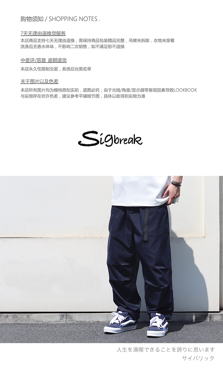 Sigbreak日系機能Solotex抗皺杜邦三防廓形工裝寬鬆腰帶休閒褲男