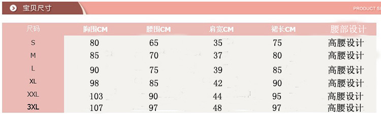 XXXL:胸围107CM内,腰围95CM内,肩宽47CM内,全长95CM