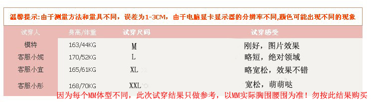 XXL:胸围103CM内,腰围90CM内,肩宽45CM内,全长95CM