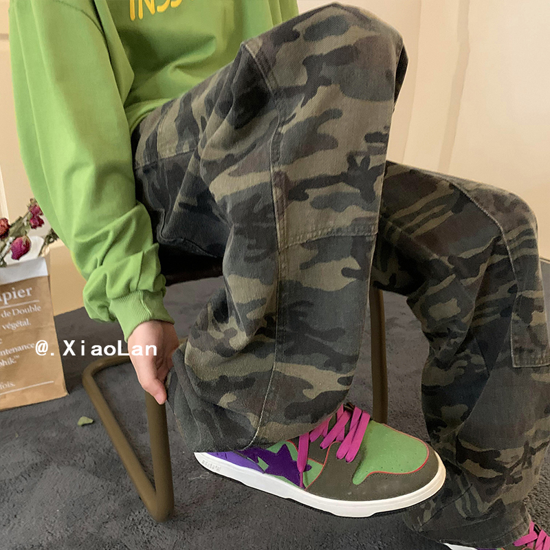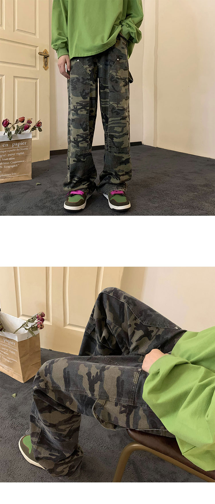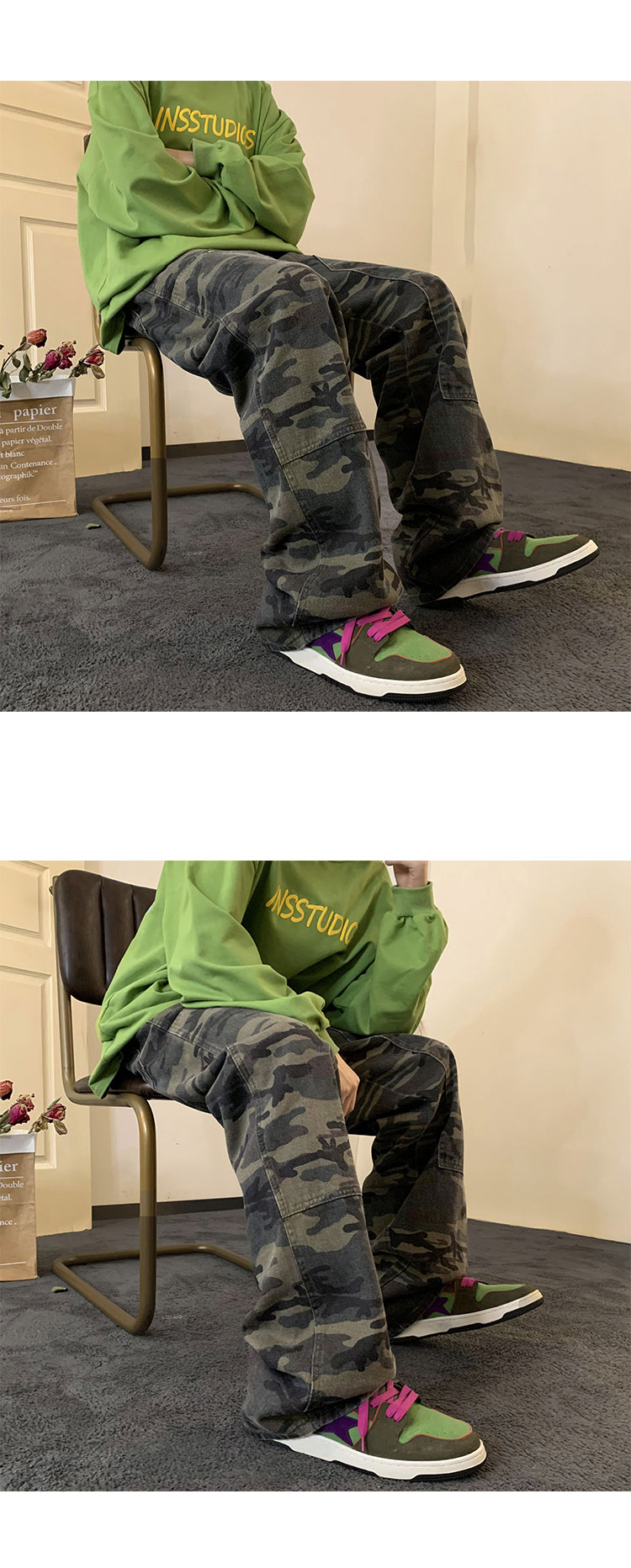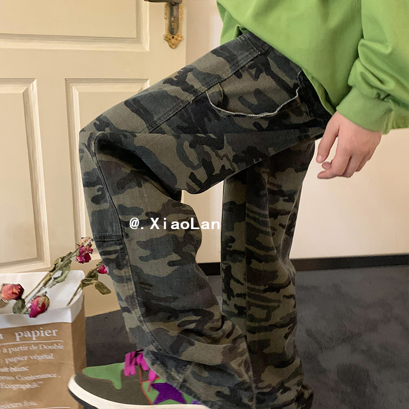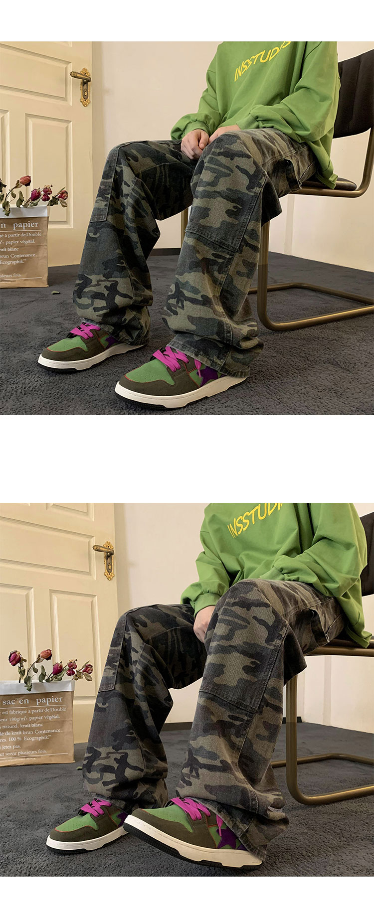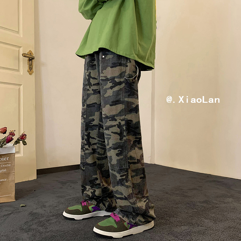 工裝褲子男夏季新款美式復古直筒寬鬆休閒長褲高街vibe闊腿迷彩褲
