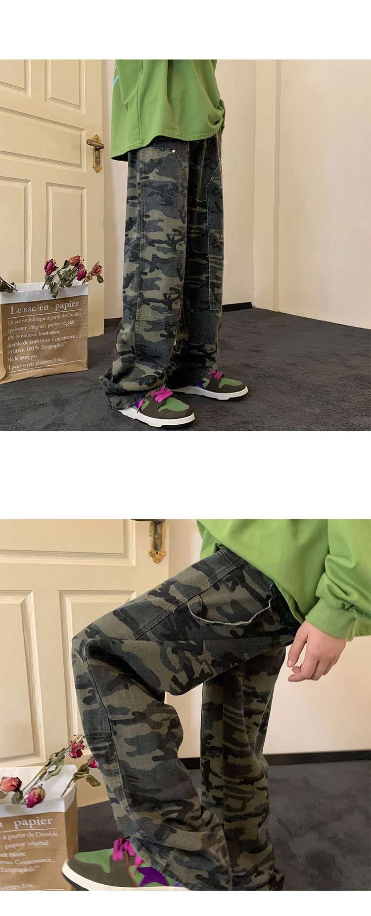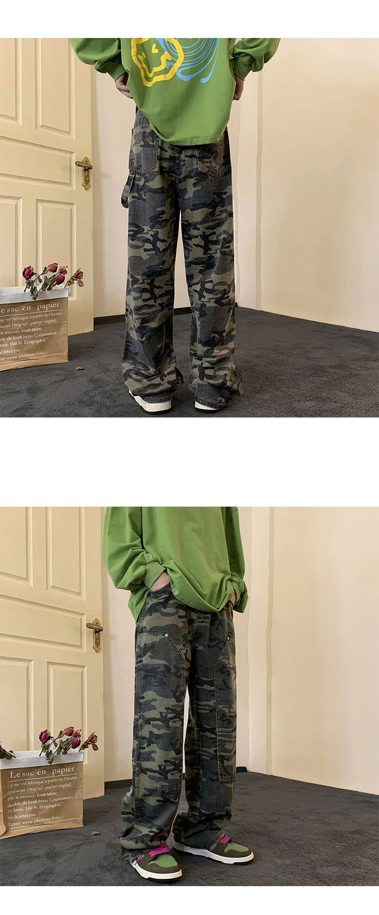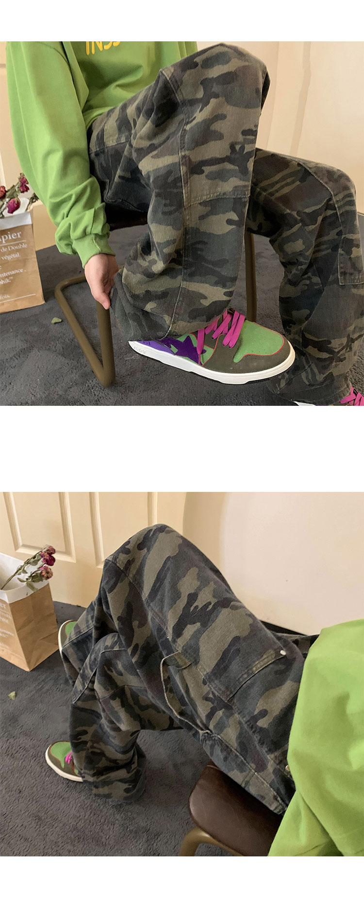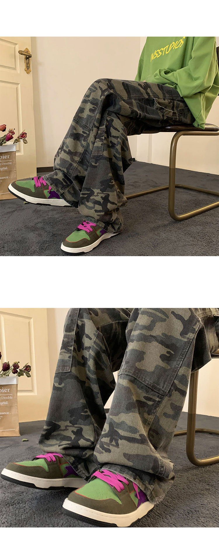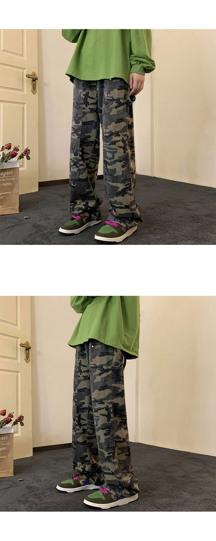 工裝褲子男夏季新款美式復古直筒寬鬆休閒長褲高街vibe闊腿迷彩褲