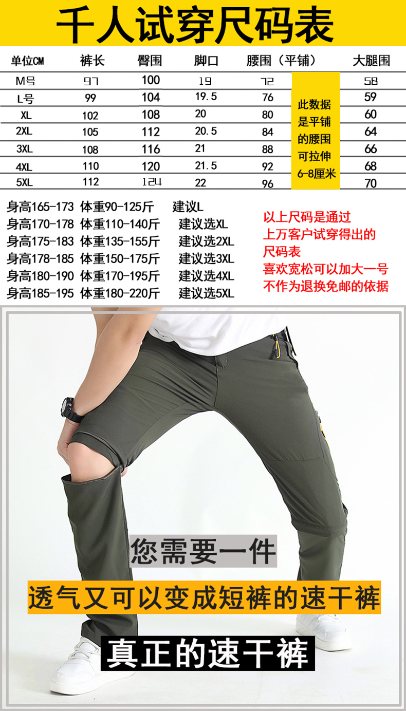 夏季速乾褲男可拆卸兩截休閒長褲多袋兩穿大尺碼彈力快乾薄款衝鋒褲
