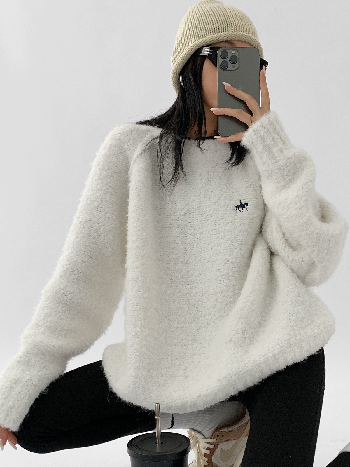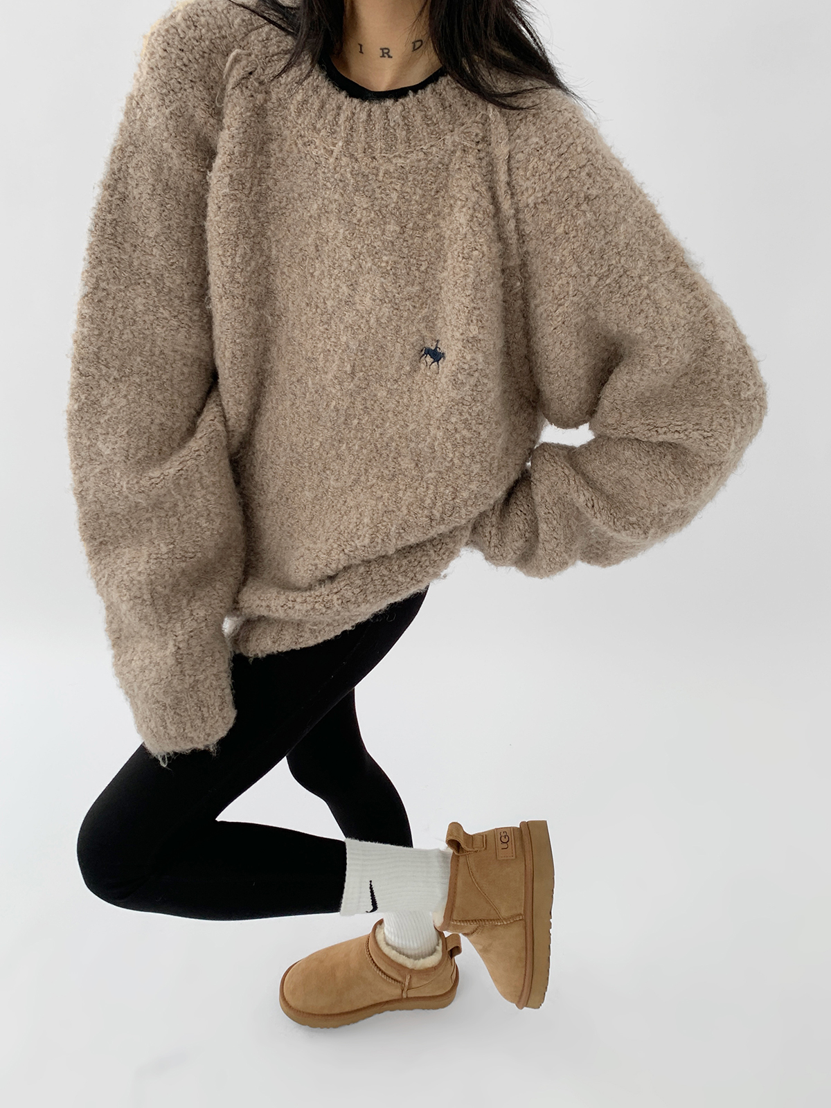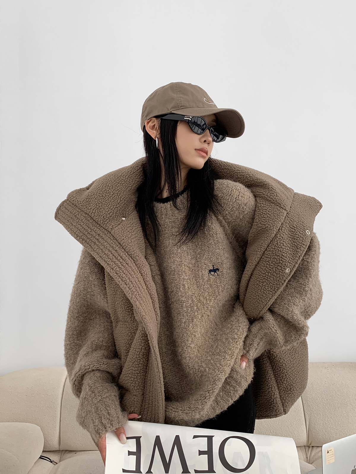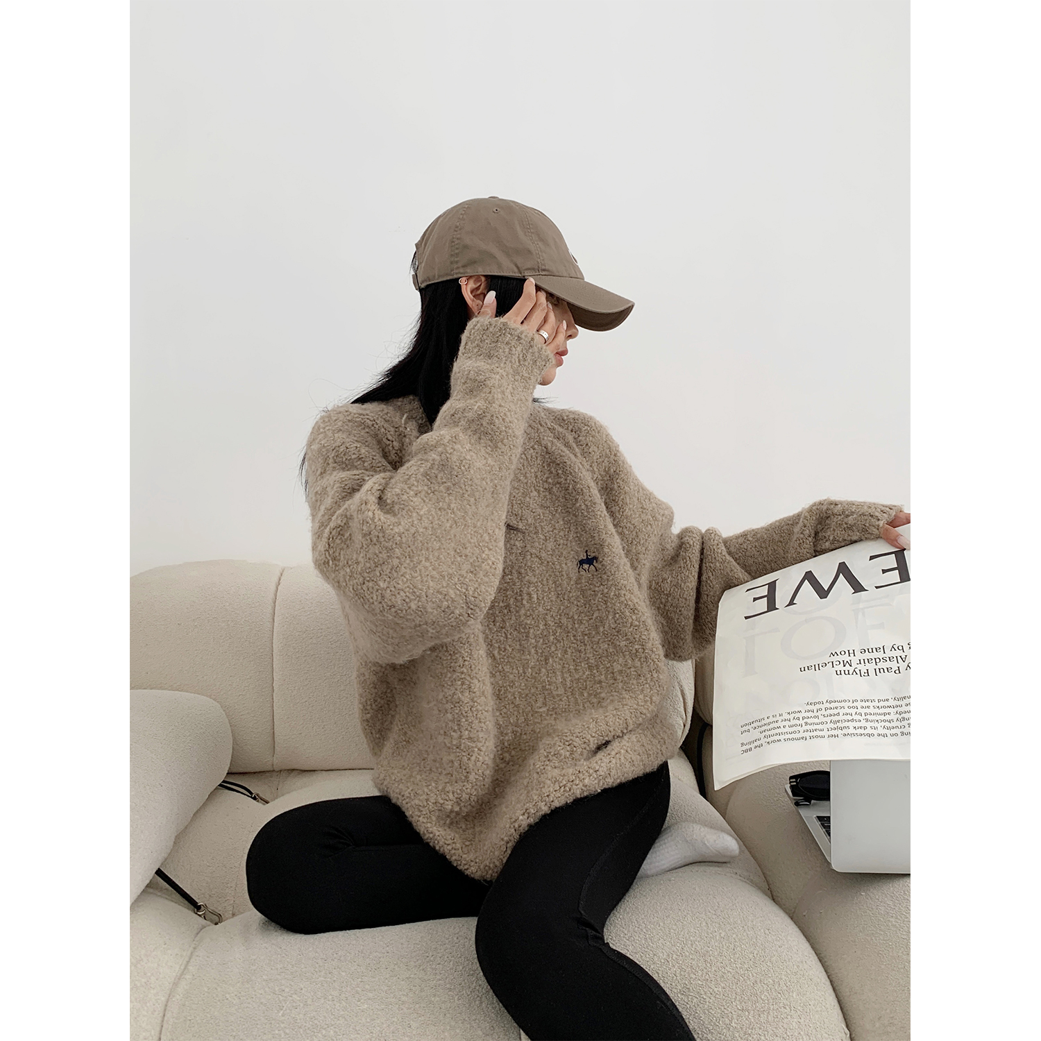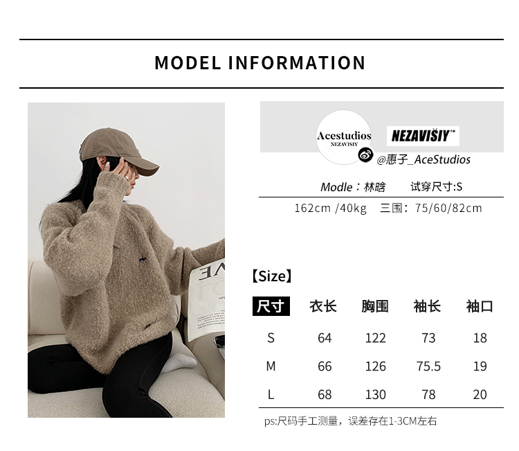 Acestudios oversize圈圈毛刺繡毛衣女2022秋冬新款加厚圓領上衣