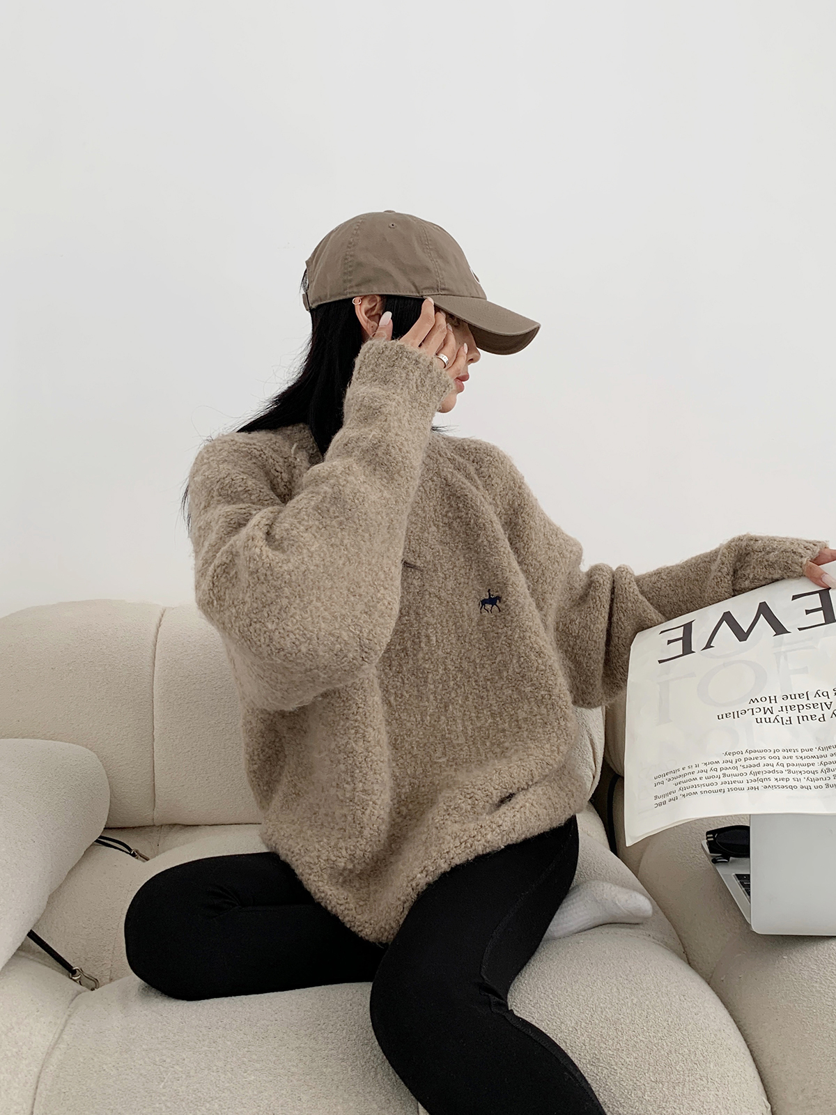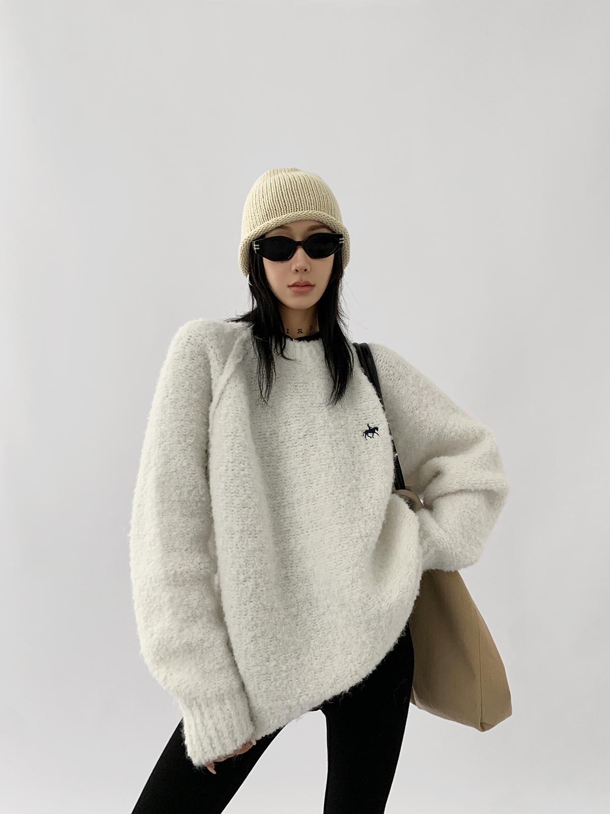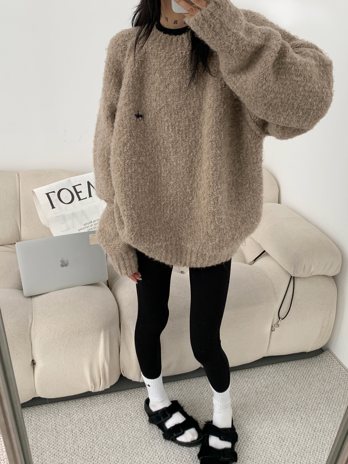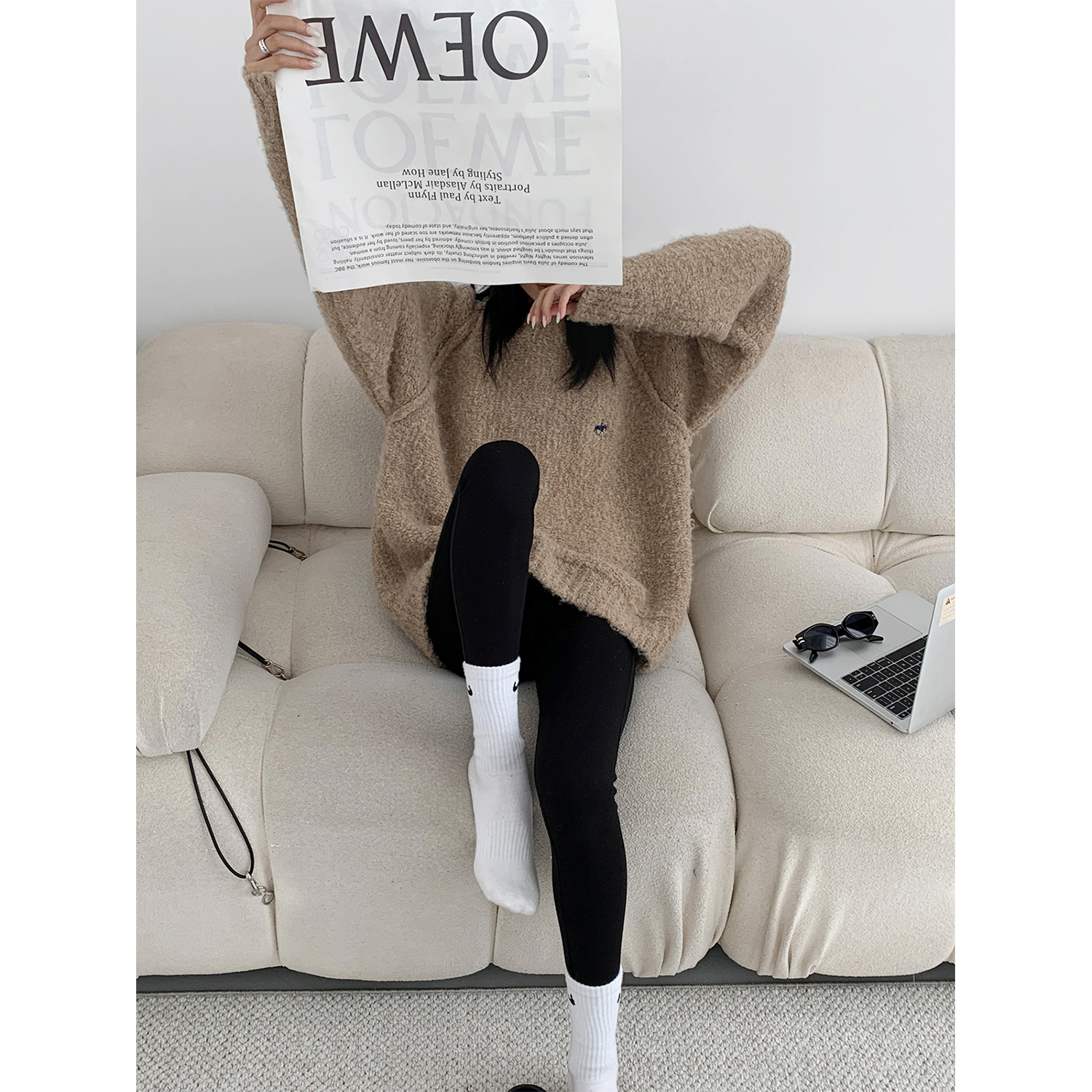 Acestudios oversize圈圈毛刺繡毛衣女2022秋冬新款加厚圓領上衣