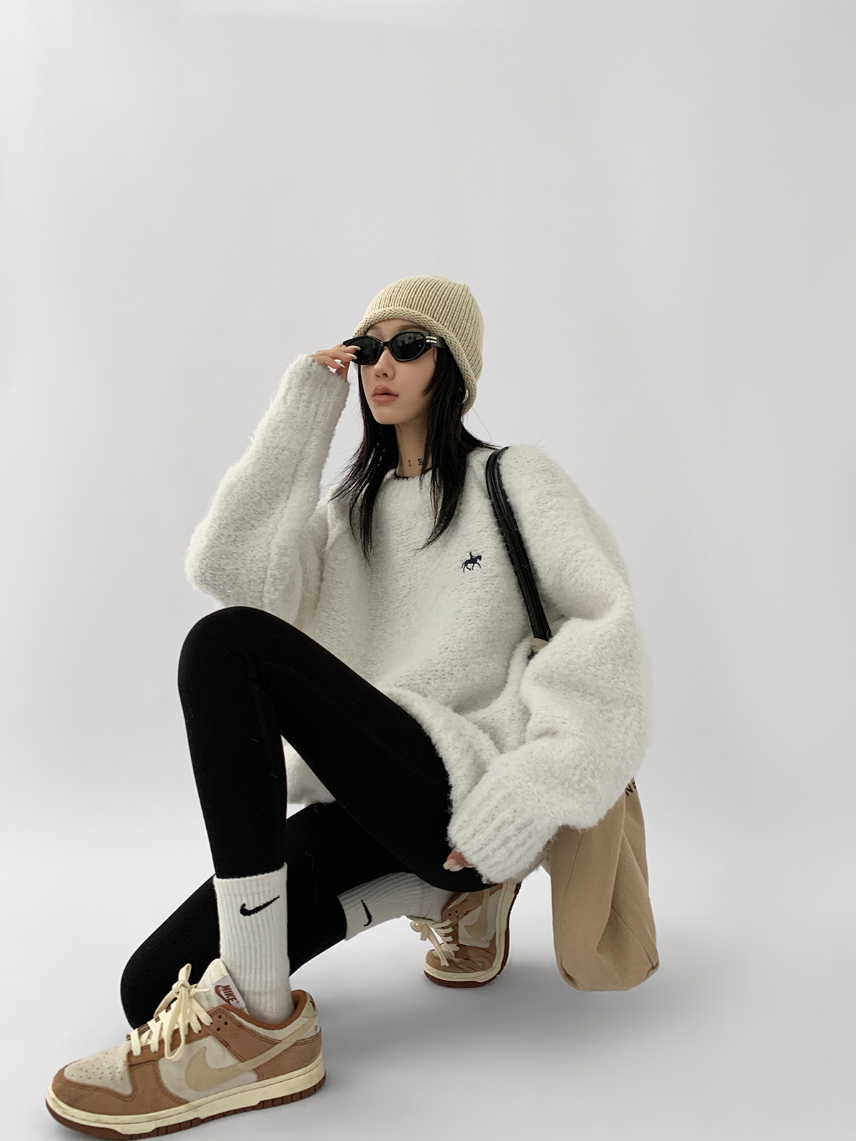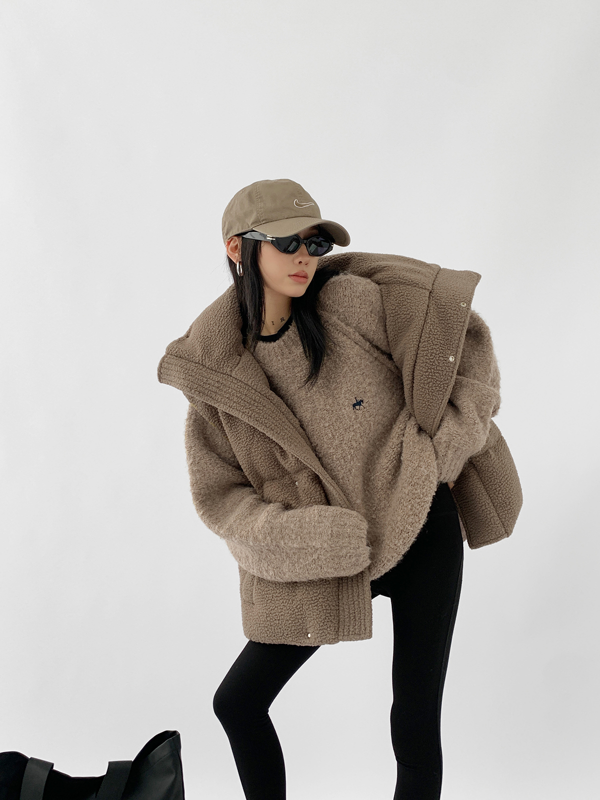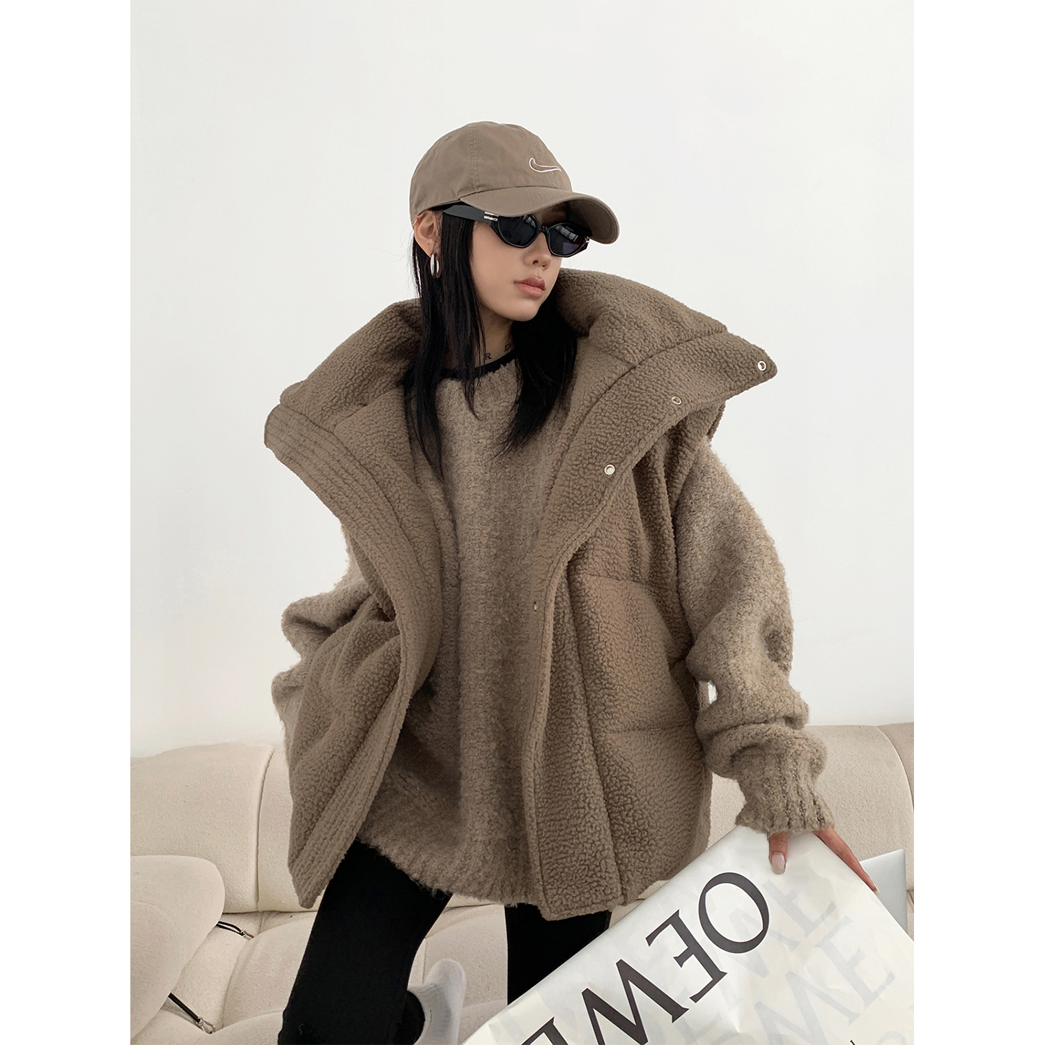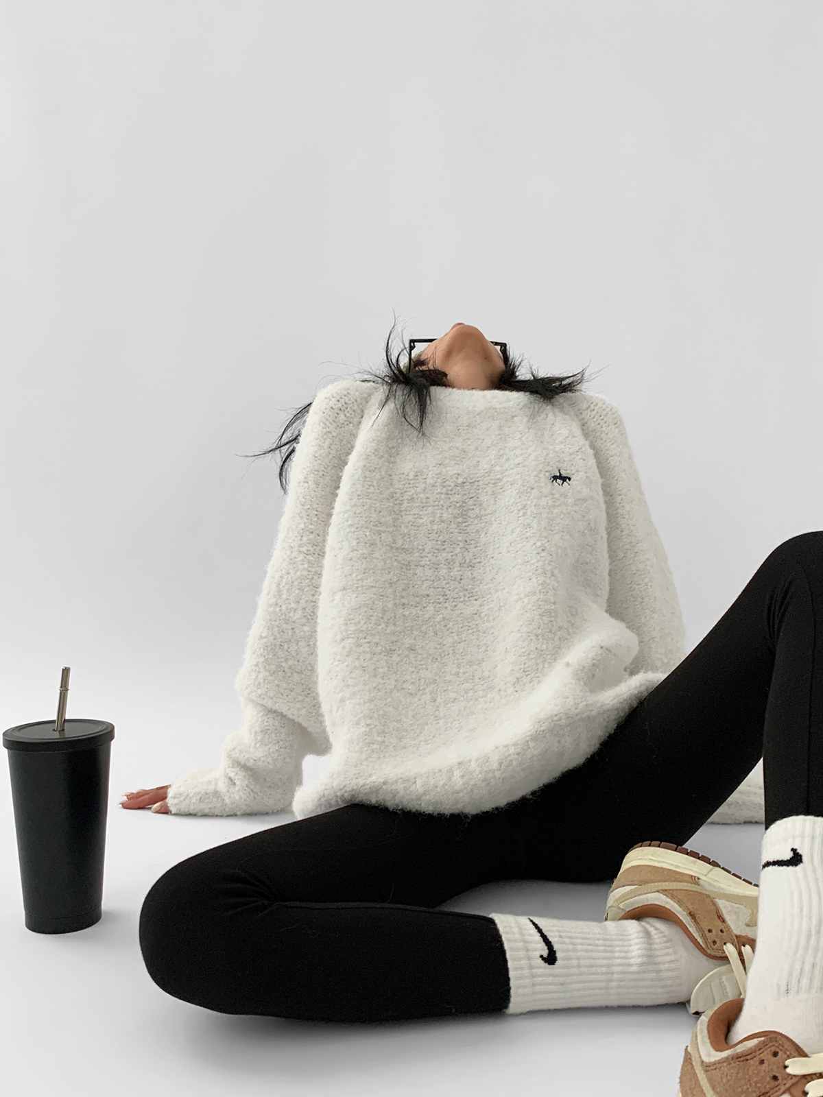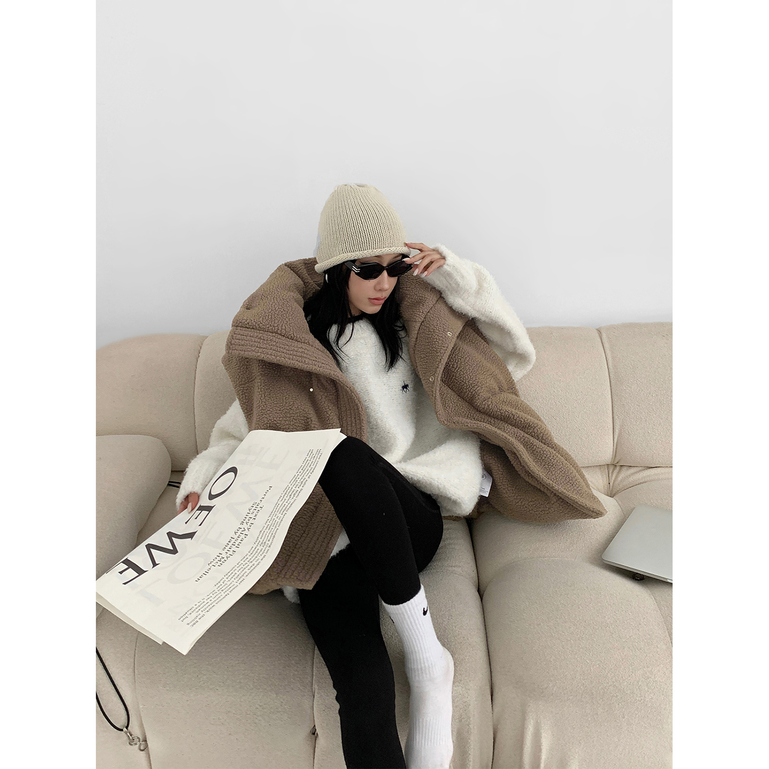 Acestudios oversize圈圈毛刺繡毛衣女2022秋冬新款加厚圓領上衣
