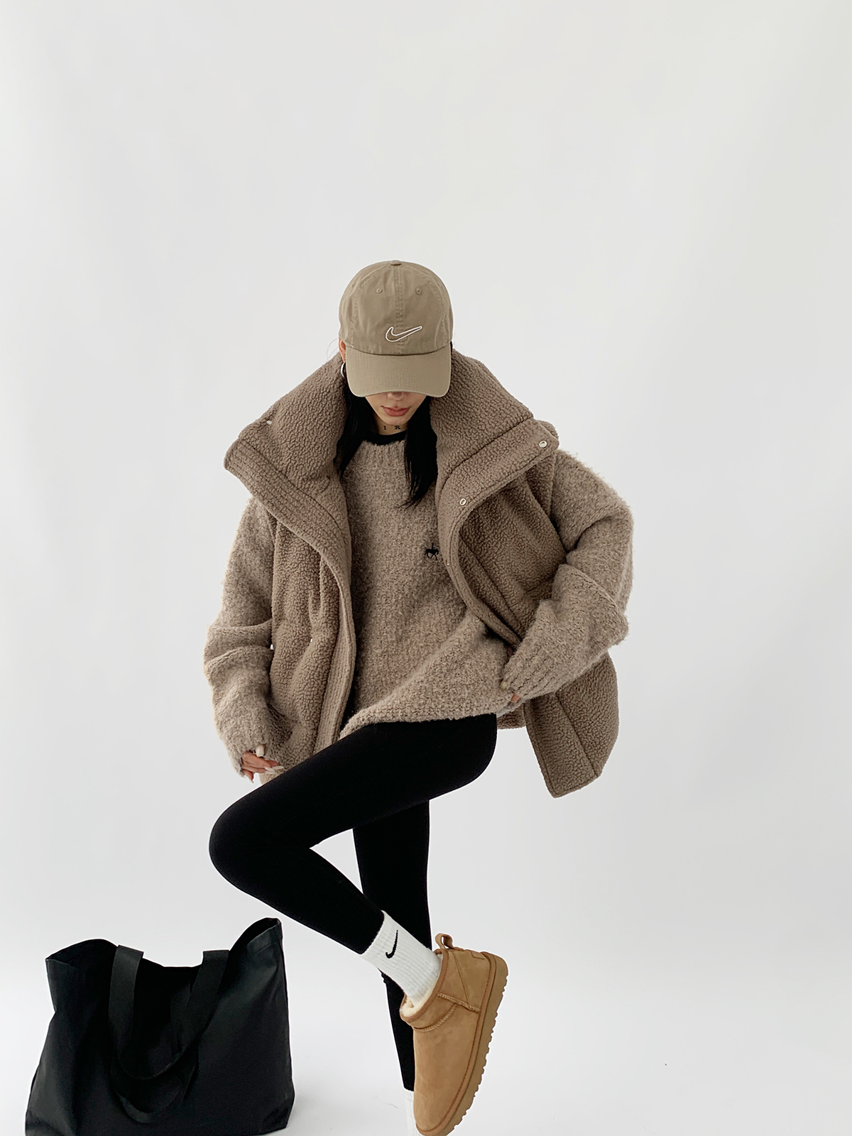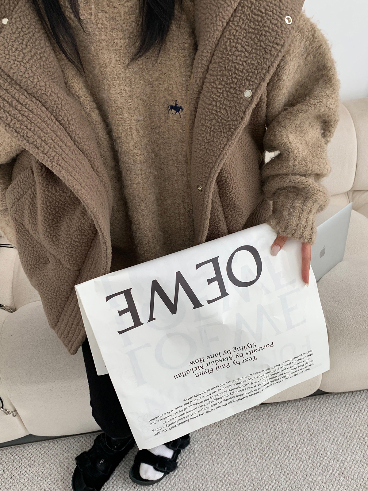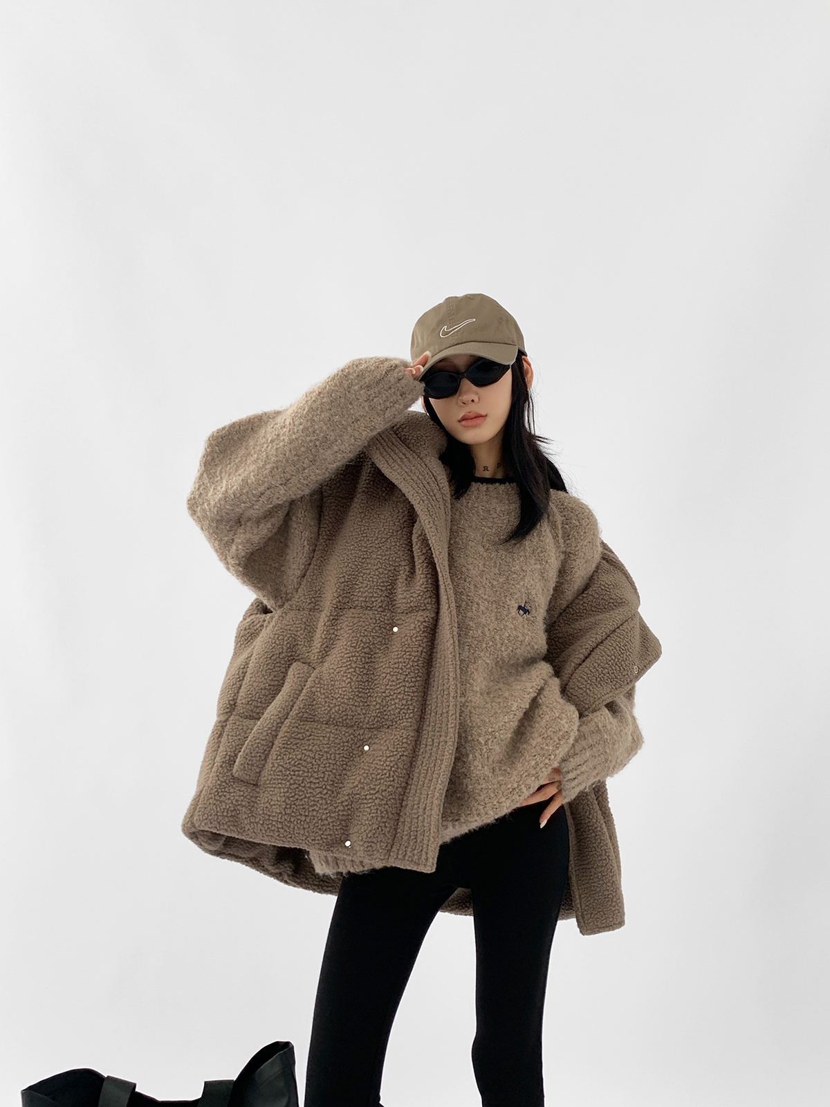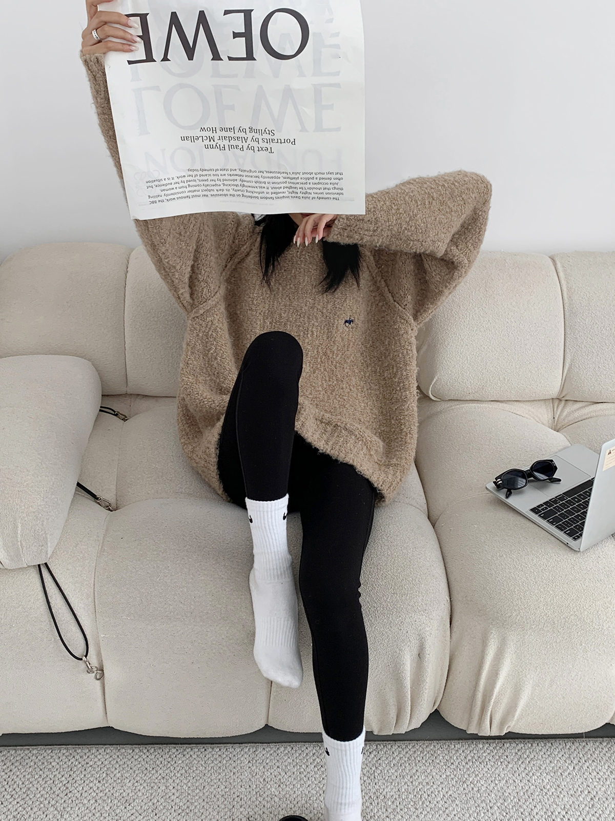 Acestudios oversize圈圈毛刺繡毛衣女2022秋冬新款加厚圓領上衣