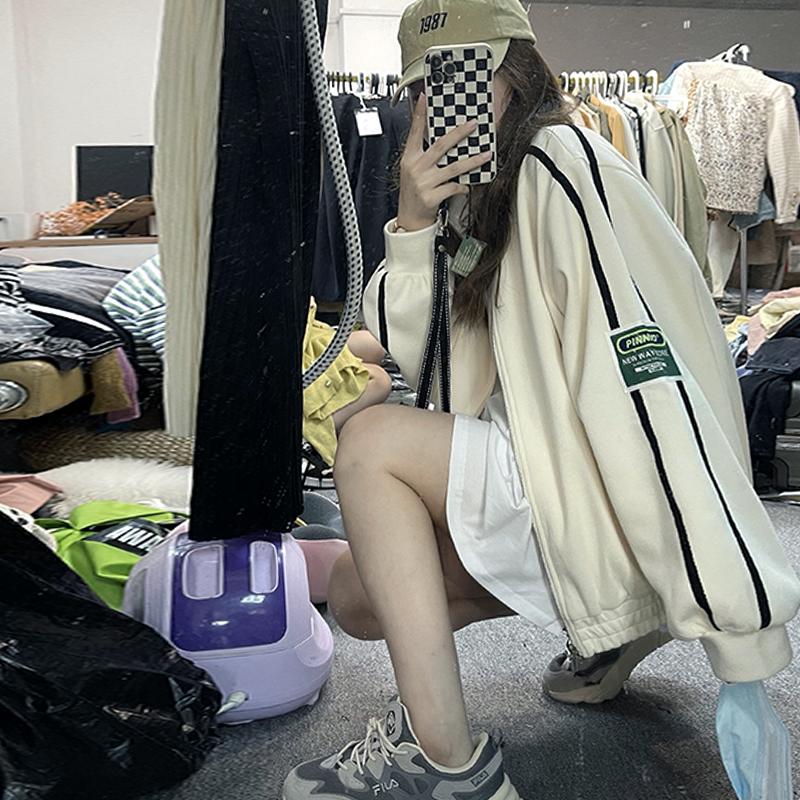 加絨衛衣女2023春秋新款設計感寬鬆小個子棒球服休閒上衣開衫外套