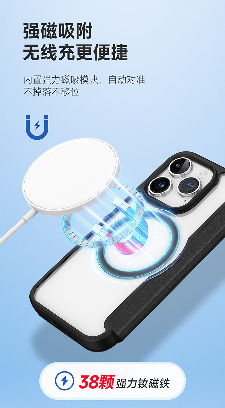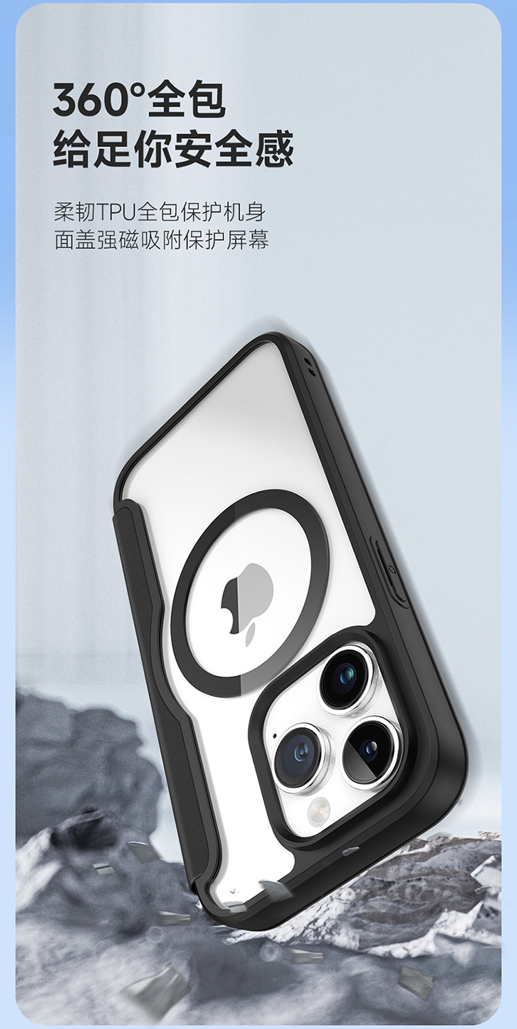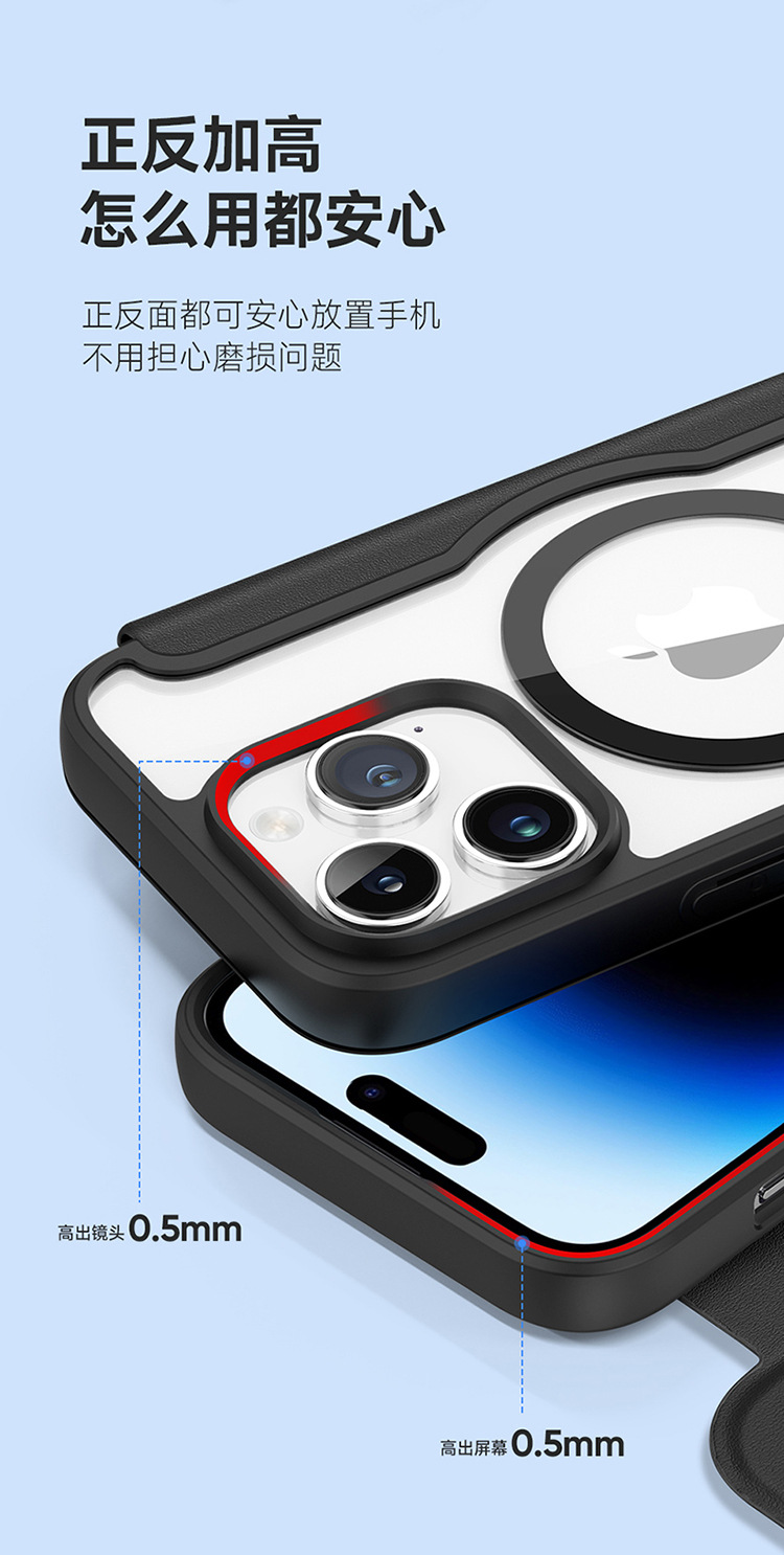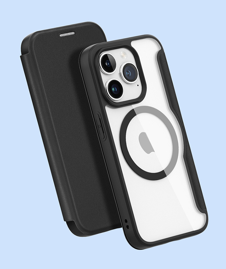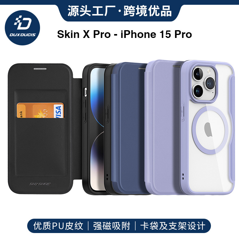 适用苹果15ProMax手机壳批发MagSafe翻盖插卡强磁吸iphone15 case