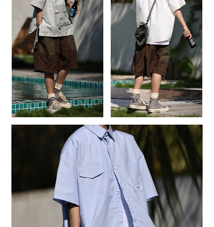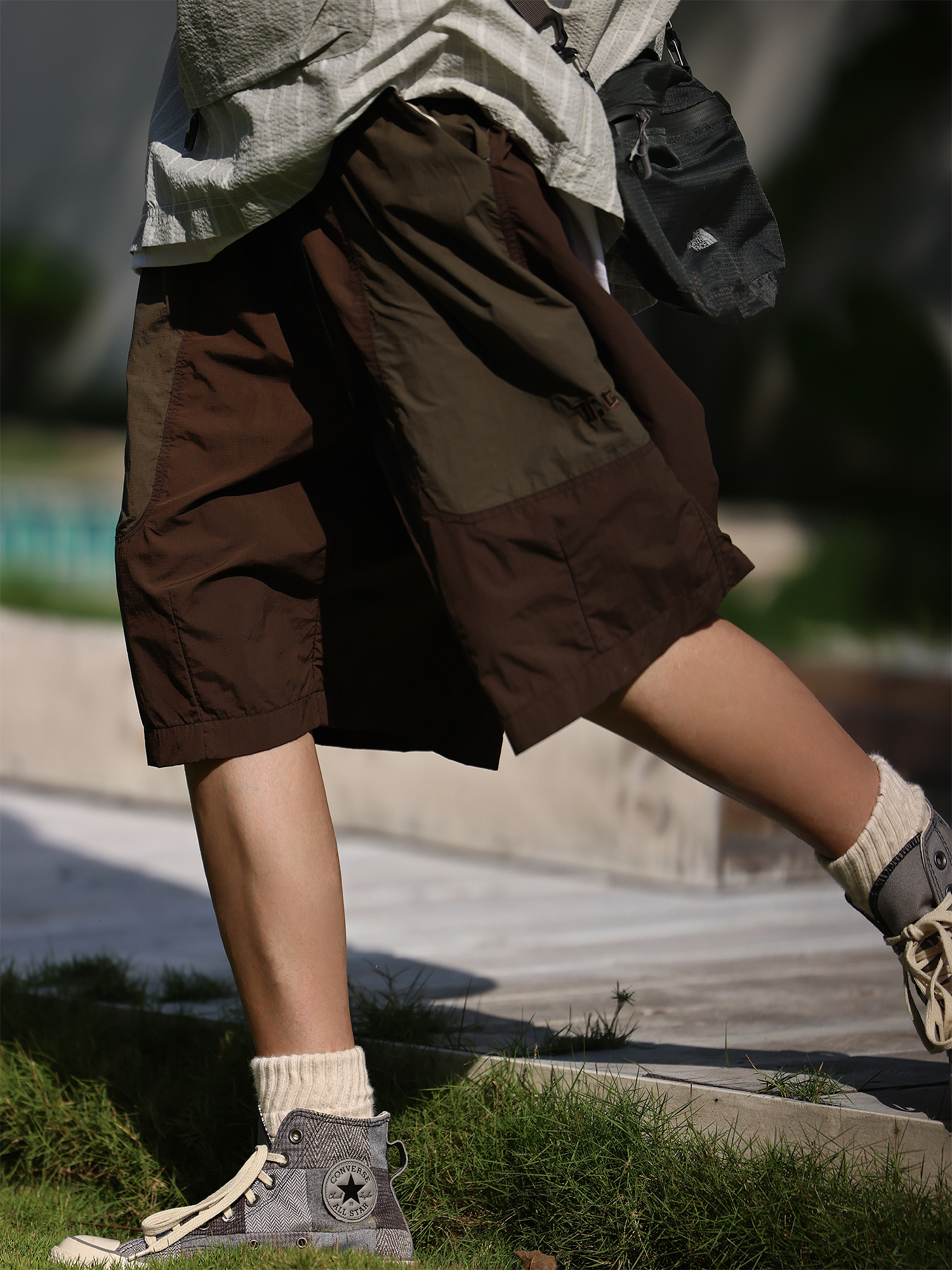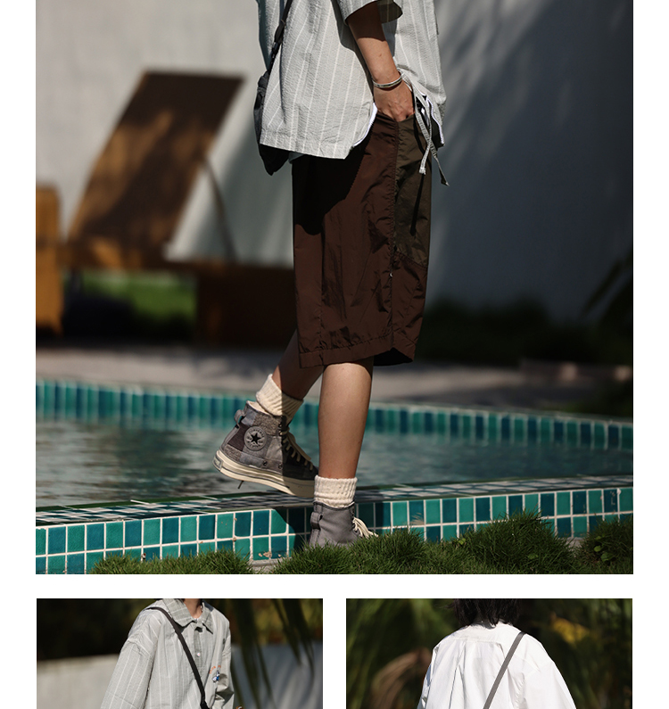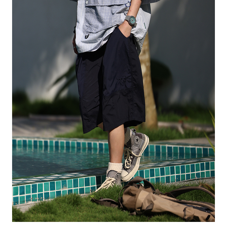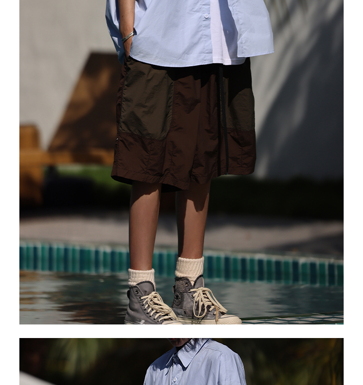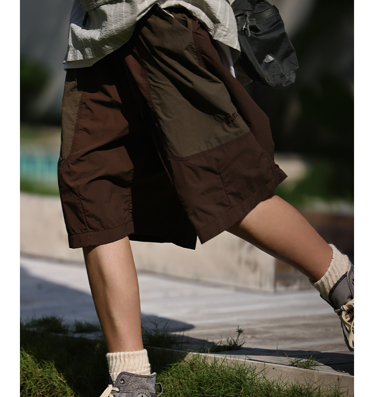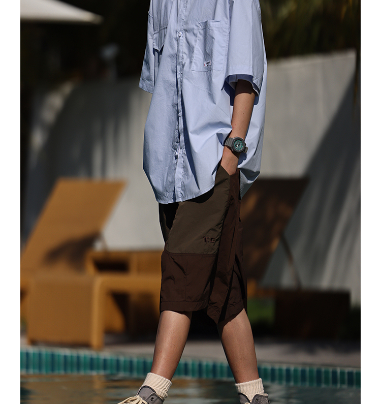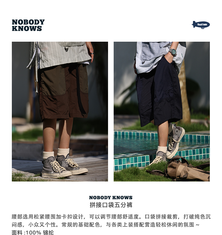 Nobodyknows夏季日系簡約輕薄拼色五分褲男女寬鬆復古百搭潮短褲