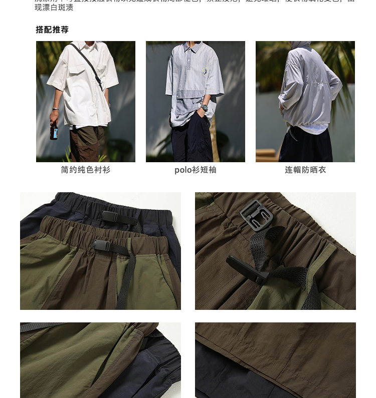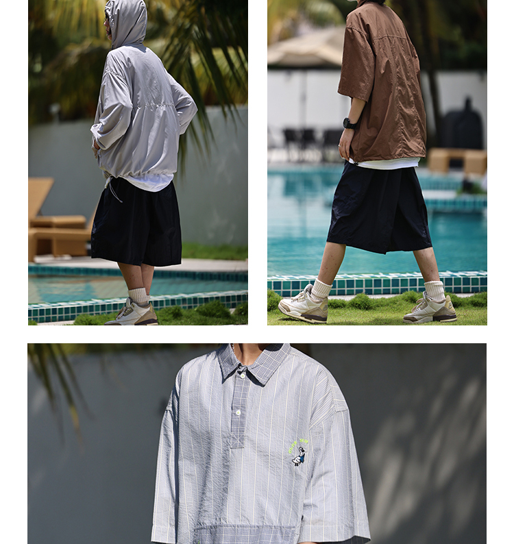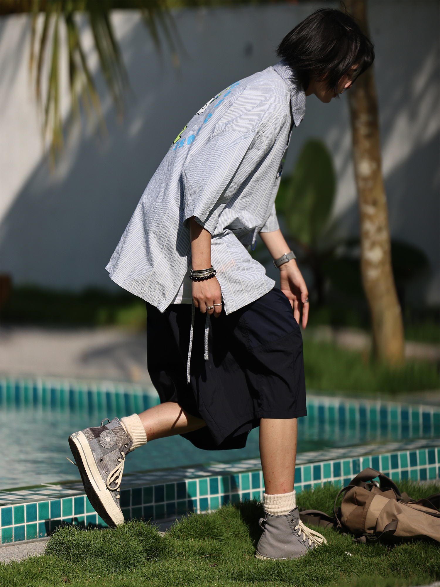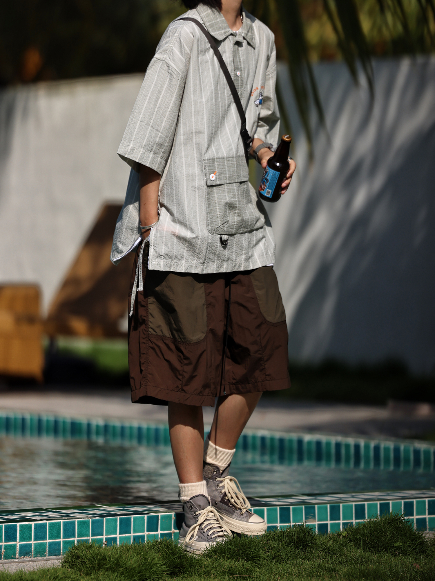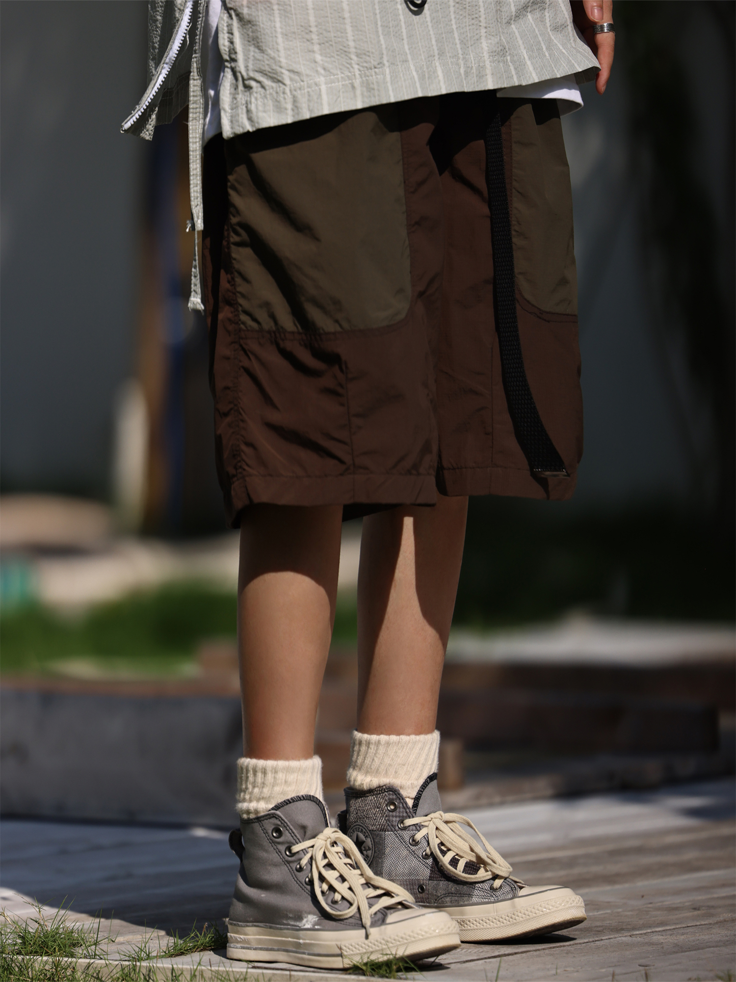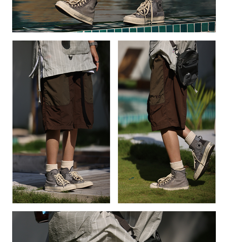 Nobodyknows夏季日系簡約輕薄拼色五分褲男女寬鬆復古百搭潮短褲