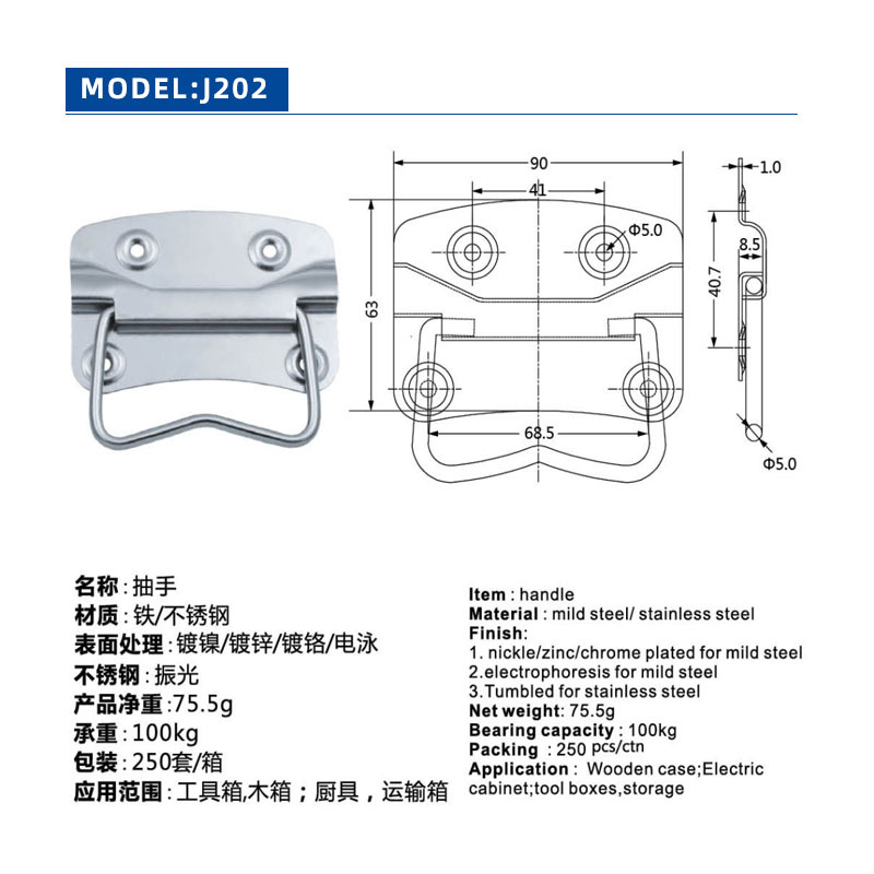 厂家直销电箱配件折叠抽手把手工业设备拉手木箱抽手J202