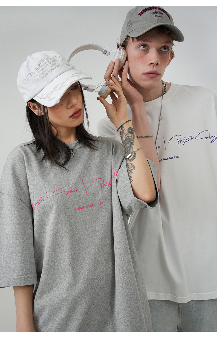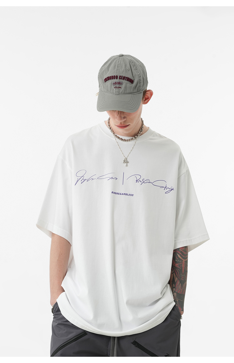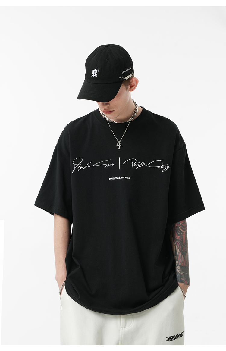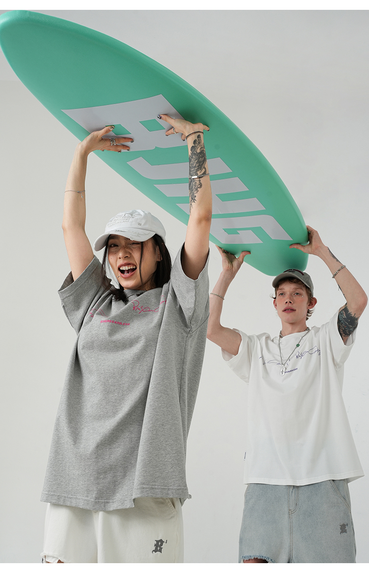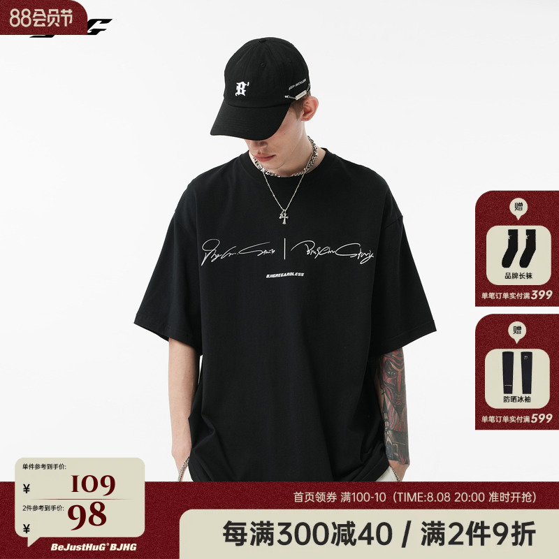 BJHG不計後果 夏季純棉短袖T恤男潮美式復古情侶重磅休閒半袖T恤