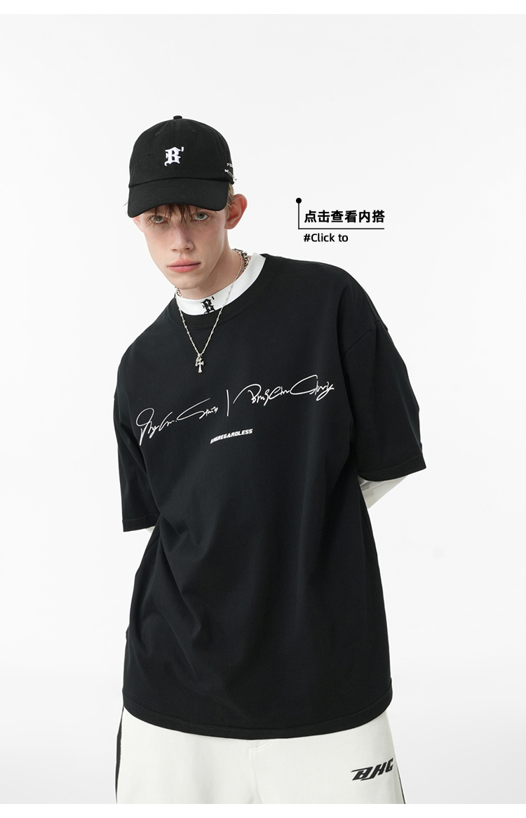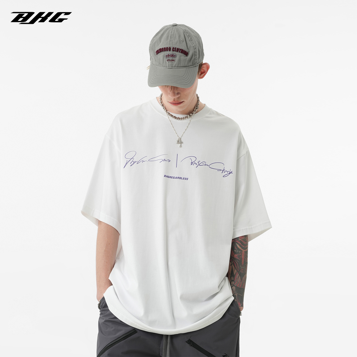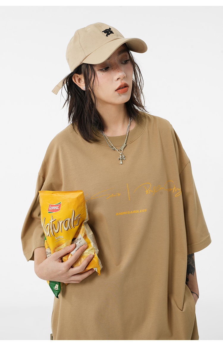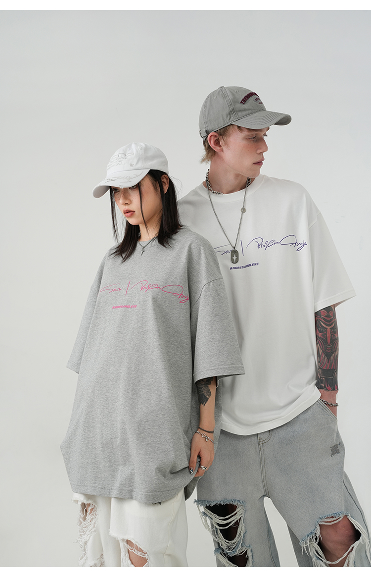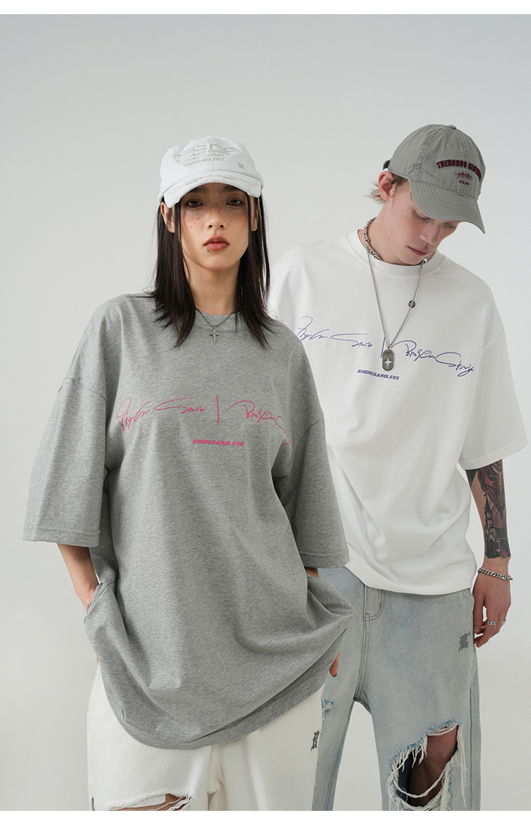 BJHG不計後果 夏季純棉短袖T恤男潮美式復古情侶重磅休閒半袖T恤