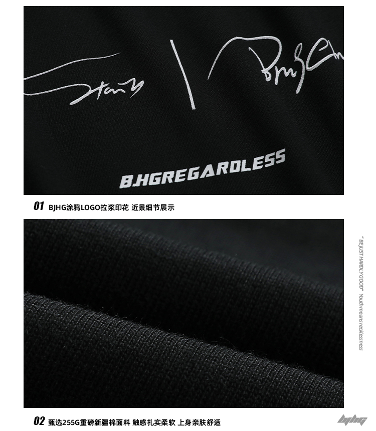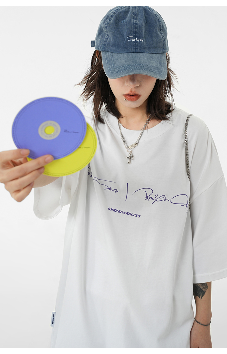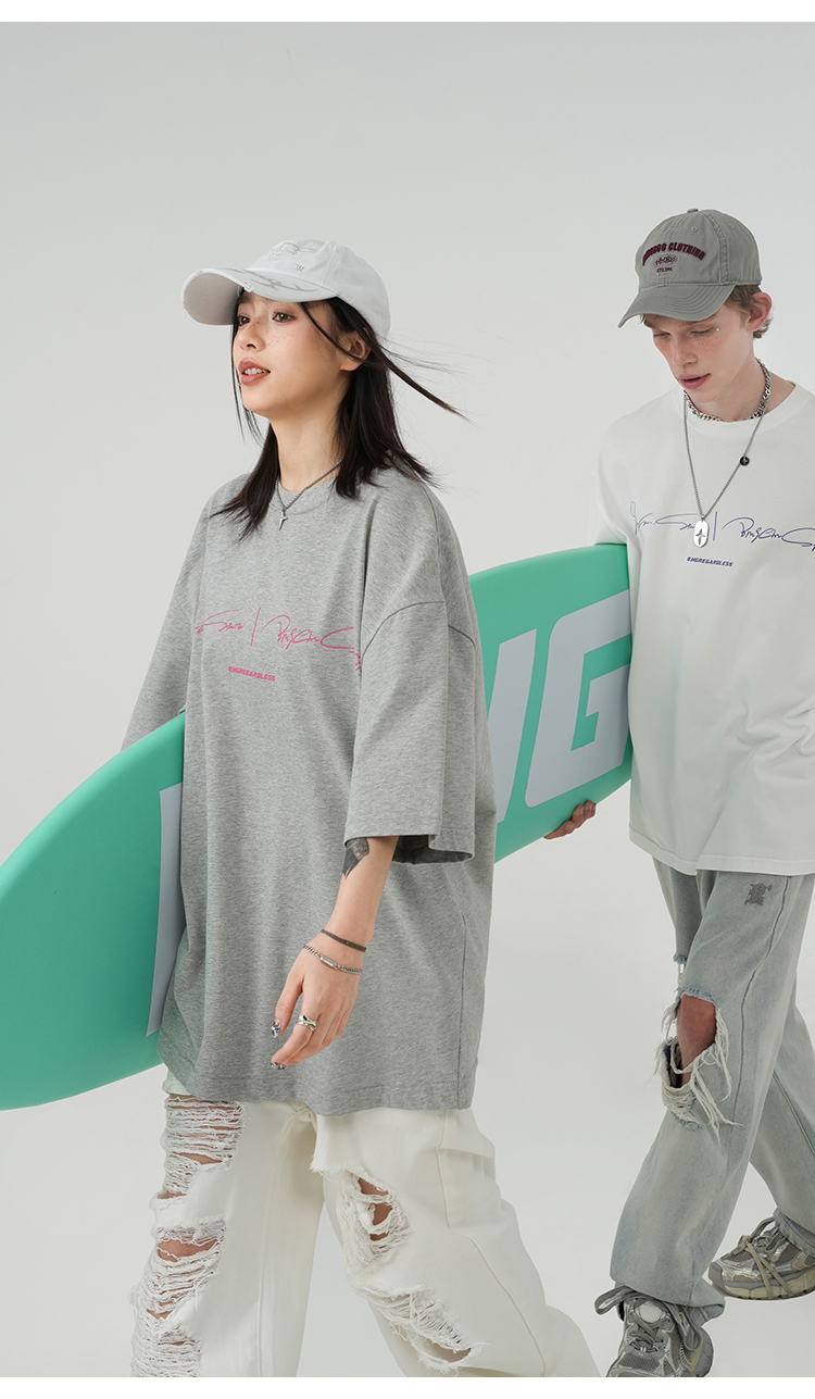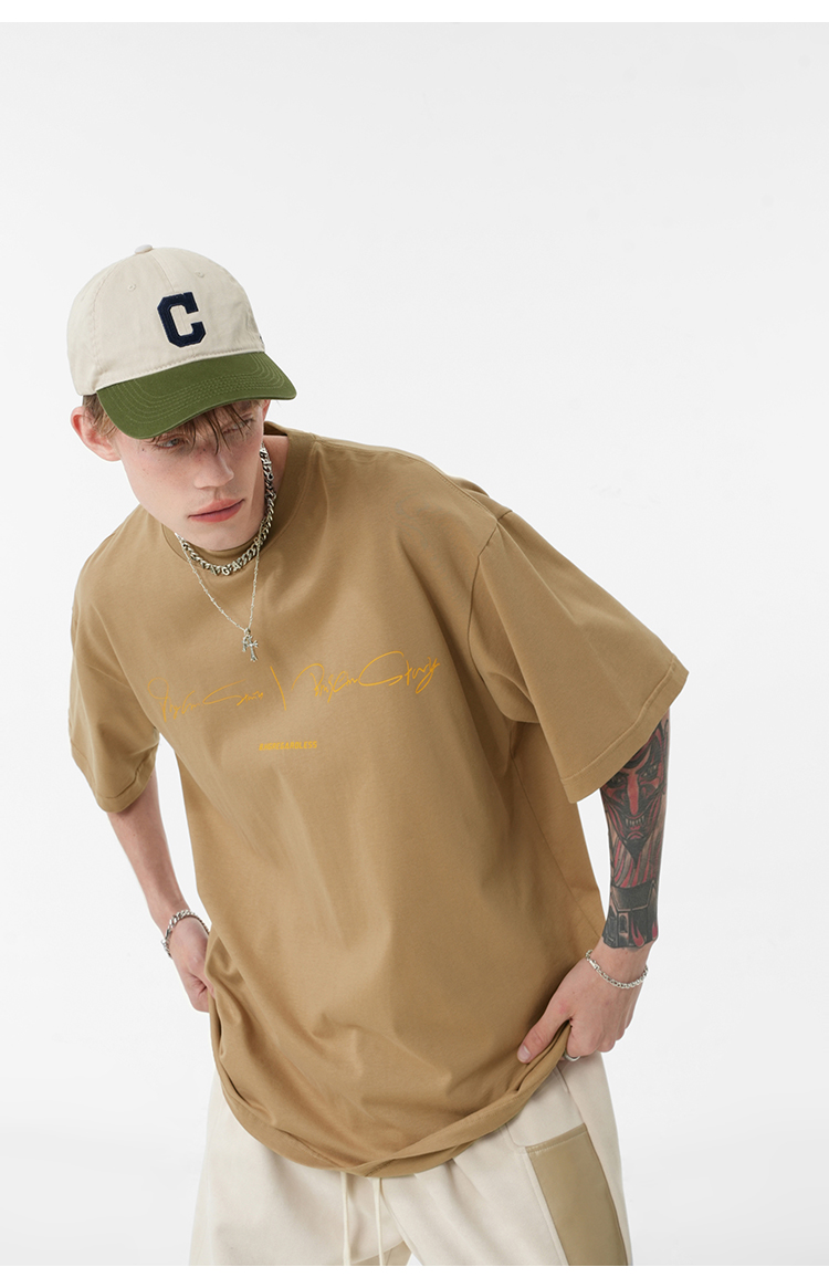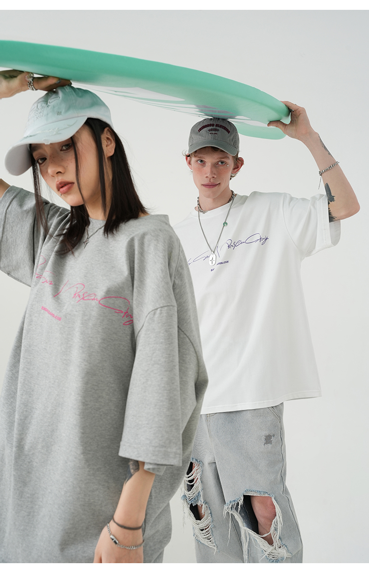 BJHG不計後果 夏季純棉短袖T恤男潮美式復古情侶重磅休閒半袖T恤