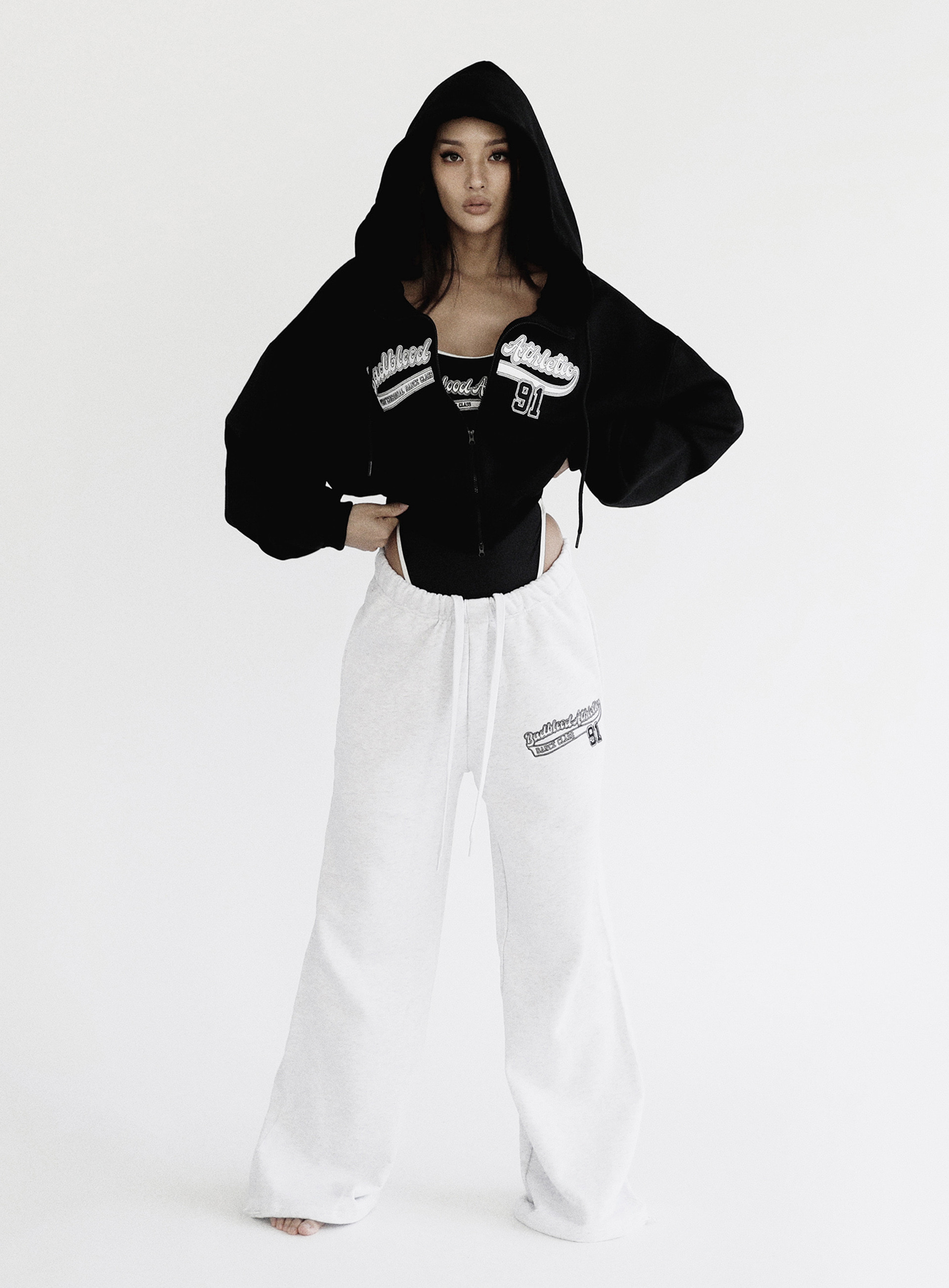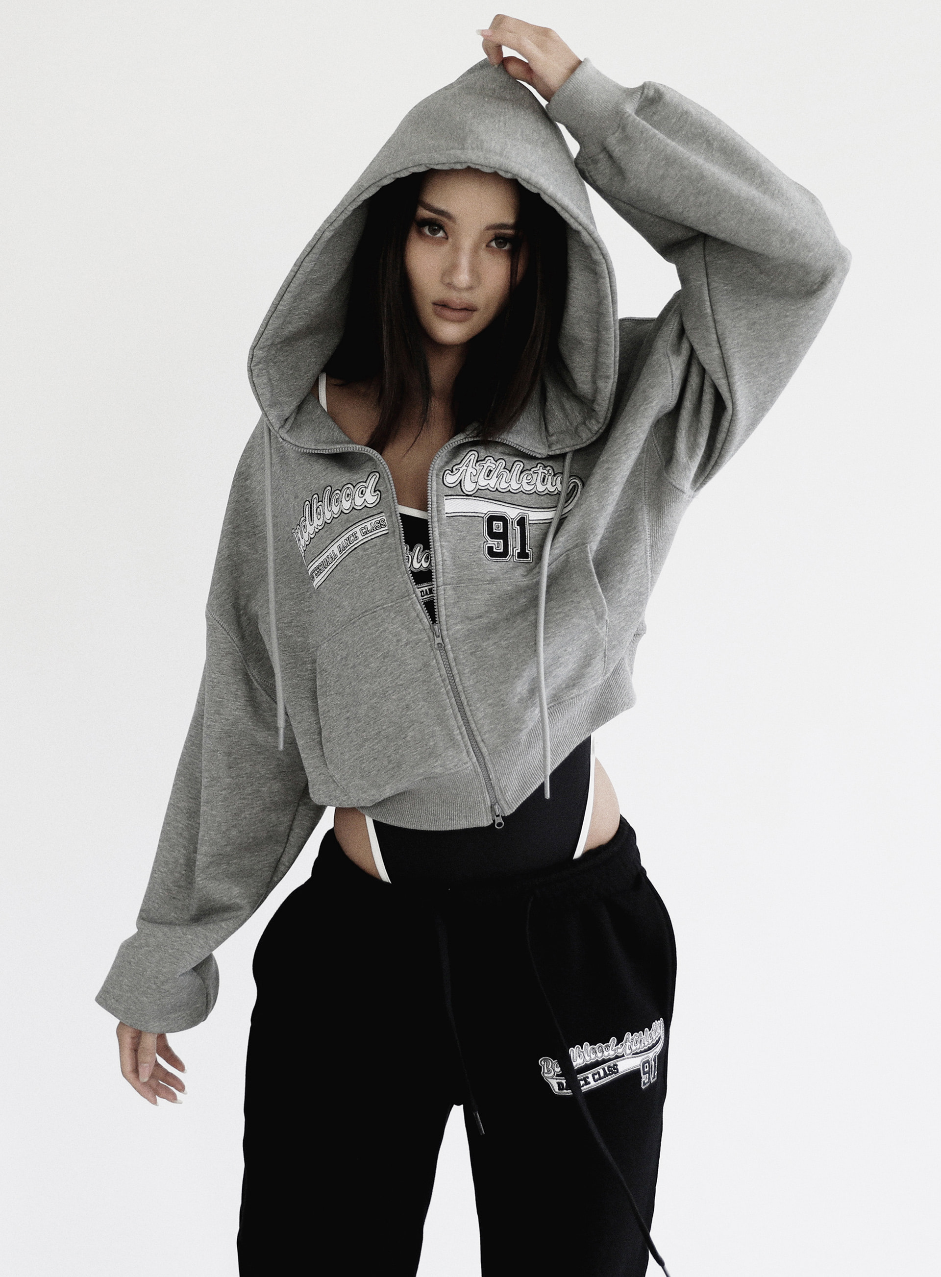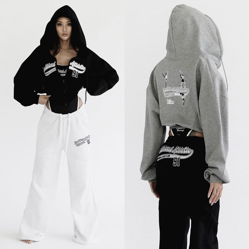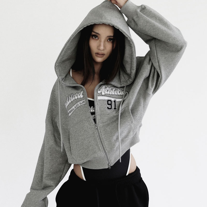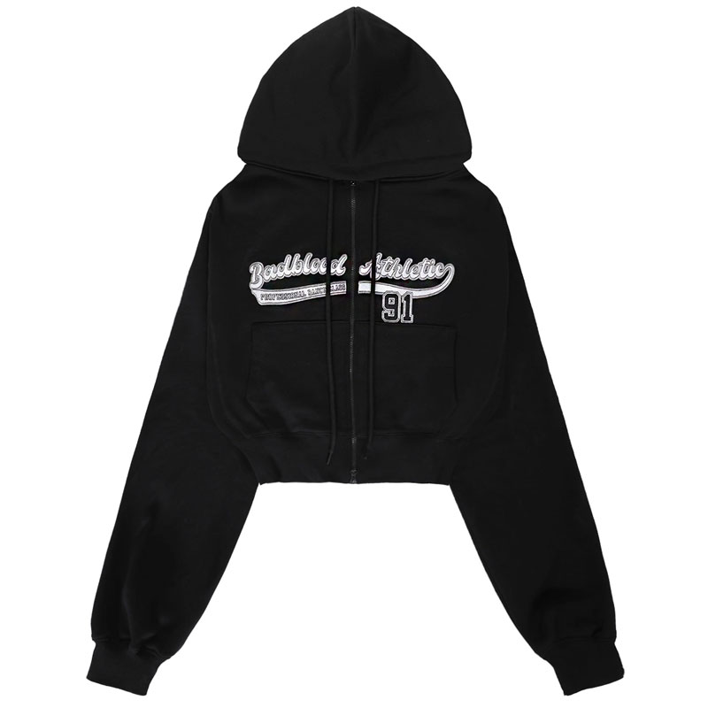 韓國badblood衛衣女短款美式運動辣妹高腰外套連帽休閒刺繡上衣潮
