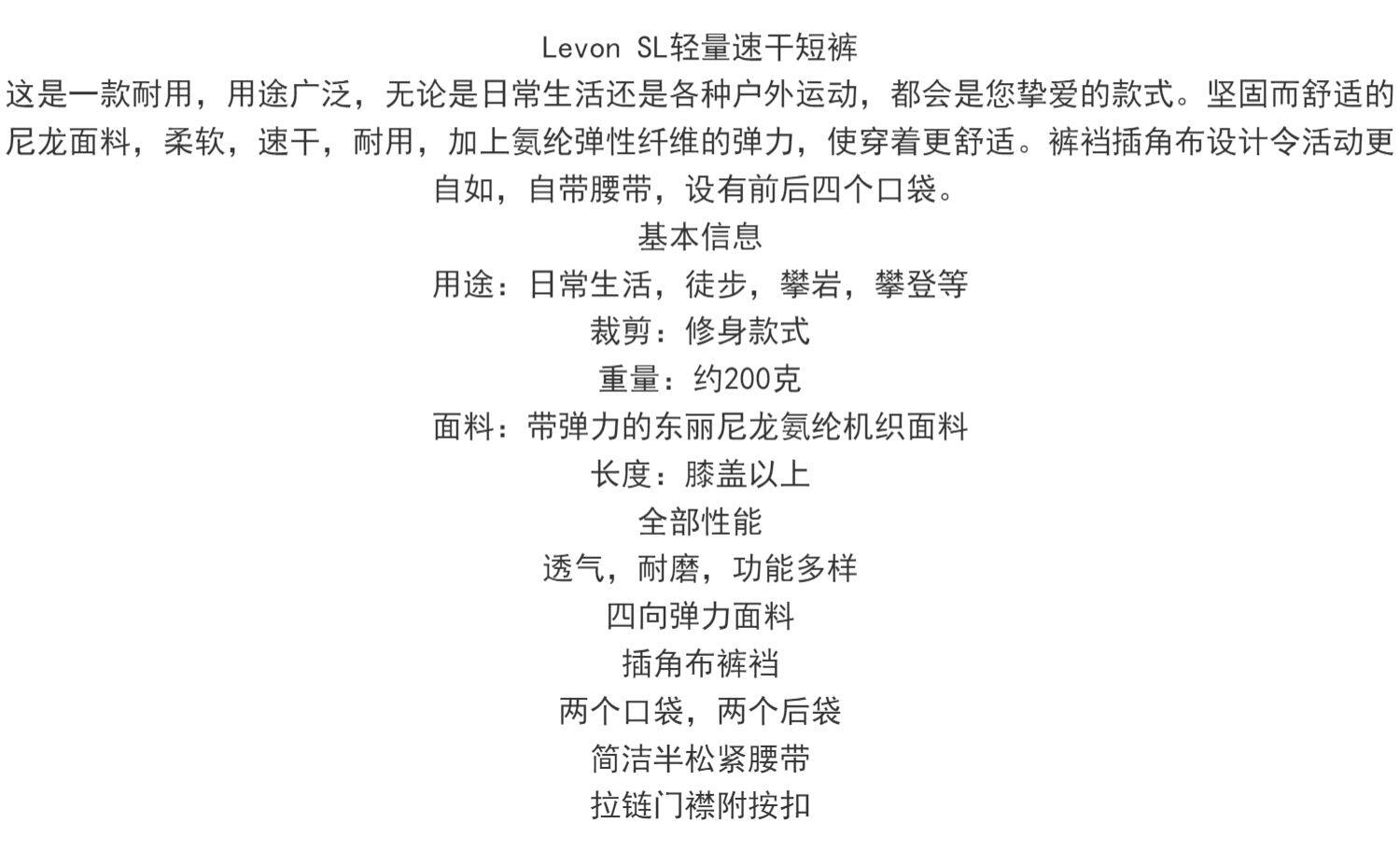 華巍2023款夏季Levon SL輕量透氣速乾短褲戶外運動耐磨登山短褲