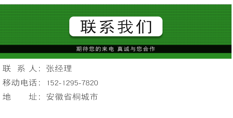联 系 人:先生(行政部 董事长) 电   话:86 0556 6811928 移动电话:15212957820 传   真:86 0556 6814689 地   址:中国 安徽 桐城市 桐城市新渡镇合安路新渡桥北50米处 邮   编:231470 公司主页:https://ahsmsy.1688.com