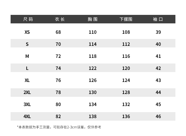 尺碼 XS S M L XL 2XL 3XL 4XL