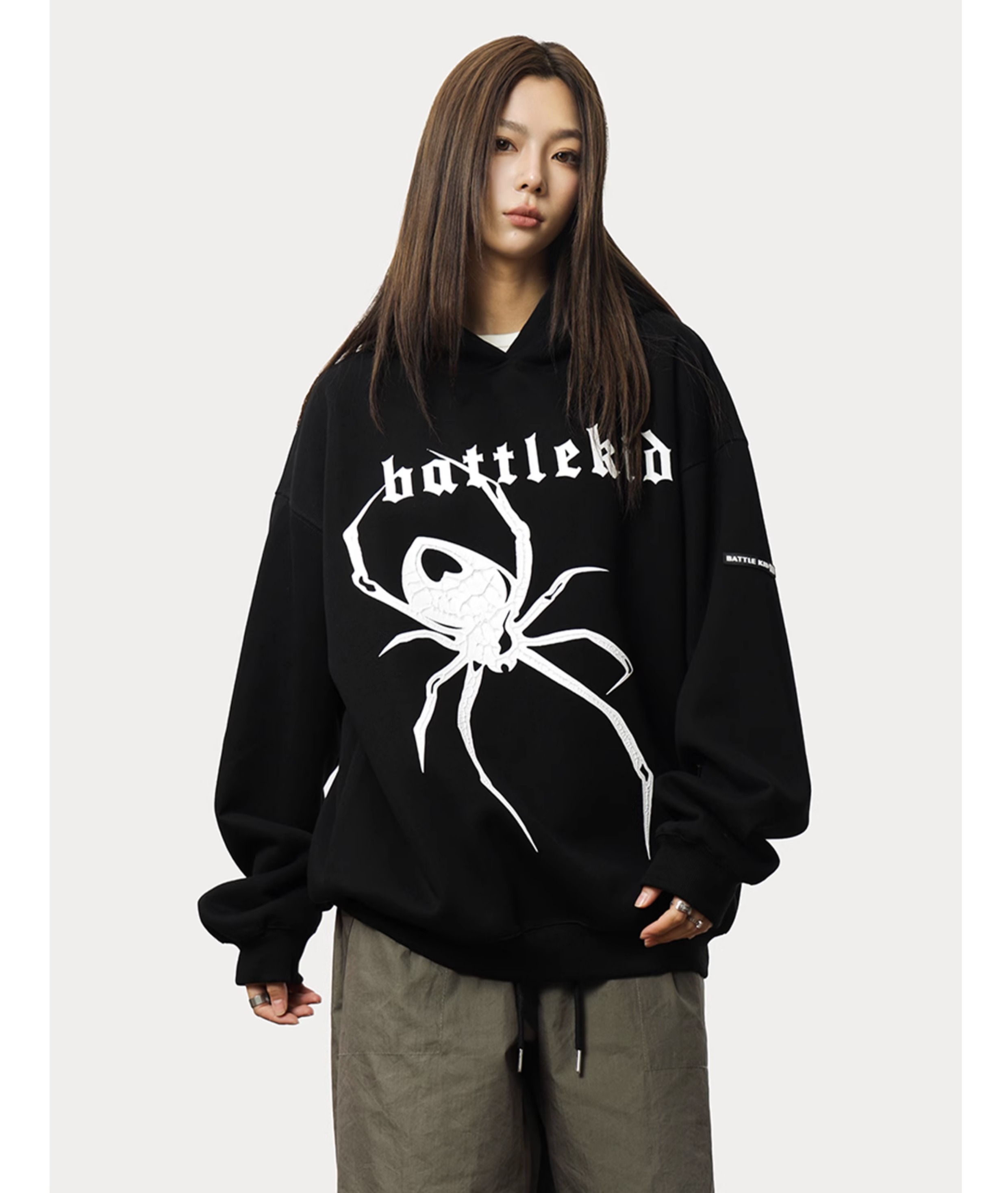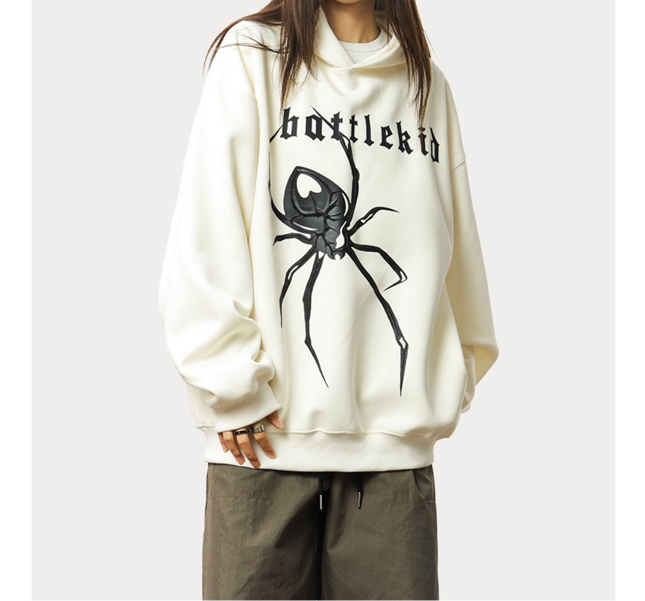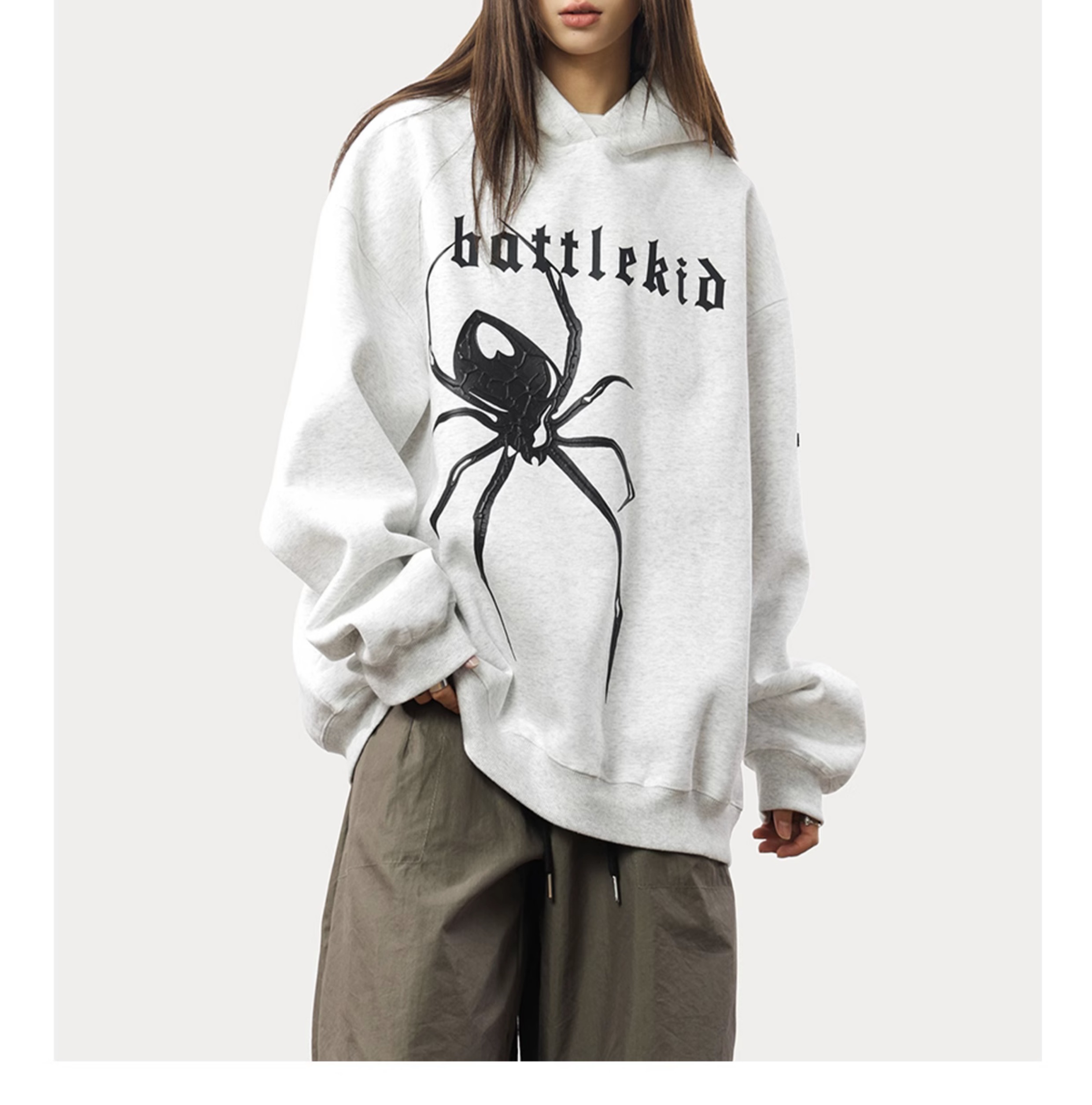 0123Start 美式痞帥蜘蛛印花連帽運動衫女歐美高街寬鬆套頭上衣外套