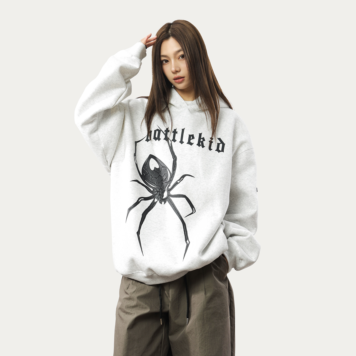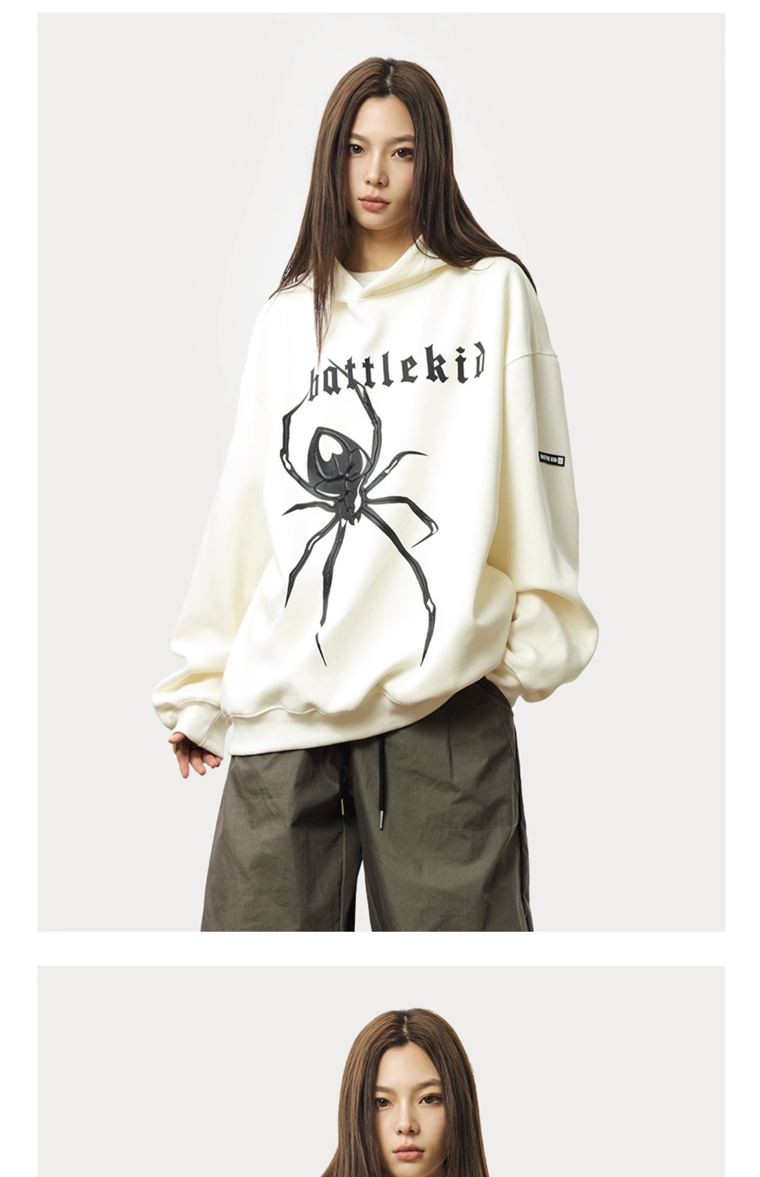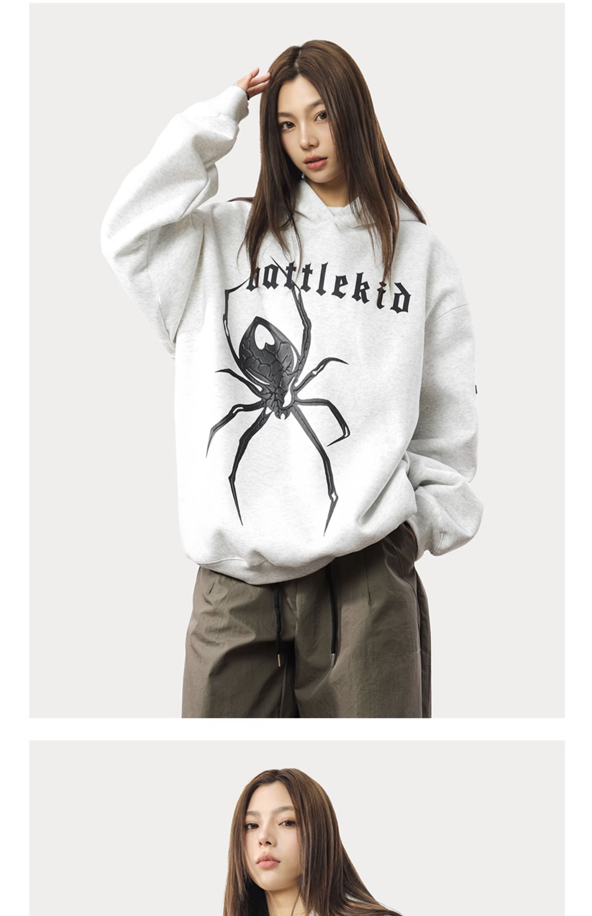 0123Start 美式痞帥蜘蛛印花連帽運動衫女歐美高街寬鬆套頭上衣外套