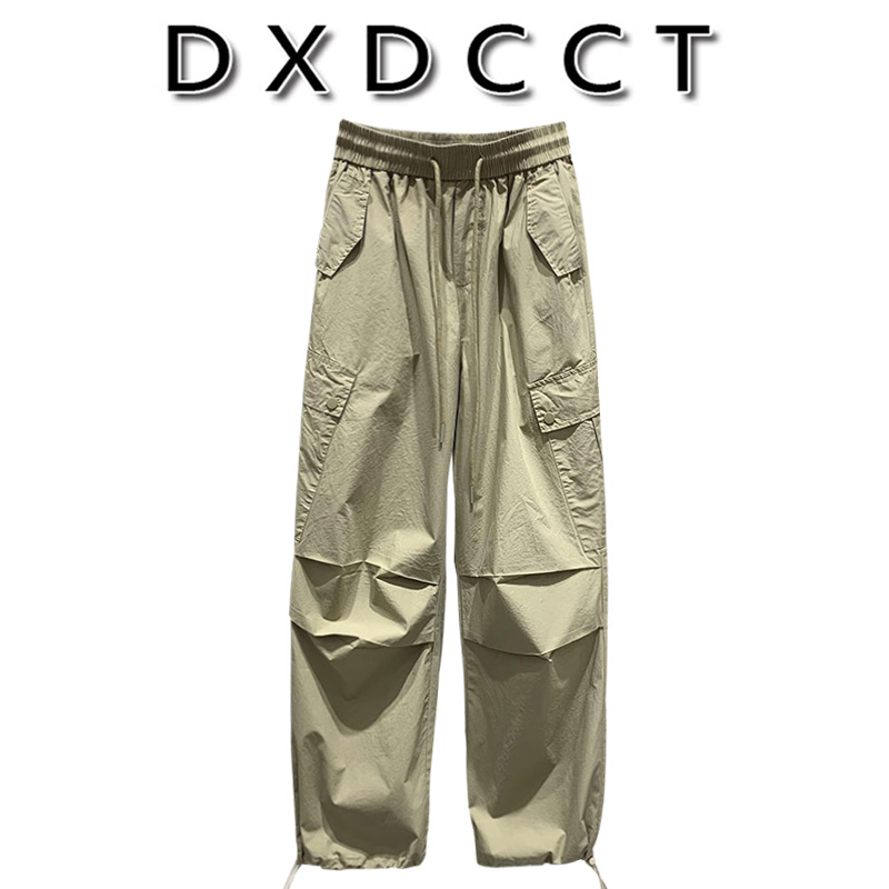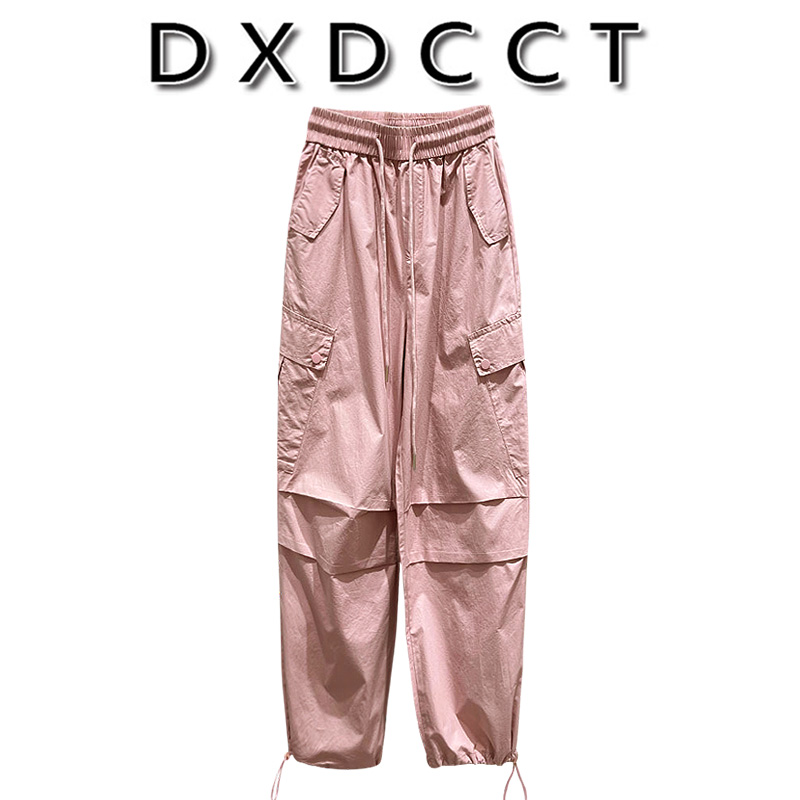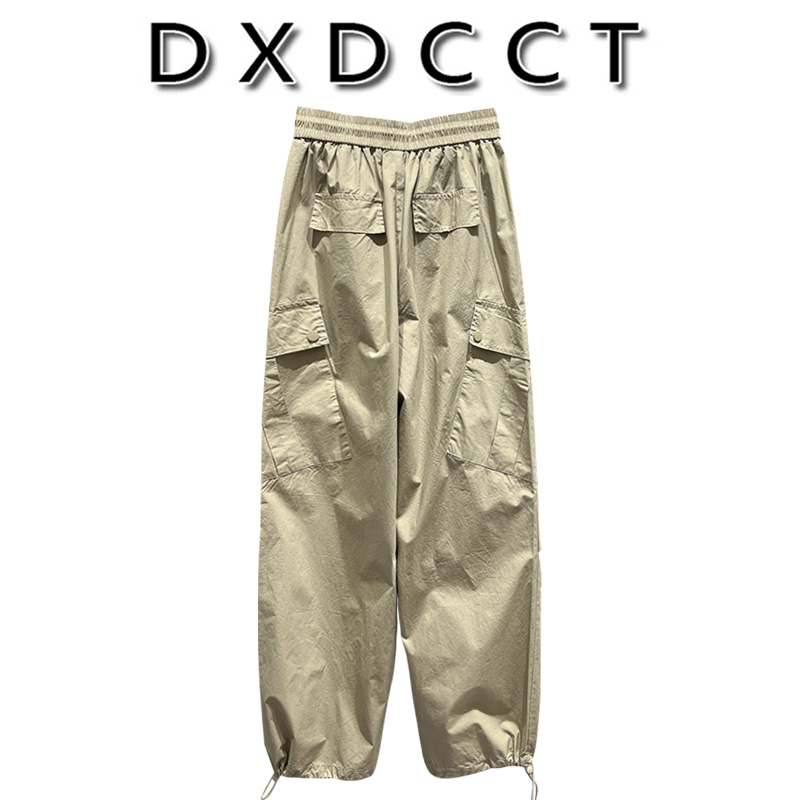 現貨~美式卡其色工裝褲女夏薄款設計感小眾闊腿褲休閒九分哈倫褲