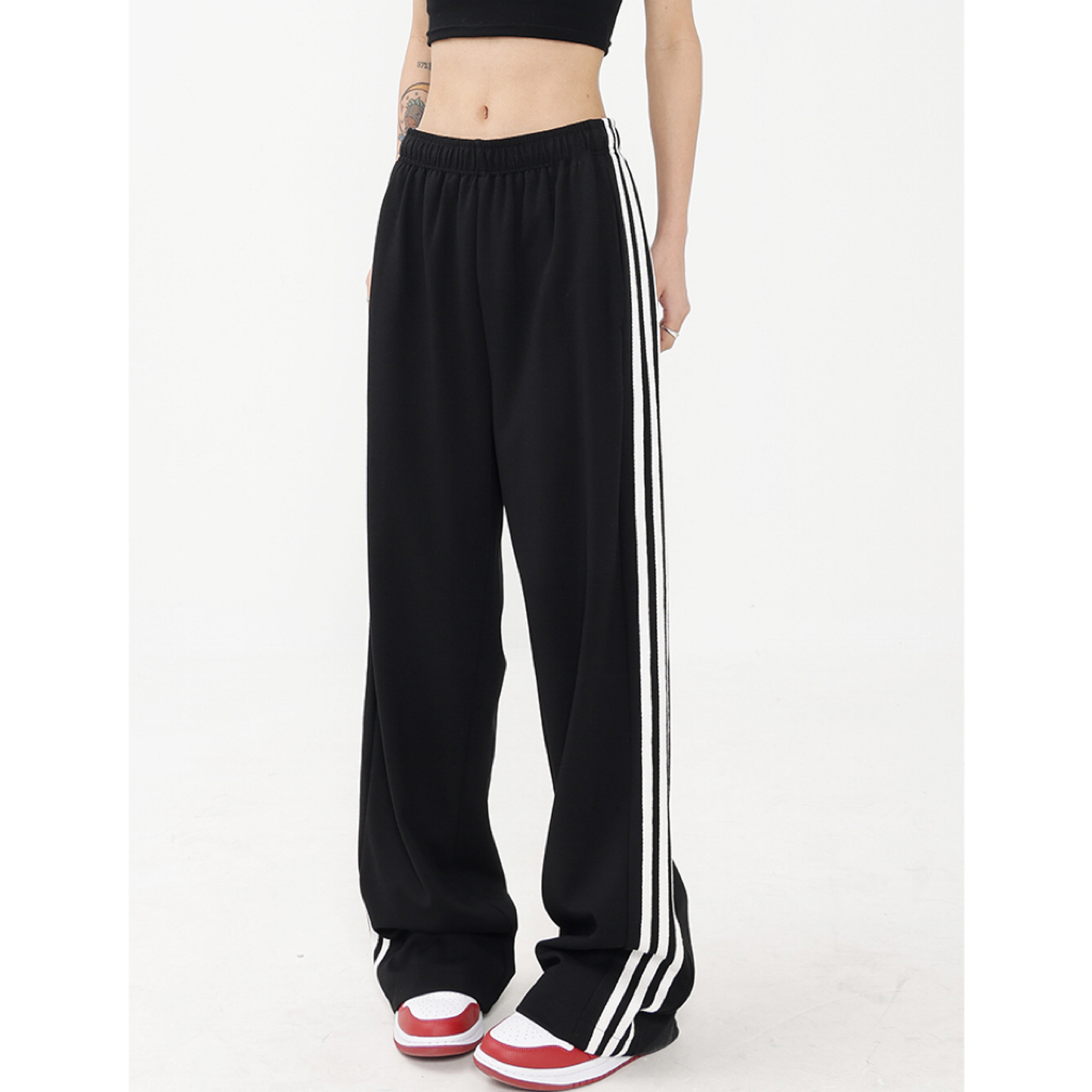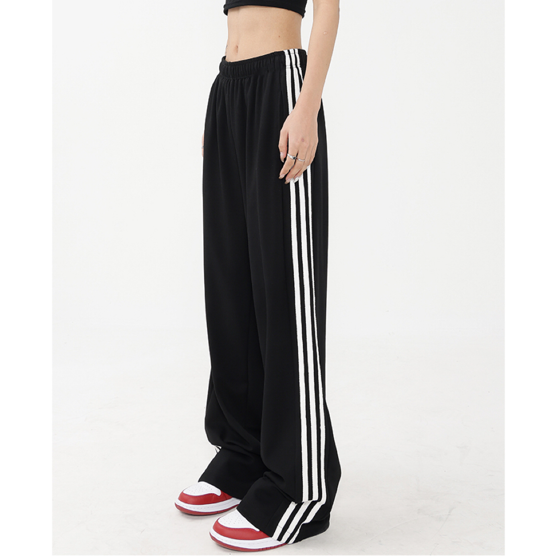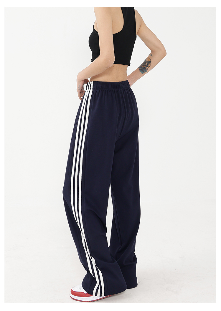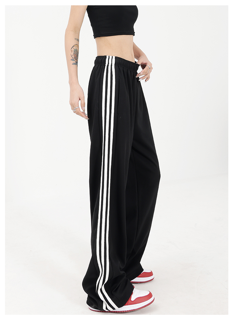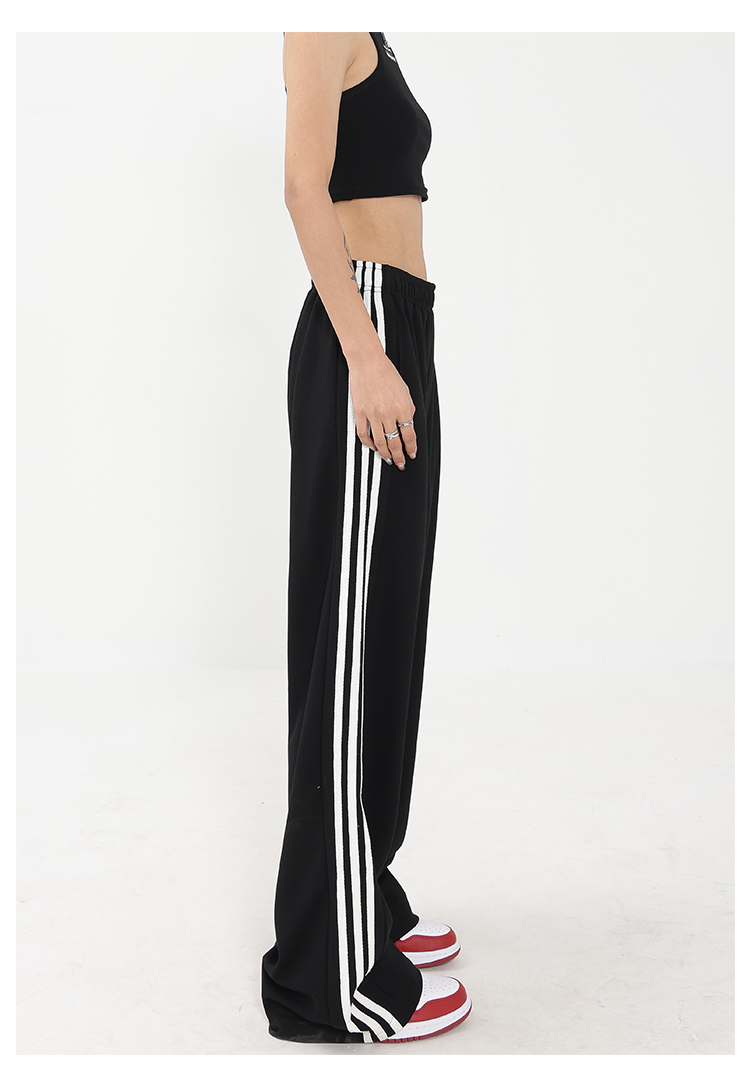 美式黑色直筒運動褲女早秋新款衛褲百搭條紋長褲闊腿顯瘦休閒褲子