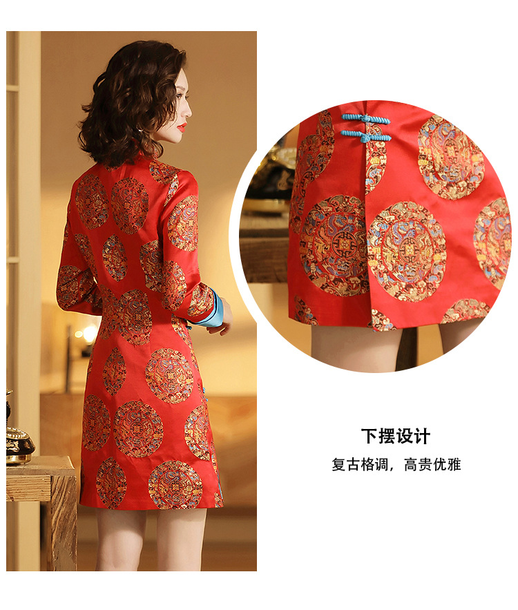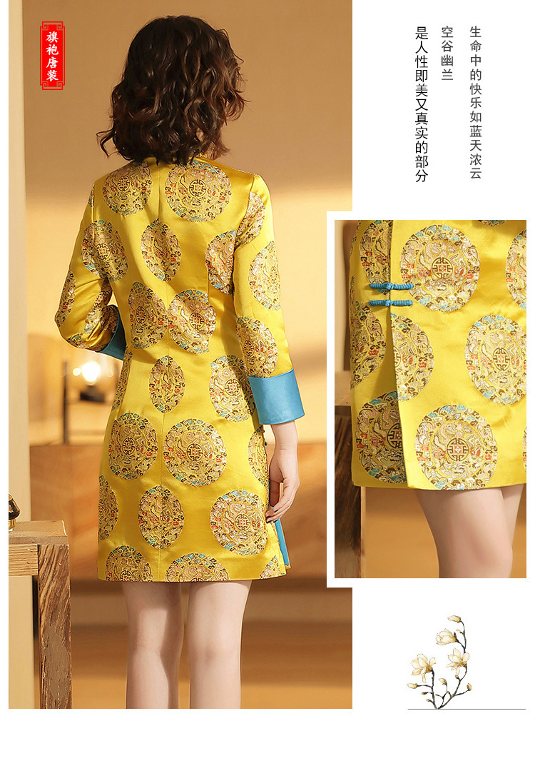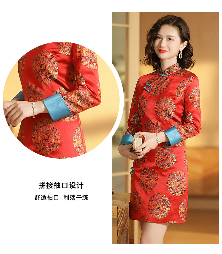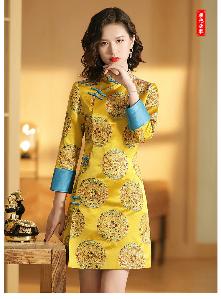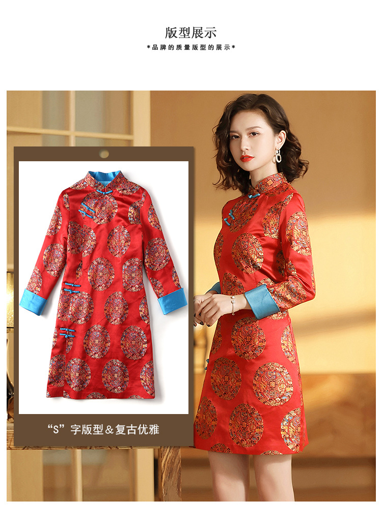 织锦立领旗袍连衣裙秋季民国风女装精品修身撞色传统中旗袍裙
