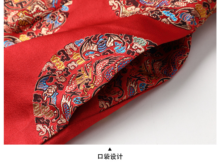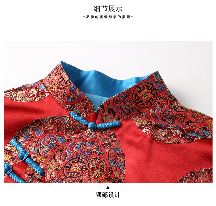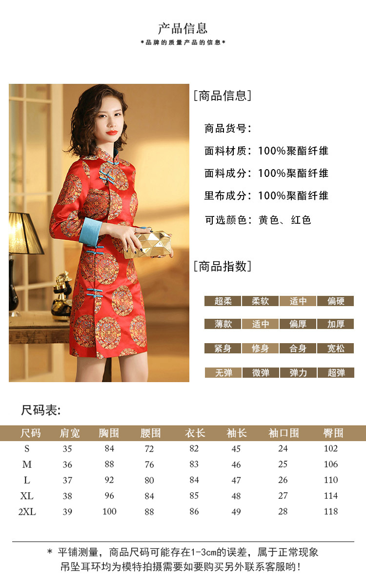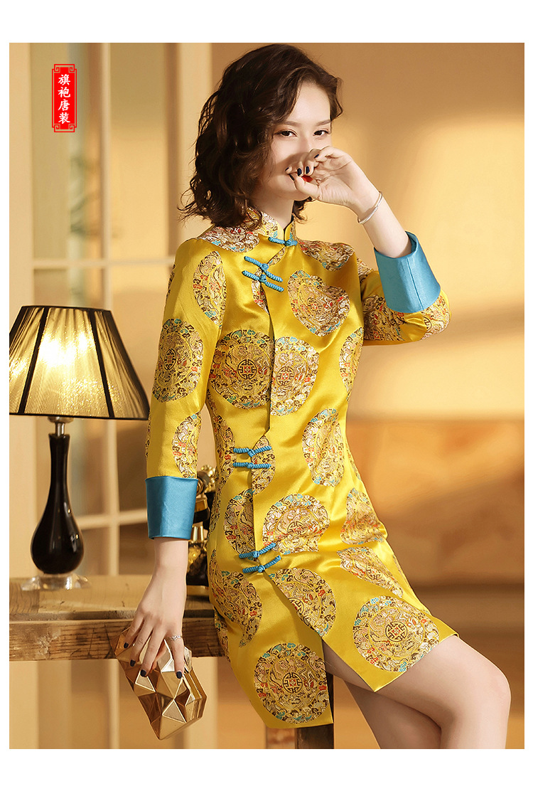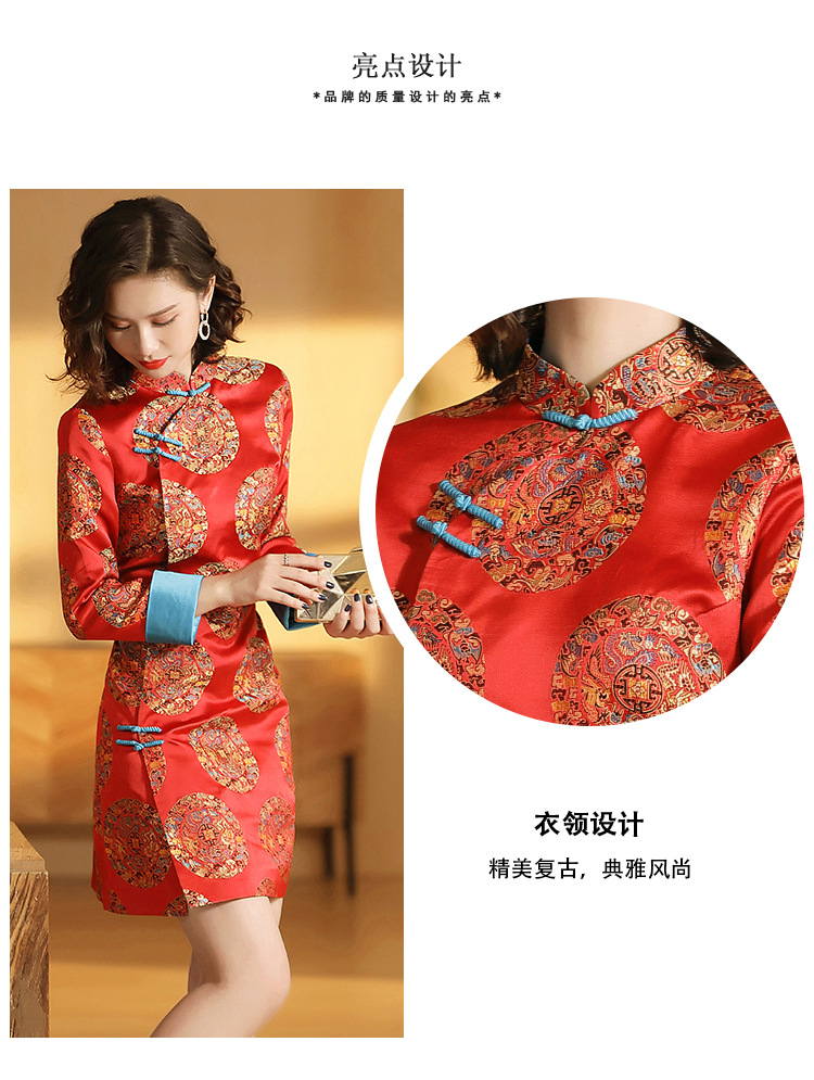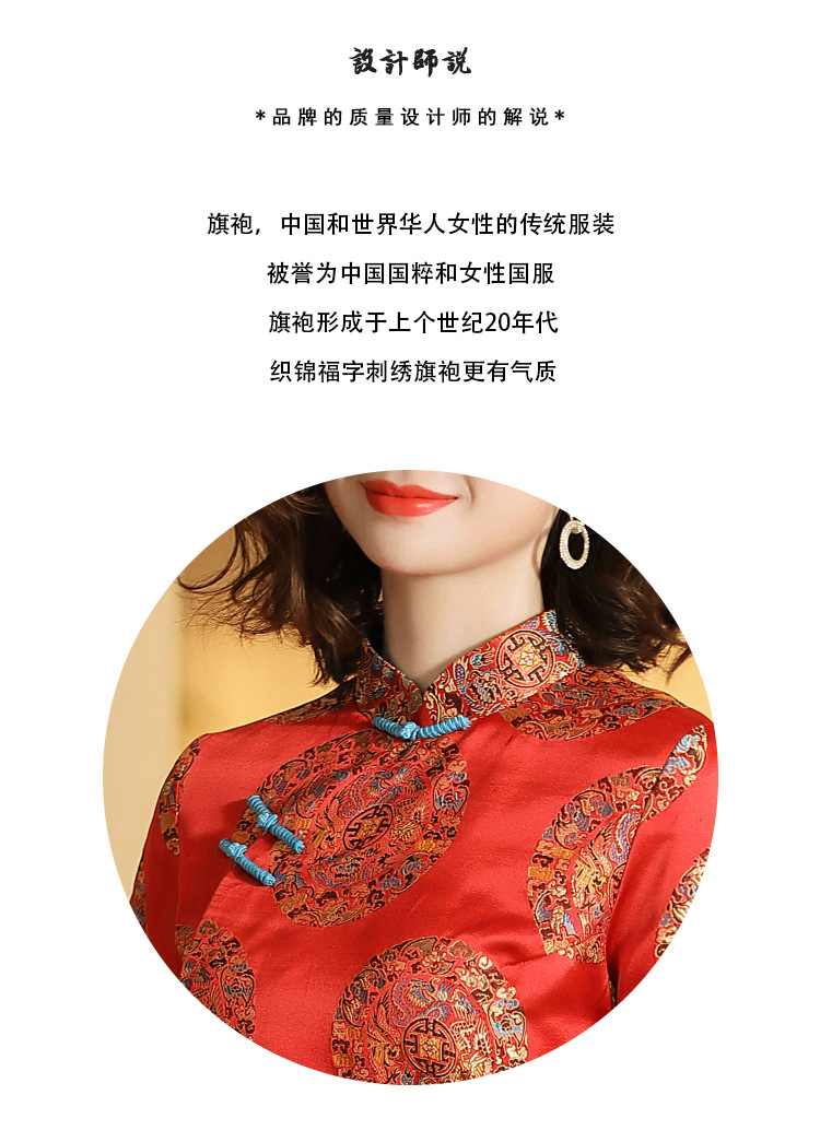 织锦立领旗袍连衣裙秋季民国风女装精品修身撞色传统中旗袍裙