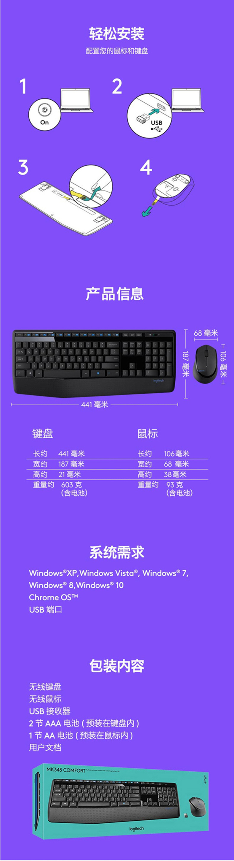 批发罗技MK345无线键鼠套装电脑游戏无线鼠标键盘套装电脑配件