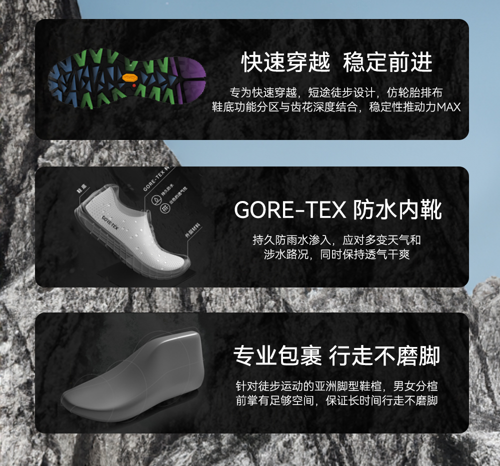 凱樂石戶外登山徒步鞋低幫GTX防水男女V底耐磨防滑越野跑鞋/括蒼