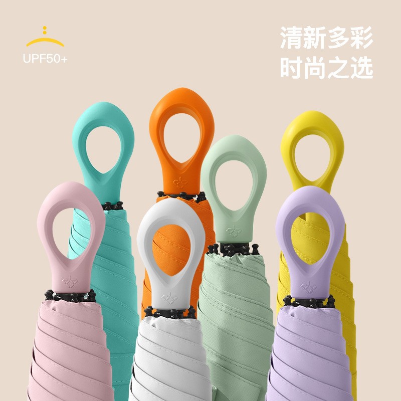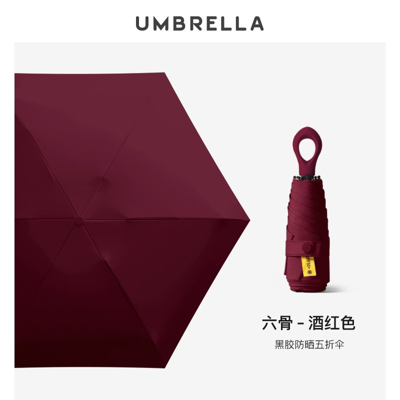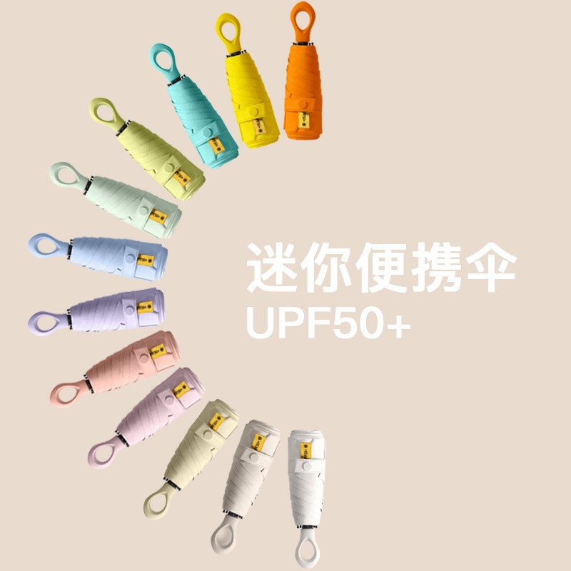 新款胶囊伞五折六骨超轻迷你黑胶防晒太阳伞折叠便携指环手柄雨伞