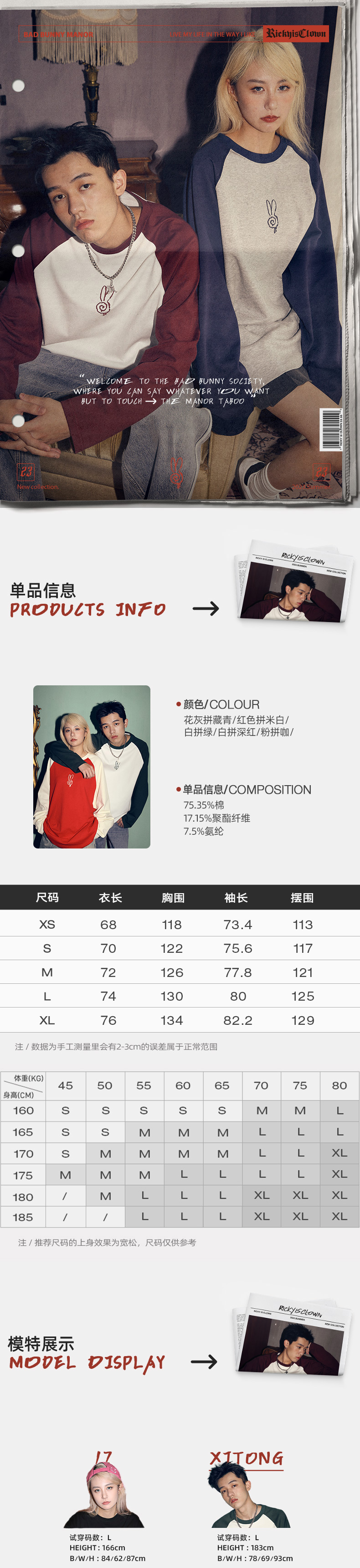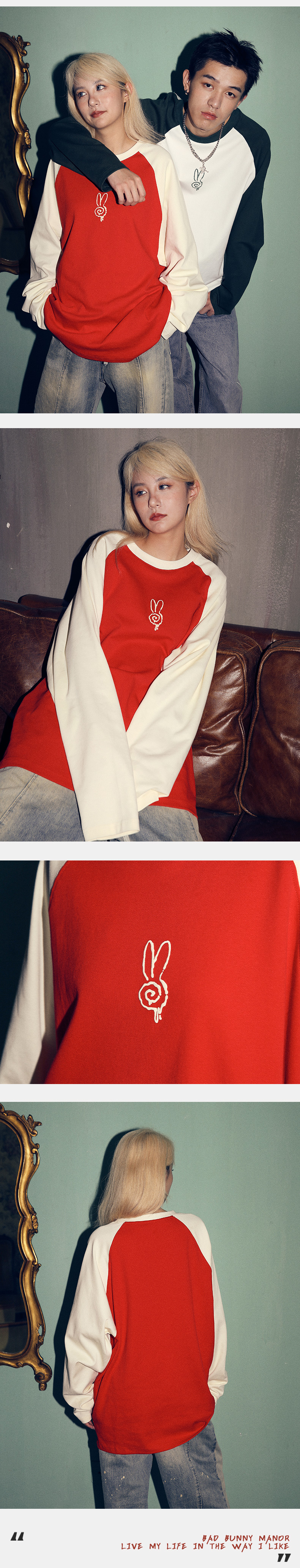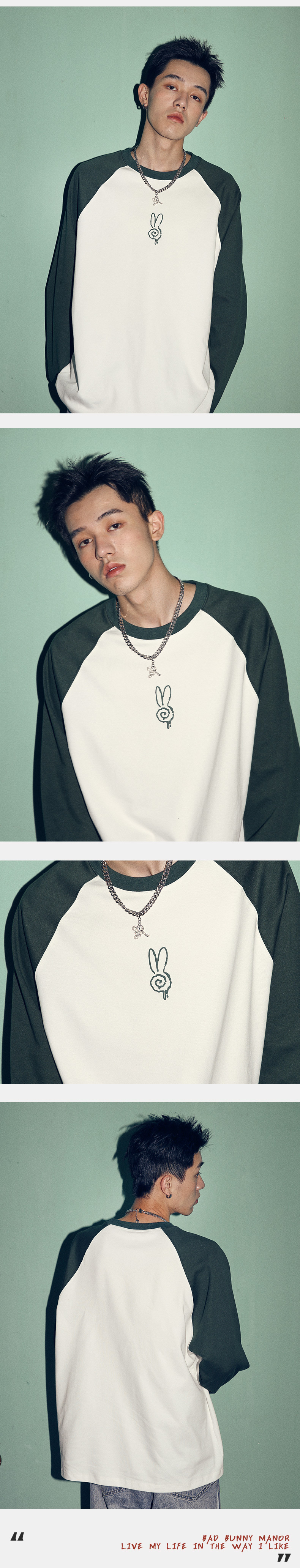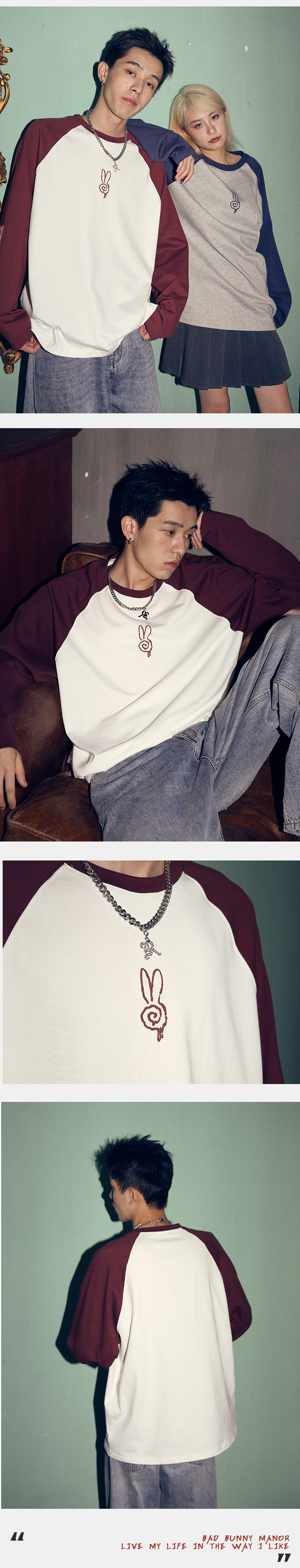 【周翊然同款】RickyisClownRiC 漩渦兔發泡印花撞色插肩長袖T恤