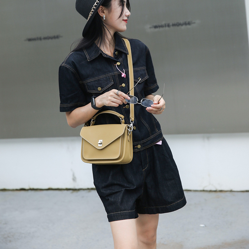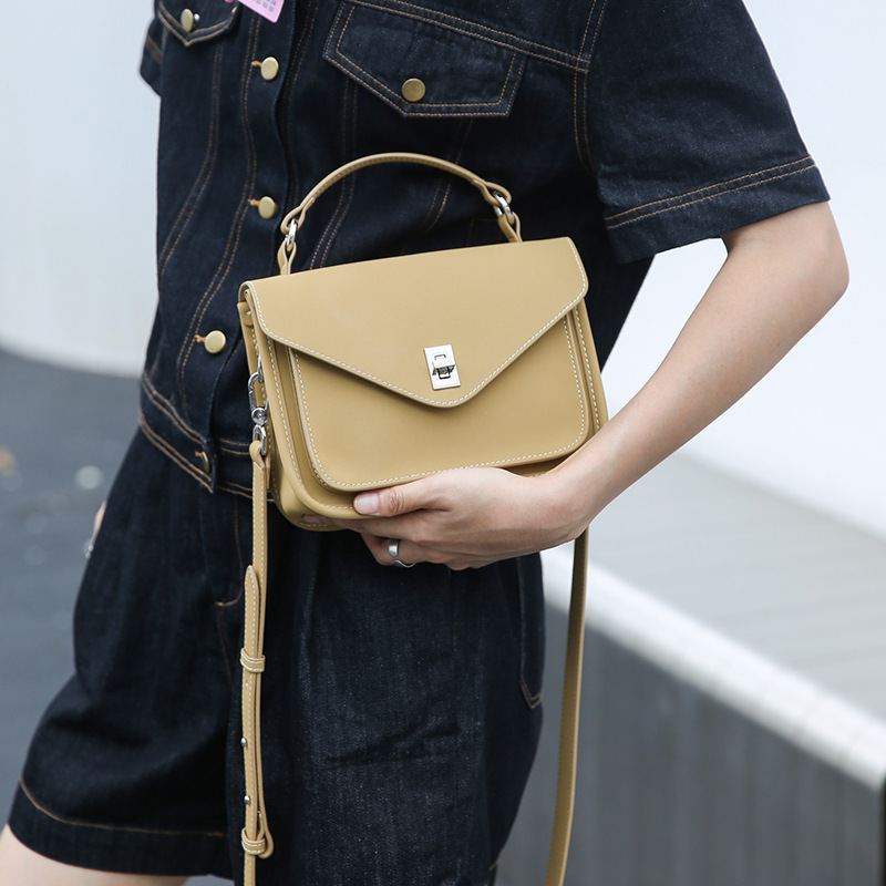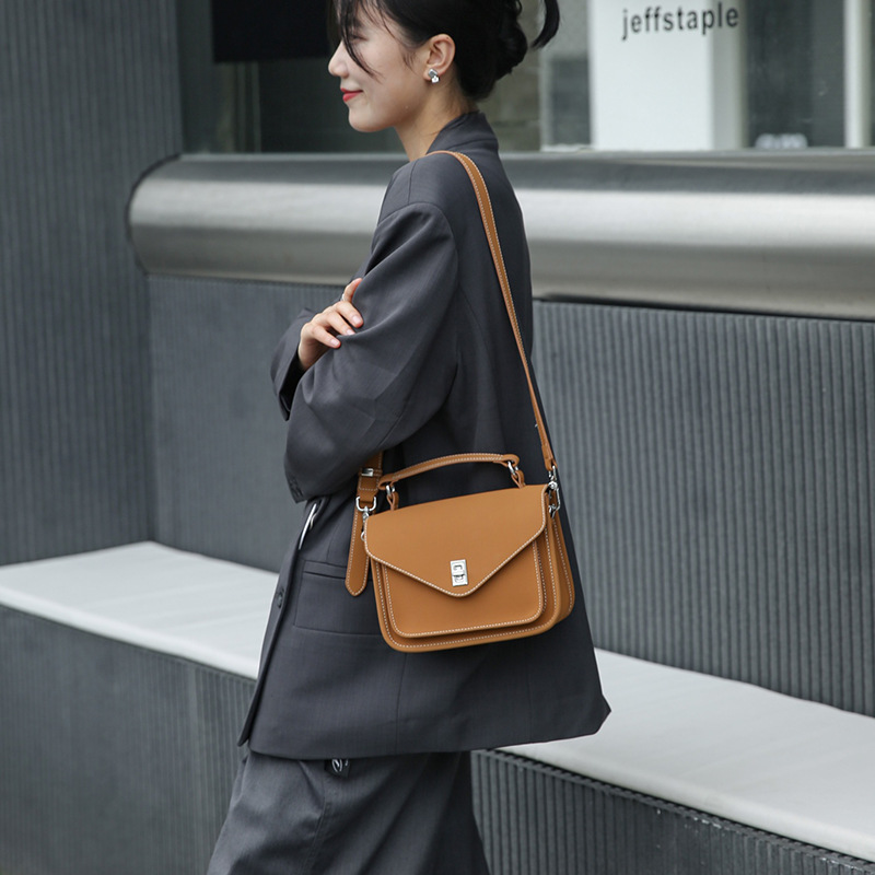 欧美高级感女士牛皮斜挎小方包 真皮手提单肩女款皮质复古邮差包