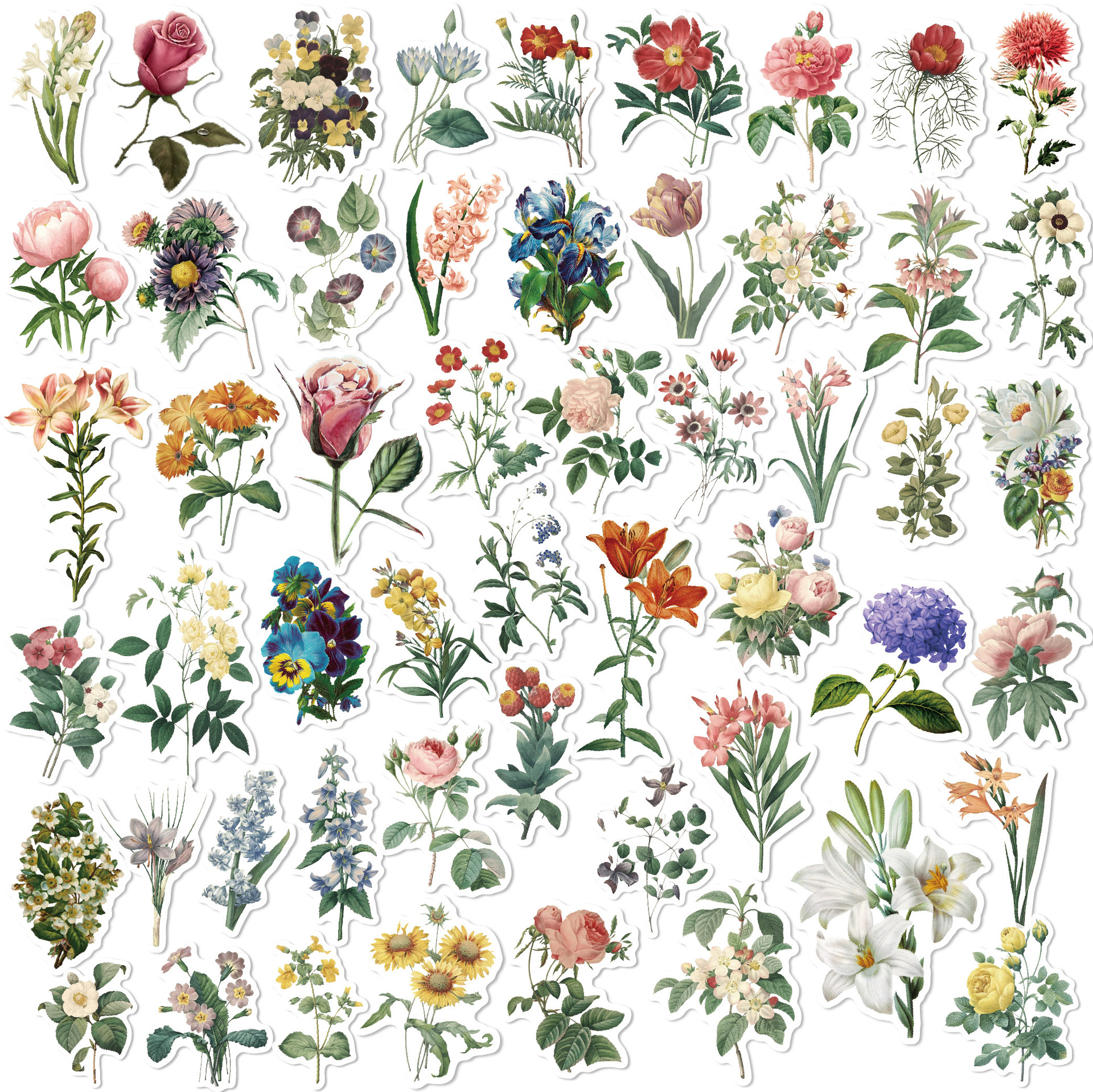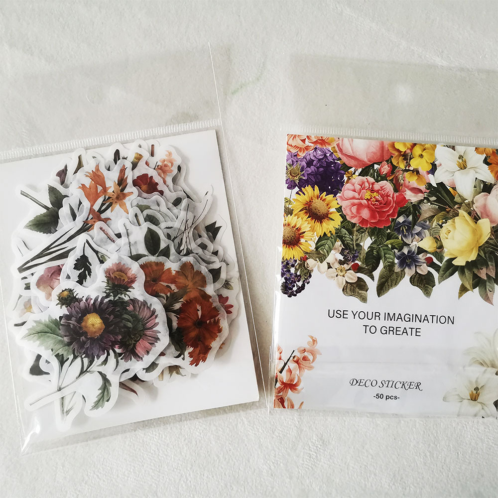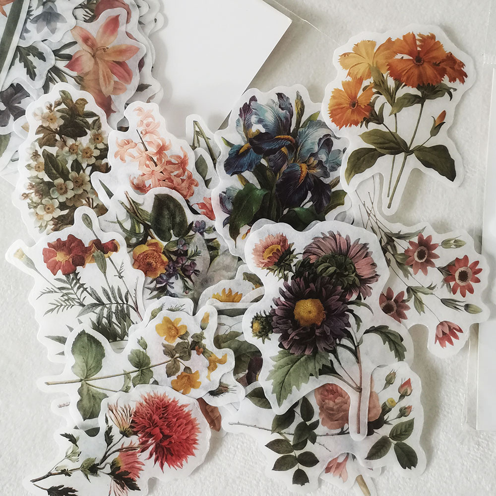 现货花卉手账贴纸包50枚不重复复古装饰素材创意手账DIY和纸贴纸