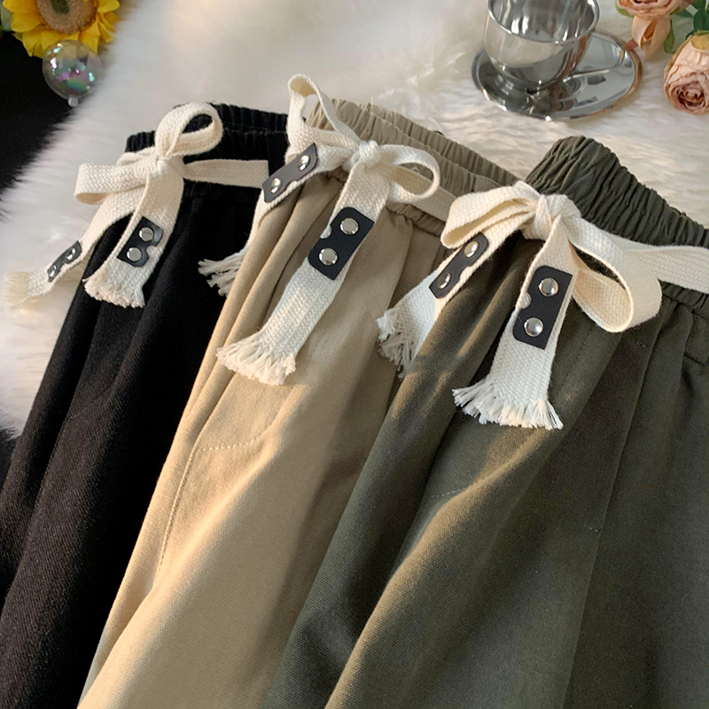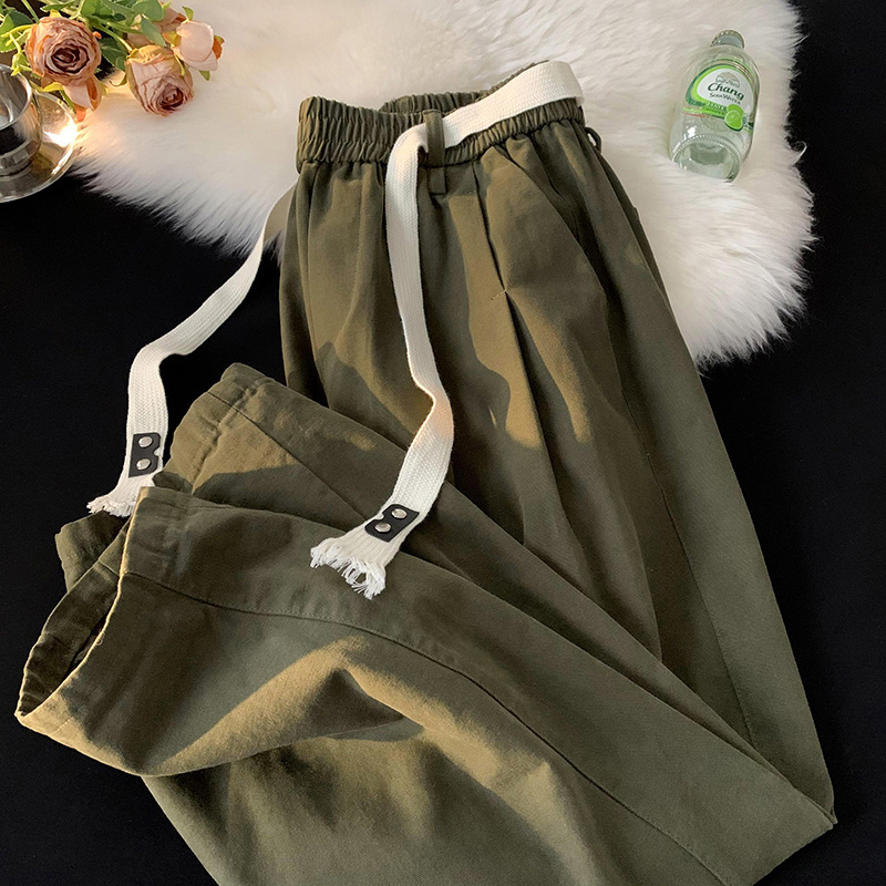 軍綠色阿美咔嘰工裝褲直筒鬆緊腰純棉褲子oversize美式大尺碼寬褲