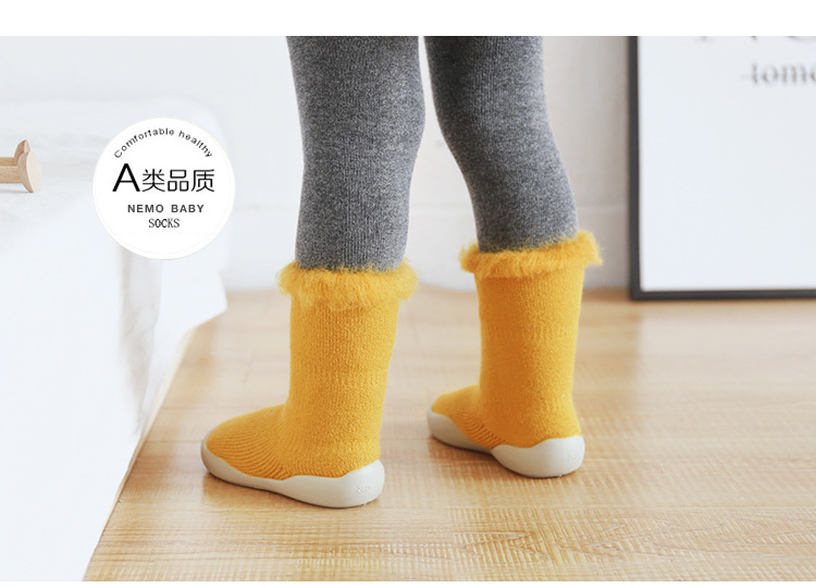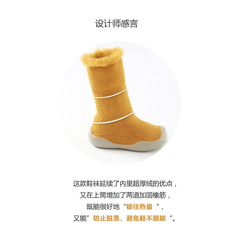 2019新款秋冬季加厚绒儿童地板鞋袜刷毛保暖宝宝学步鞋袜中筒袜子
