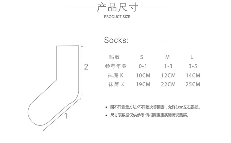 童袜尺码 S码(0-1岁),M码(1-3岁),L码(3-5岁)