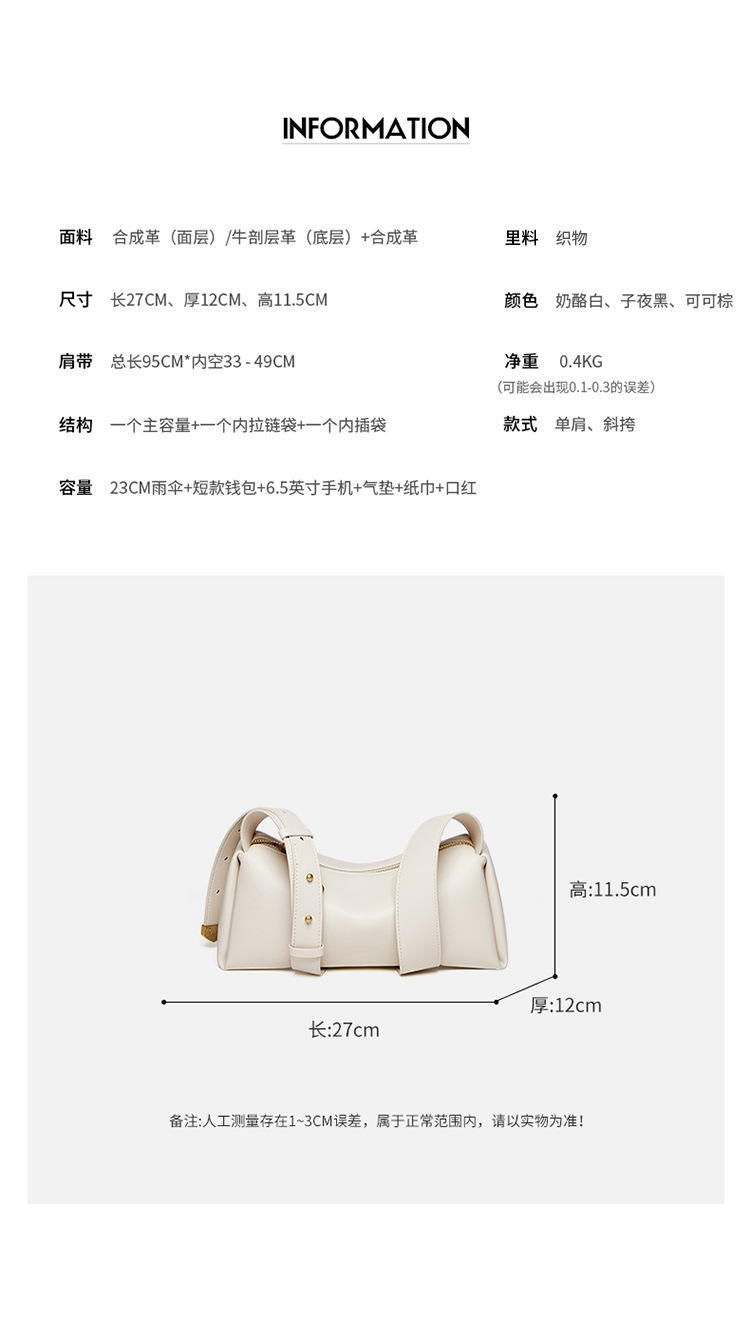 纳兰杜包包女2024新款斜挎包白色高级感波士顿枕头包秋冬真皮女包