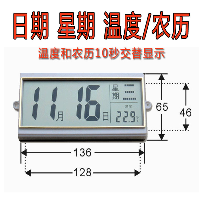 挂钟通用配件液晶万年历机芯电子日历农历显示器136x65mm厂价批发