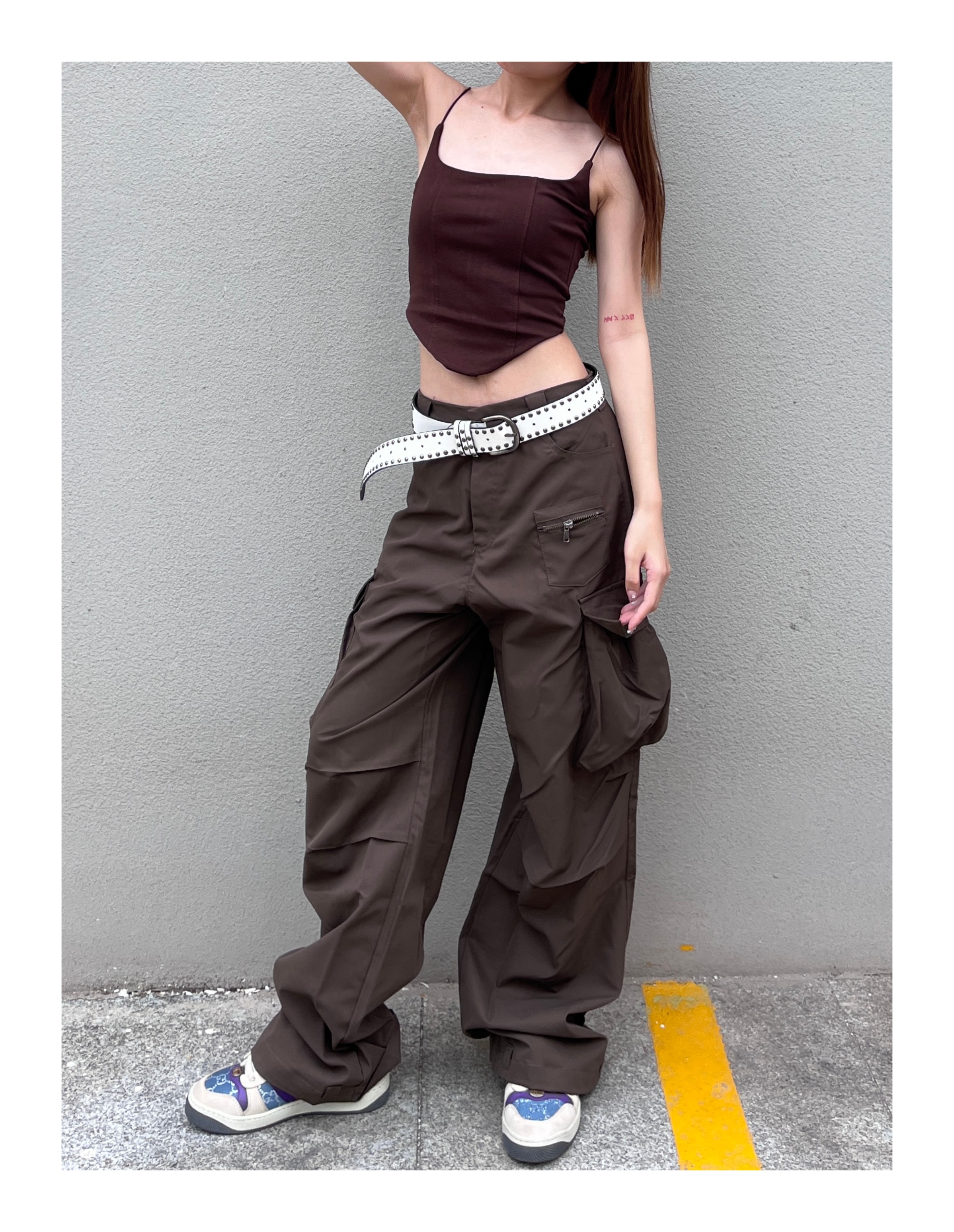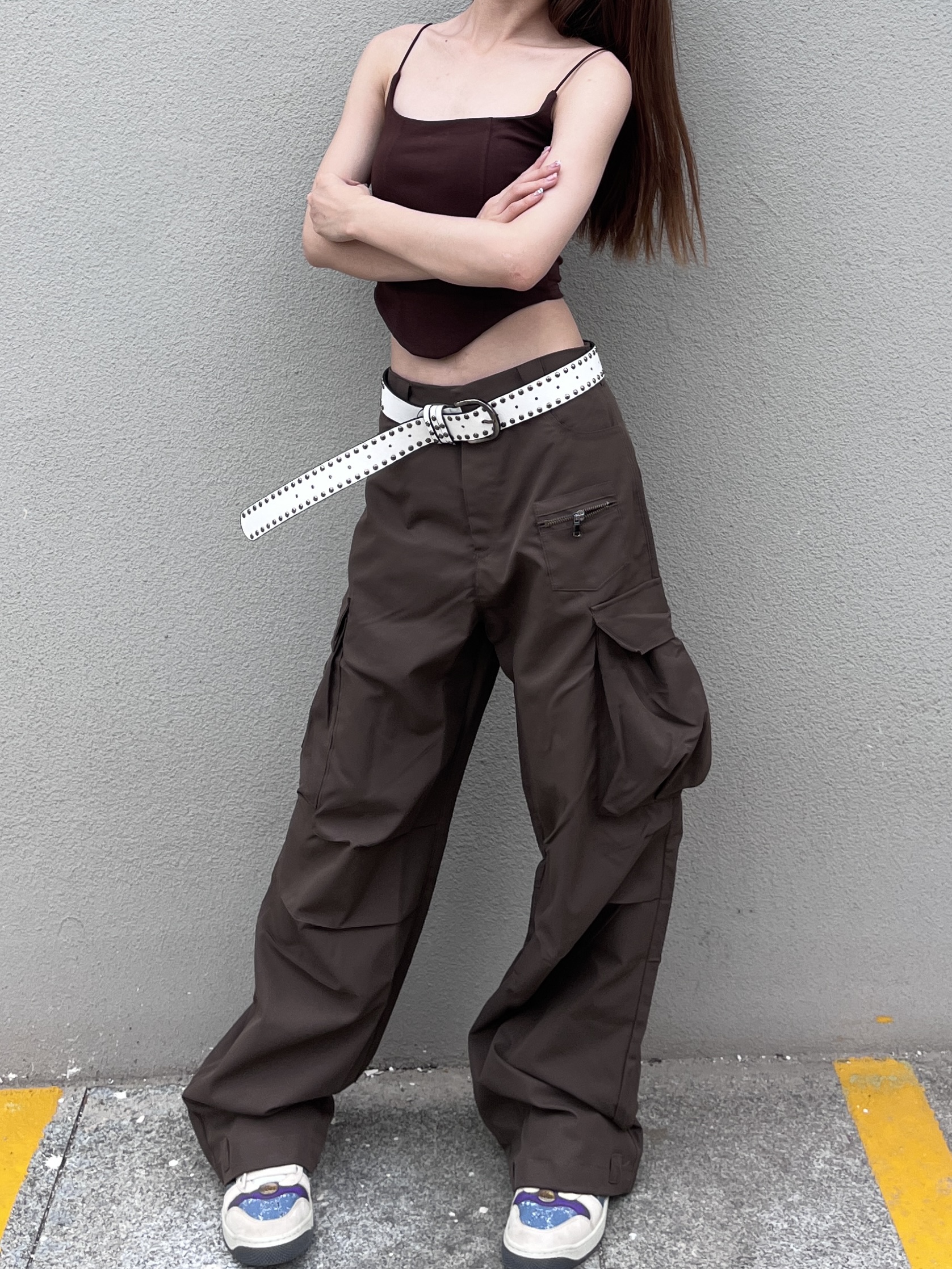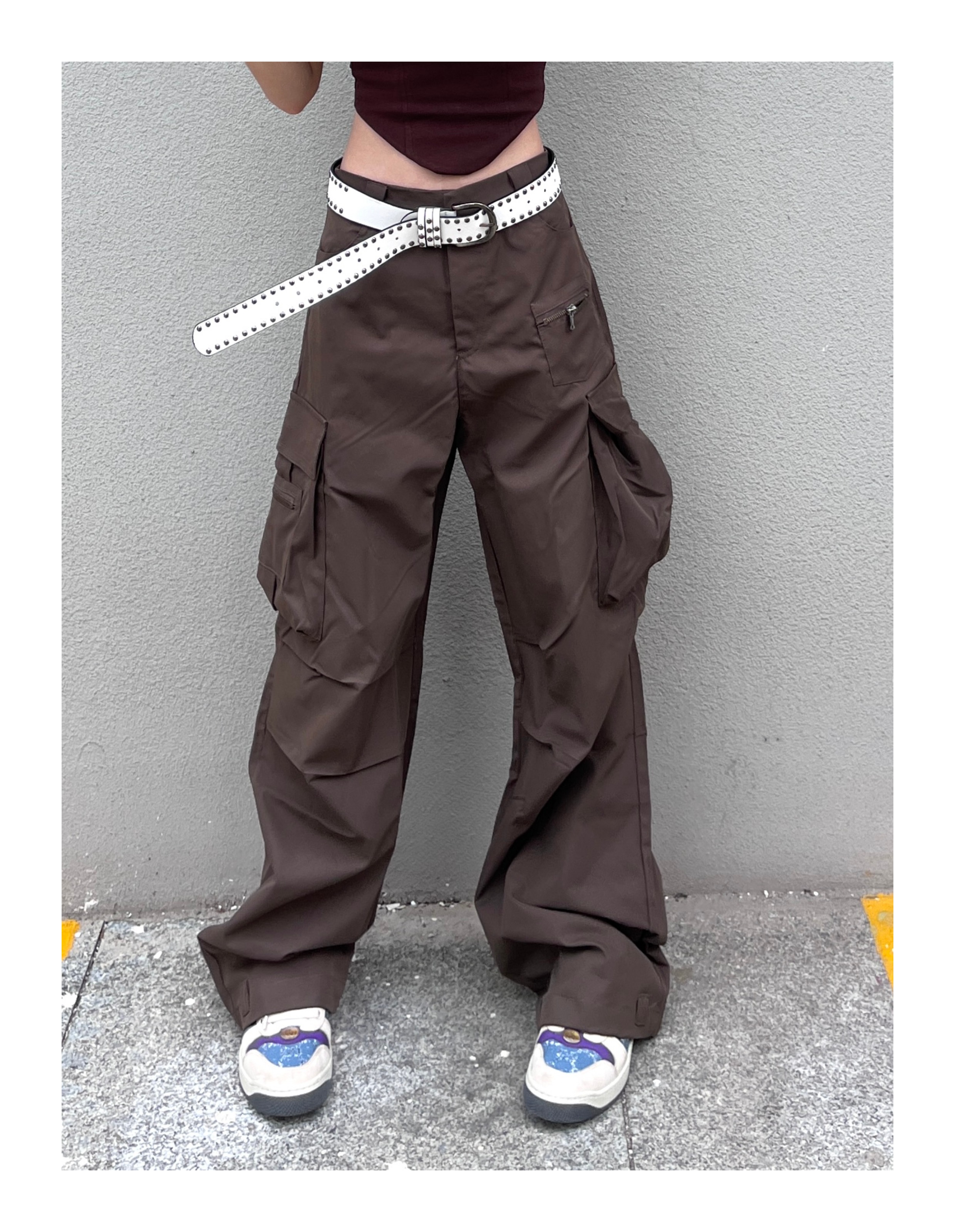 沒你有錢 美式復古新款2023寬鬆辣妹多口袋工裝褲子顯瘦女休閒褲