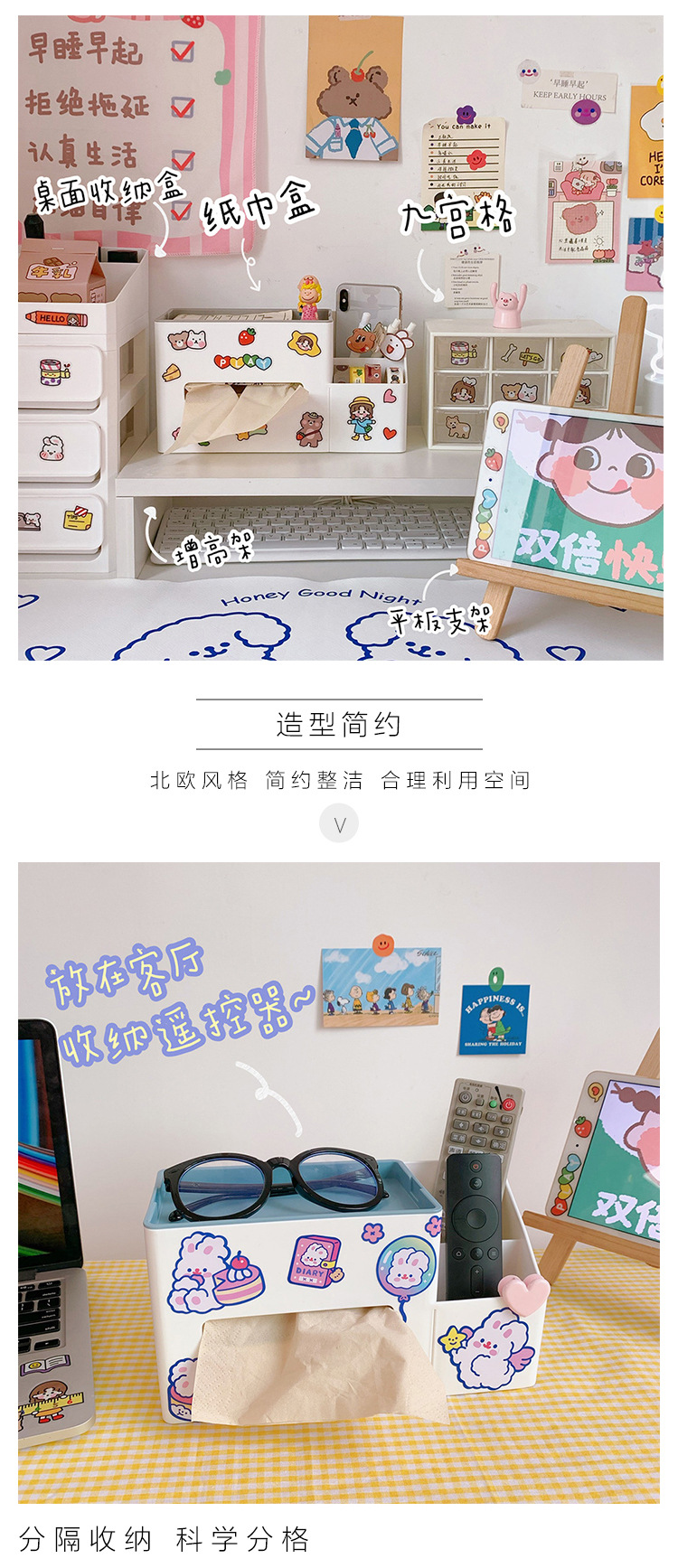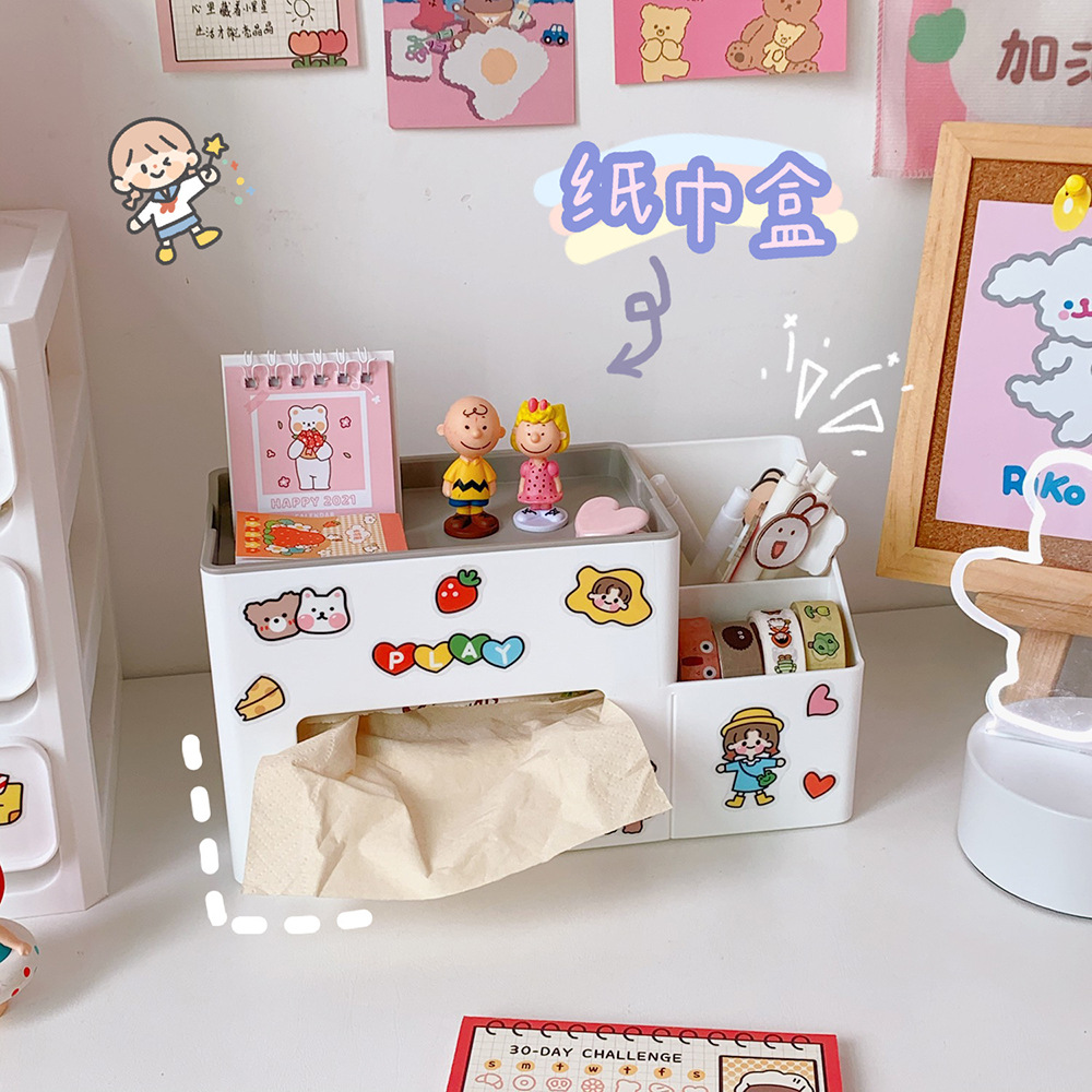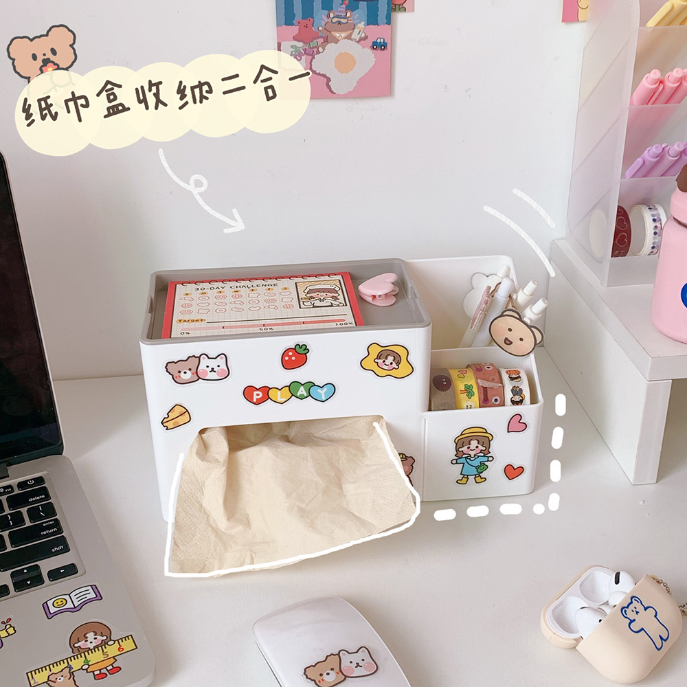 宿舍多功能纸巾盒学生寝室桌面收纳笔筒杂物整理抽纸盒北欧风格潮