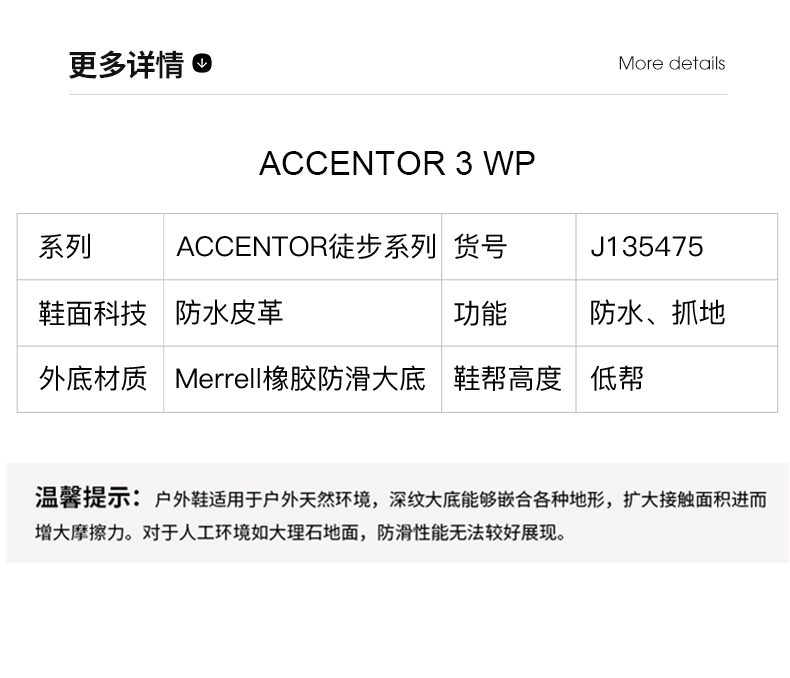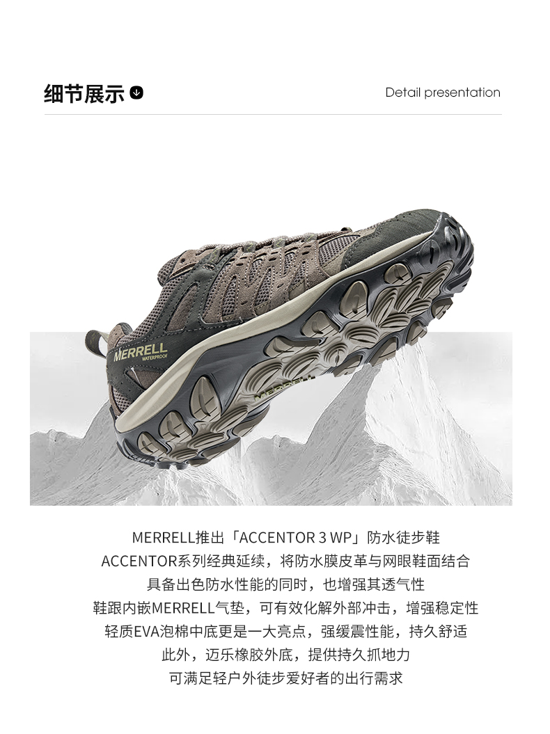 MERRELL邁樂男女ACCENTOR GTX專業防水徒步鞋戶外運動情侶登山鞋