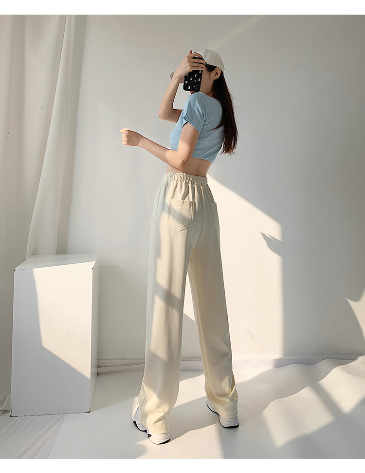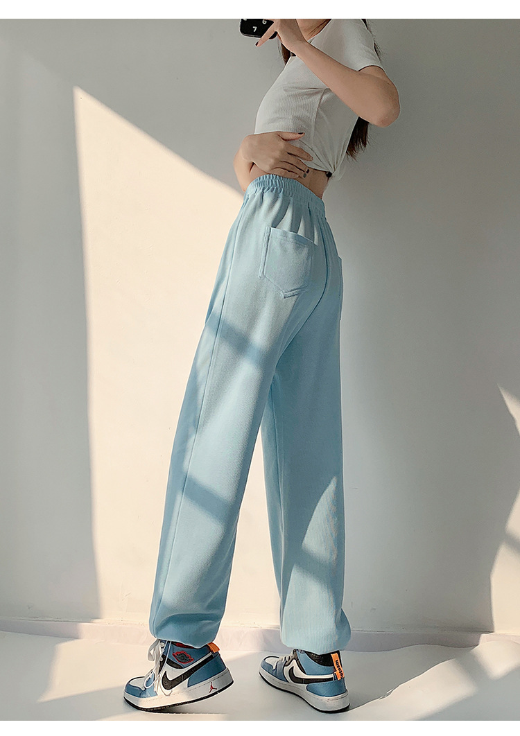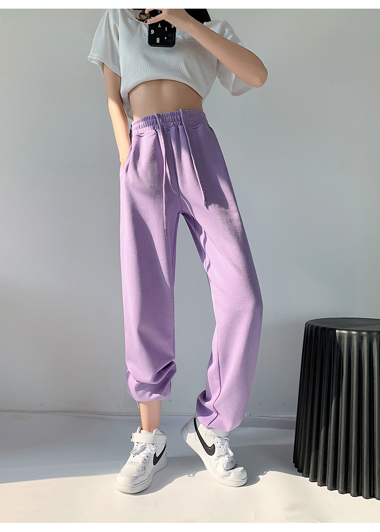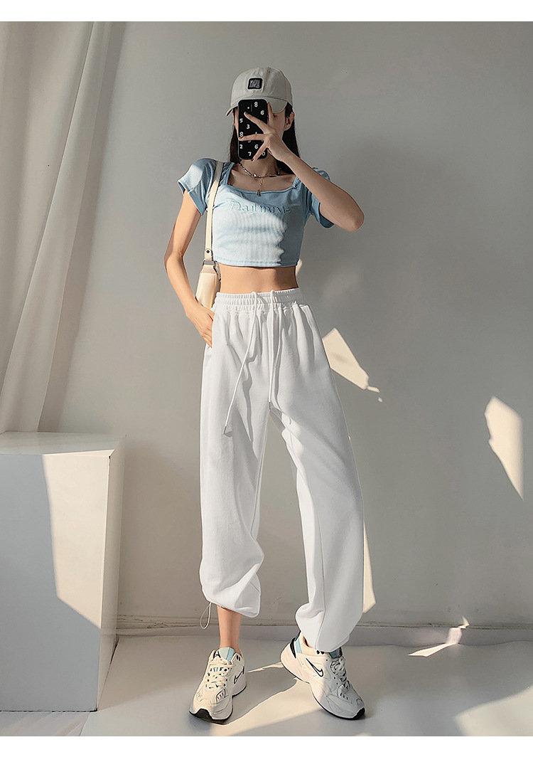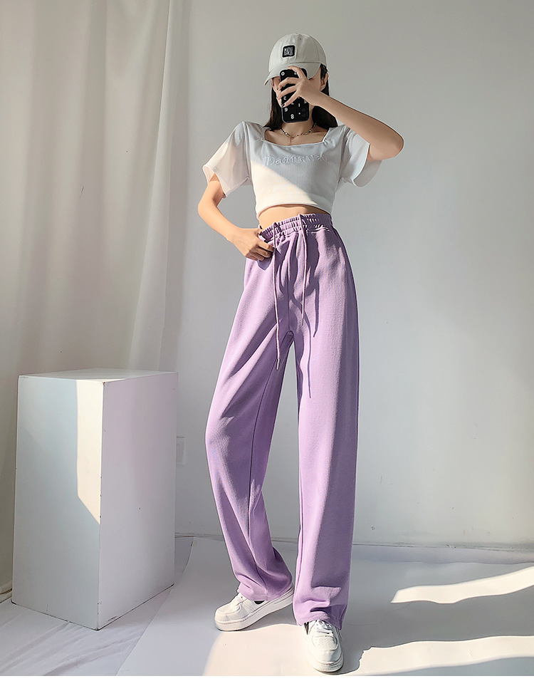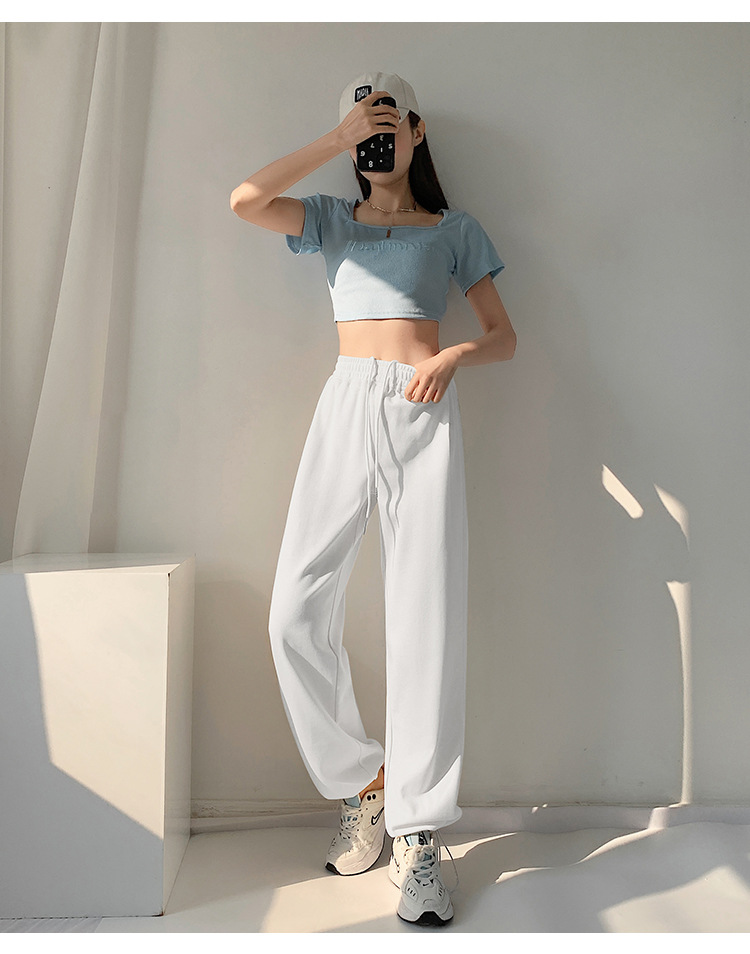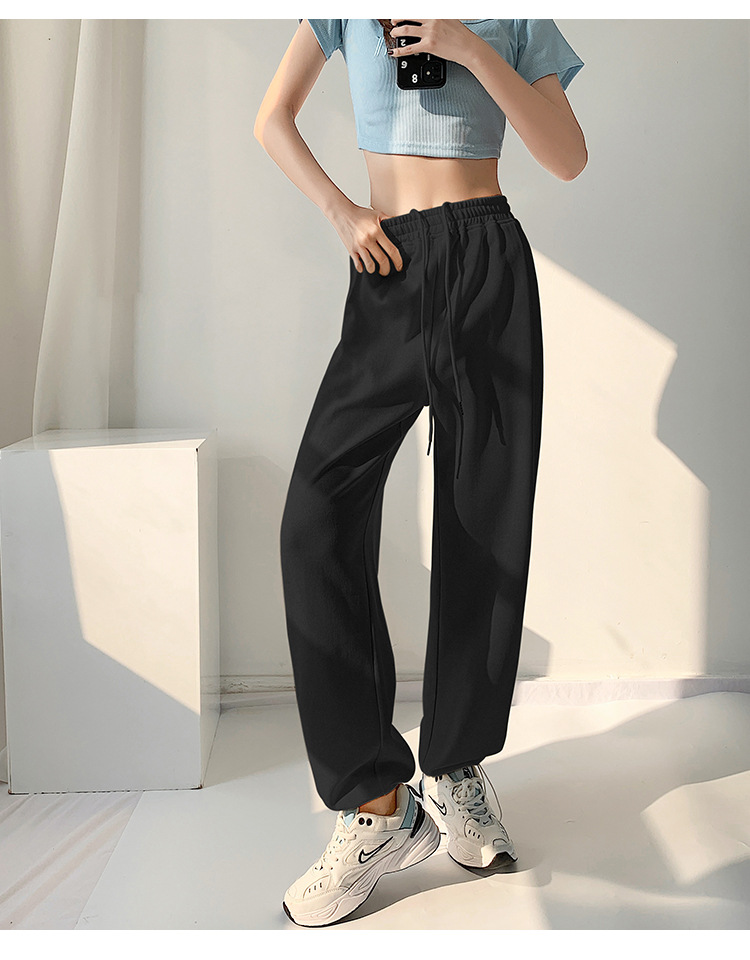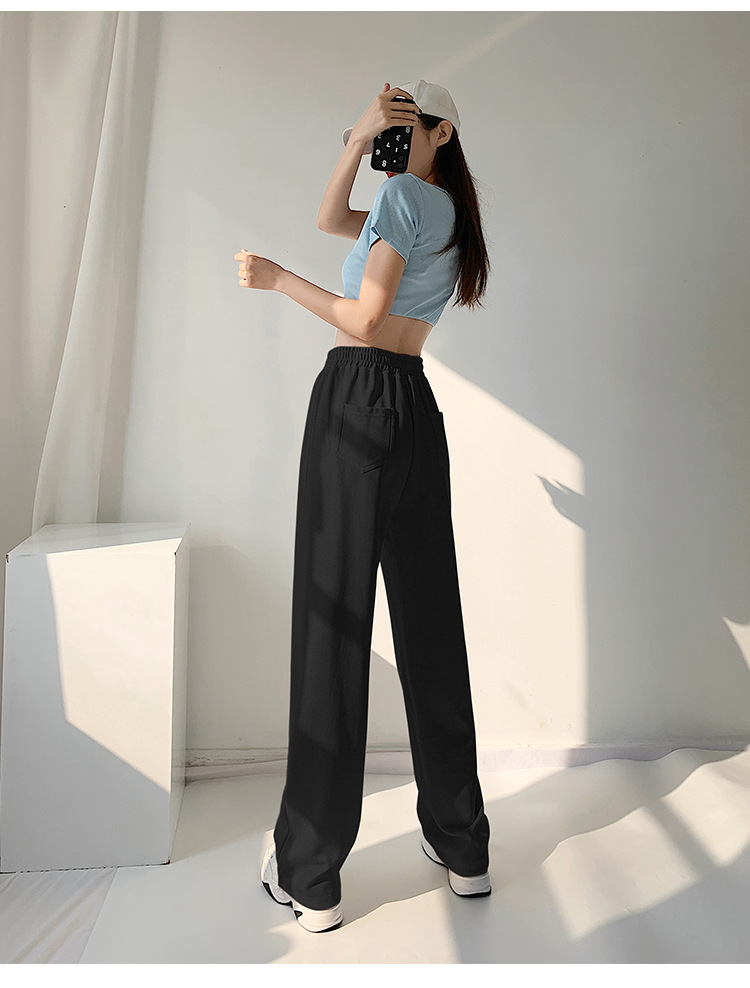 欧美舞蹈运动裤2023年女春夏绿色高腰宽松抽绳束脚裤休闲直筒卫裤