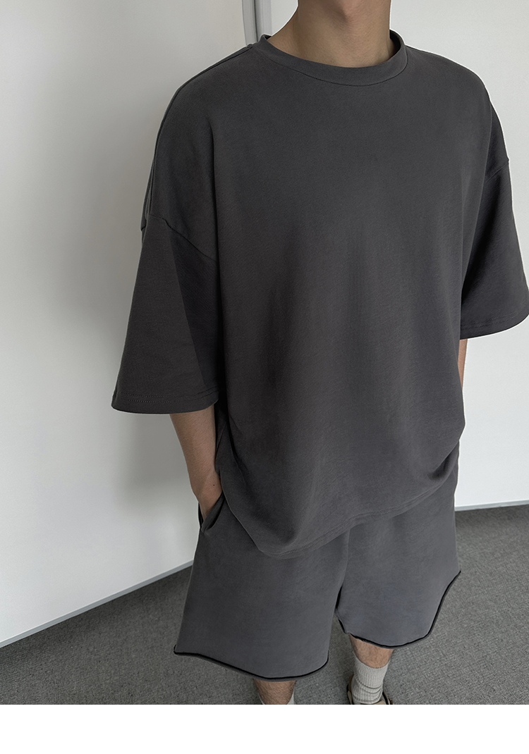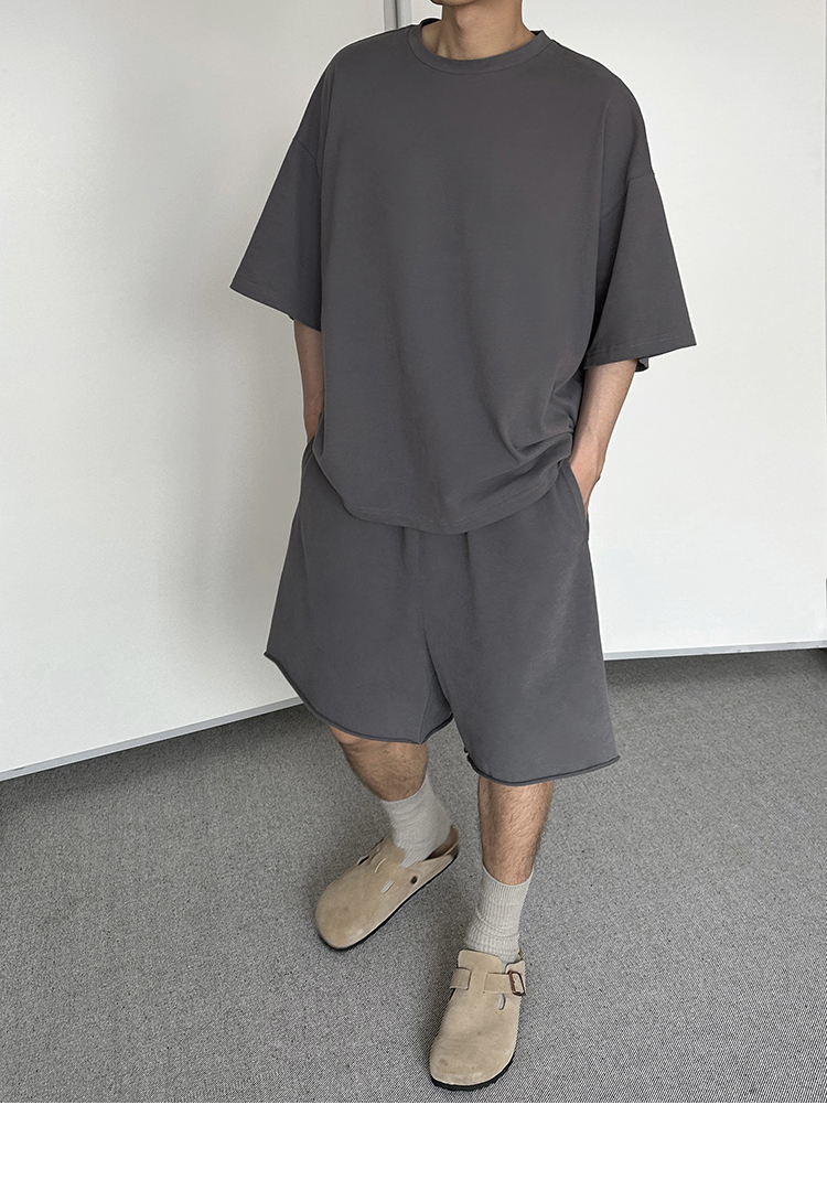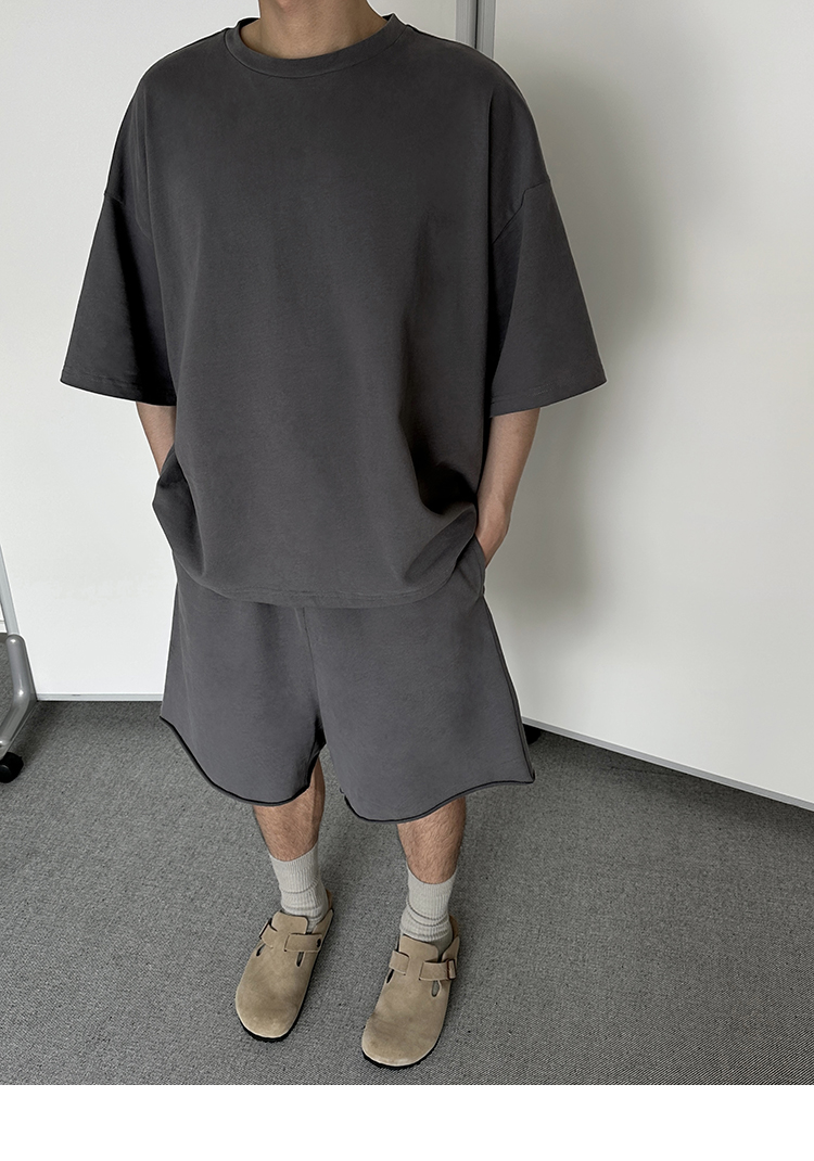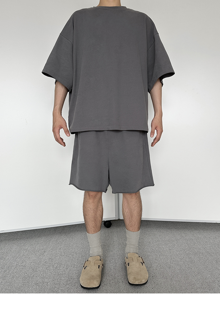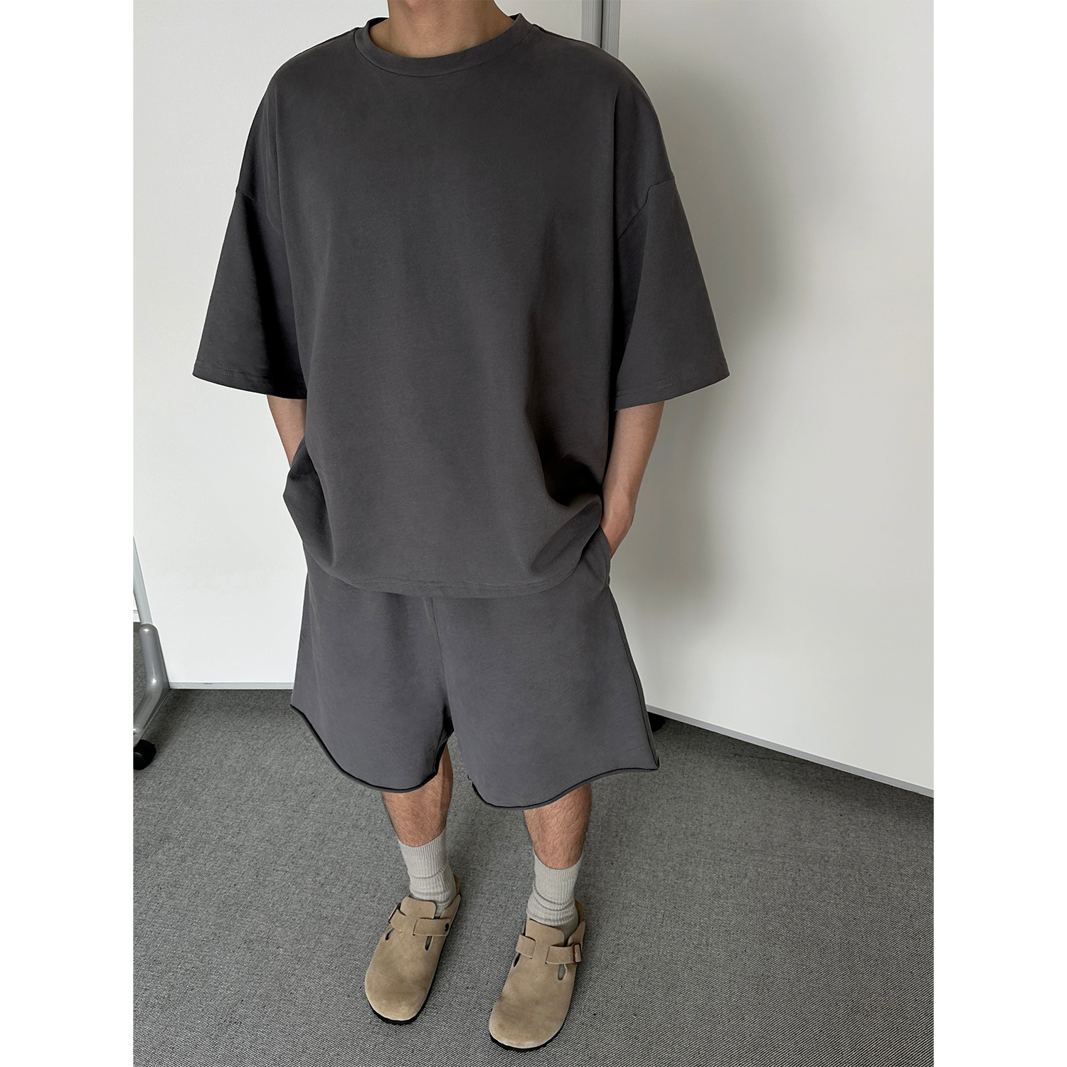 Babesochill-夏日舒適感寬鬆素灰色寬鬆短袖短褲休閒套裝
